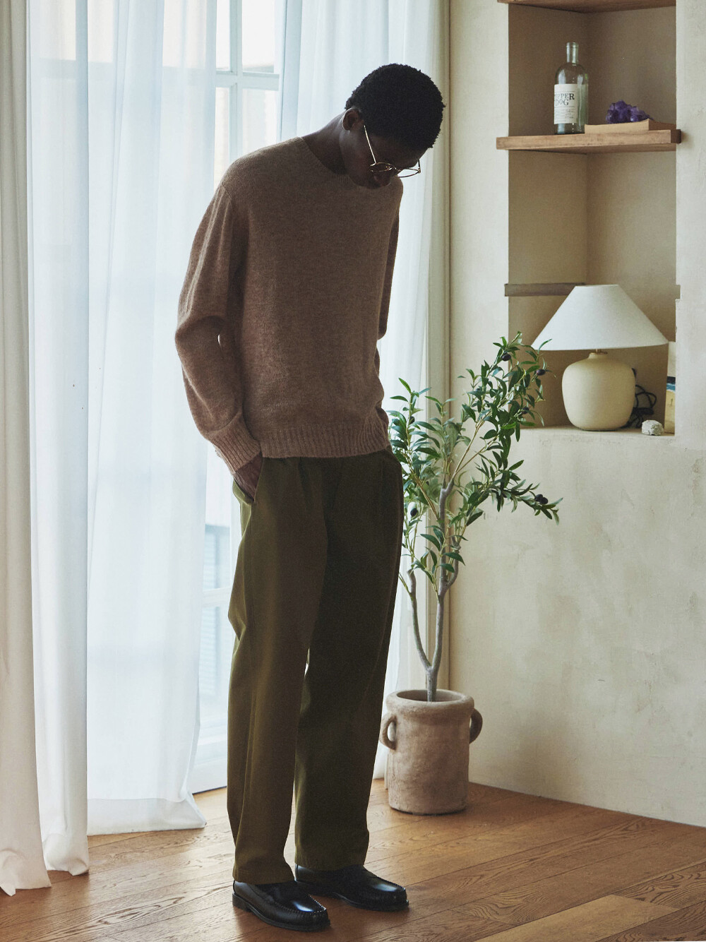 베이비 알파카로 만든 간절기 크루넥 니트입니다. 홀가먼트 공법으로 만들어 봉제선이 없는 미니멀한 디자인의 크루넥 니트입니다. 적당히 여유로운 실루엣의 간절기용 7게이지 니트로 무겁지 않아 이너 및 레이어드 아이템으로 활용할 수 있습니다. 오트밀, 블루그레이, 데님블루, 차콜그레이 총 4컬러로 출시되었습니다.