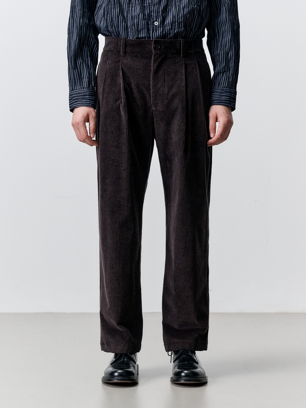 코튼 코듀로이 플리티드 팬츠 (DARK BROWN)