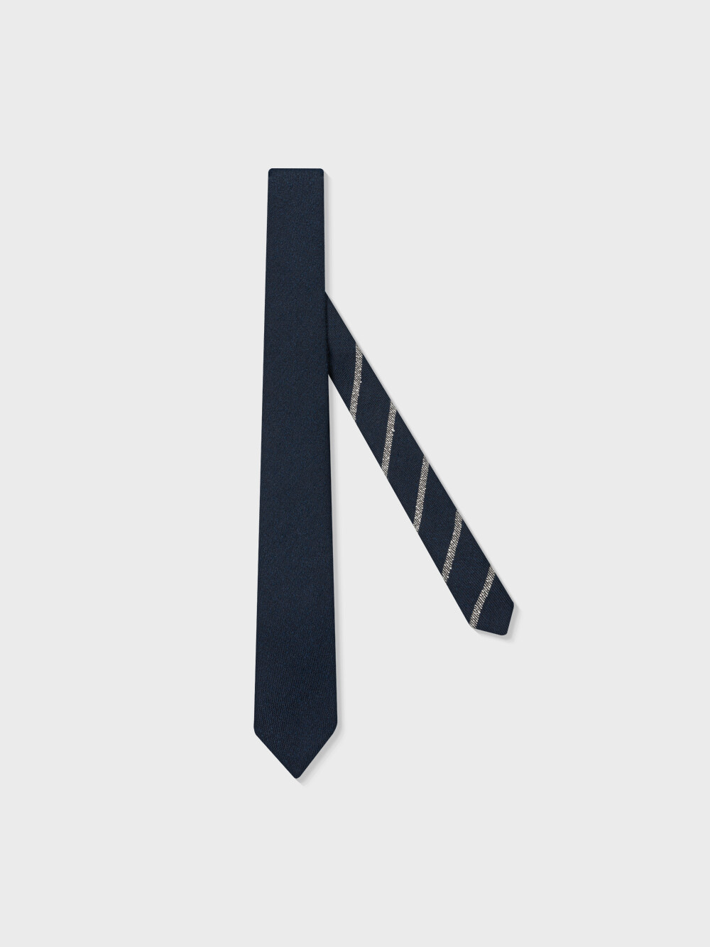 ITALIAN COTTON SILK BOUCLE TIE (NAVY)