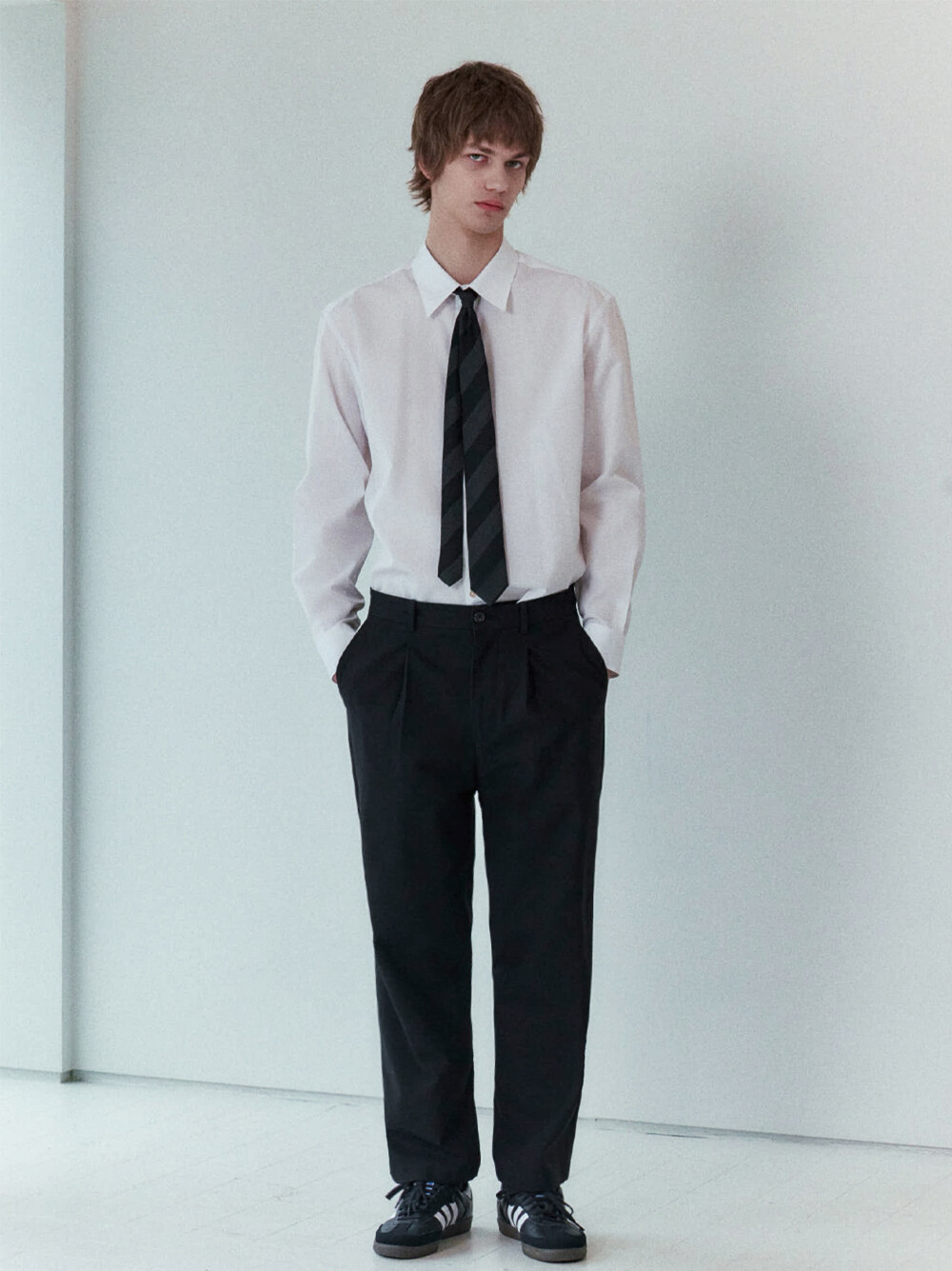 100% 오가닉 코튼 트윌 원단으로 만든 원턱 테일러드 팬츠입니다. 현대적인 세미오버핏의 팬츠에 테일러링 디테일을 가미하여 일상복 및 비즈니스 캐주얼로 다양하게 활용 가능합니다. 몸에 달라붙지 않고 똑 떨어지는 강연원단으로 제작하여 초여름까지 착용 가능합니다. 동일한 컬러의 테일러드 재킷과 셋업으로 연출 가능합니다.