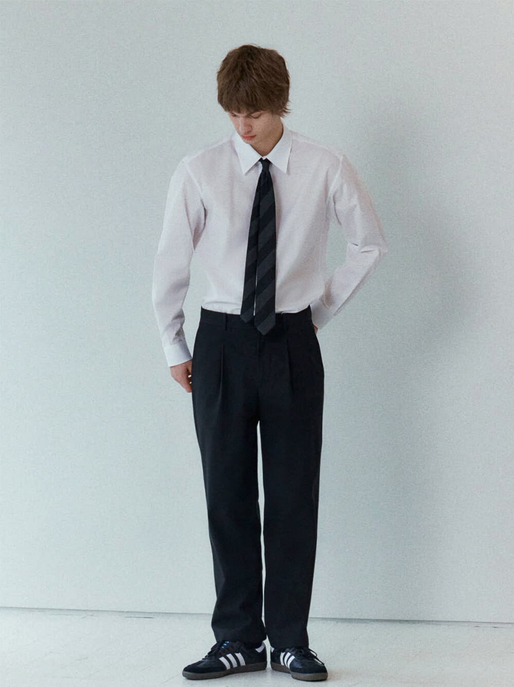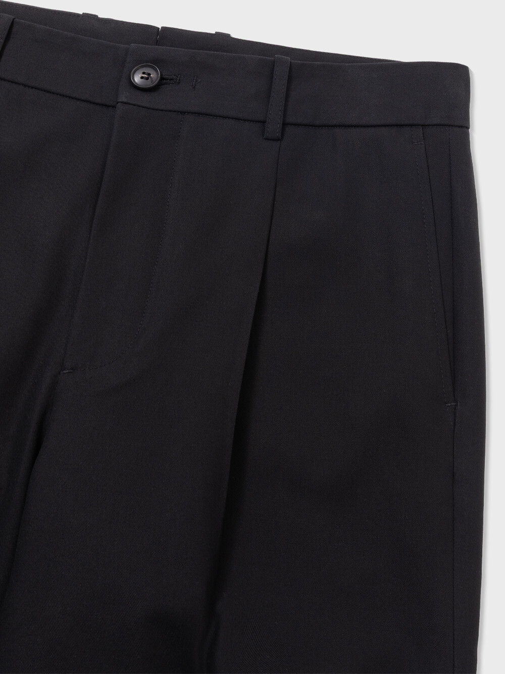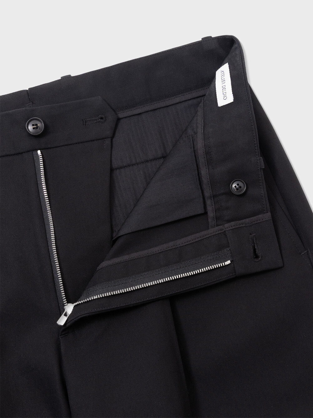 HIGH TWISTED COTTON PLEATED PANTS (BLACK)