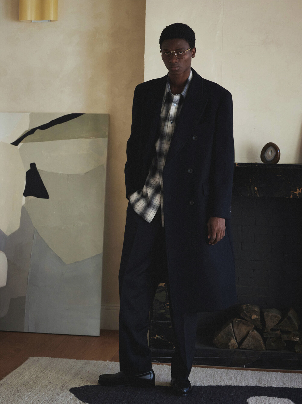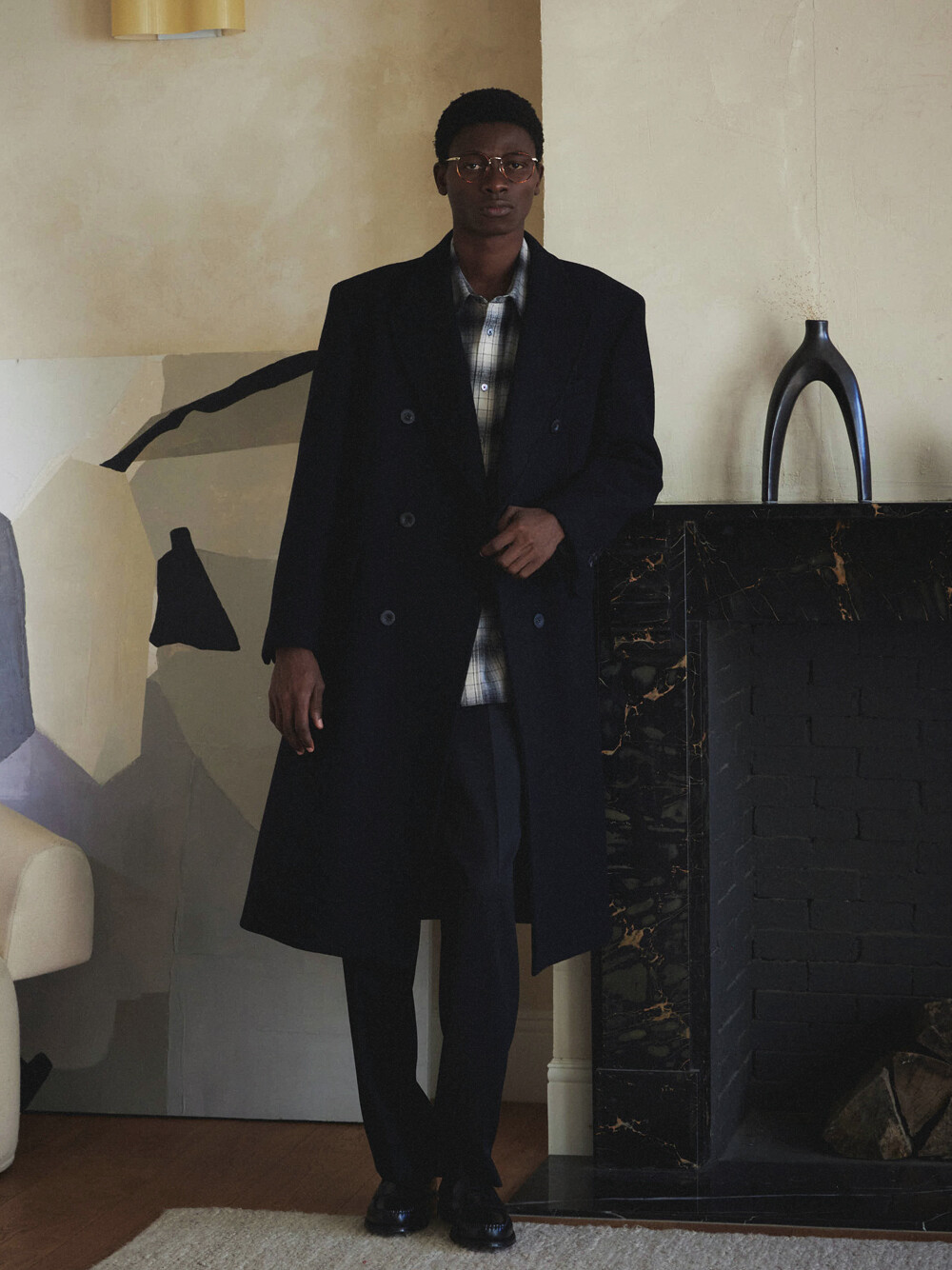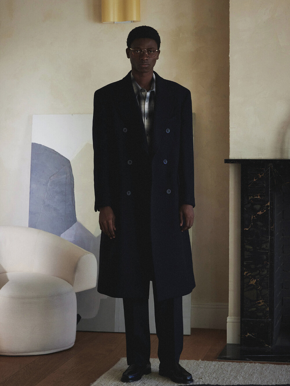 고중량의 멜톤 울 소재로 만든 더블 브레스티드 코트입니다. 무릎 아래로 기장이 내려오는 A라인의 세미오버핏 코트로 더블 브레스티드 코트의 실루엣을 더욱 우아하게 재해석하였습니다. 치노팬츠나 청바지와 매치하여 캐주얼 룩을 연출하거나 슬랙스, 셔츠와 함께 비즈니스 캐주얼로 활용할 수 있습니다. 블랙, 다크 네이비, 올리브 3가지 컬러로 출시되었습니다.