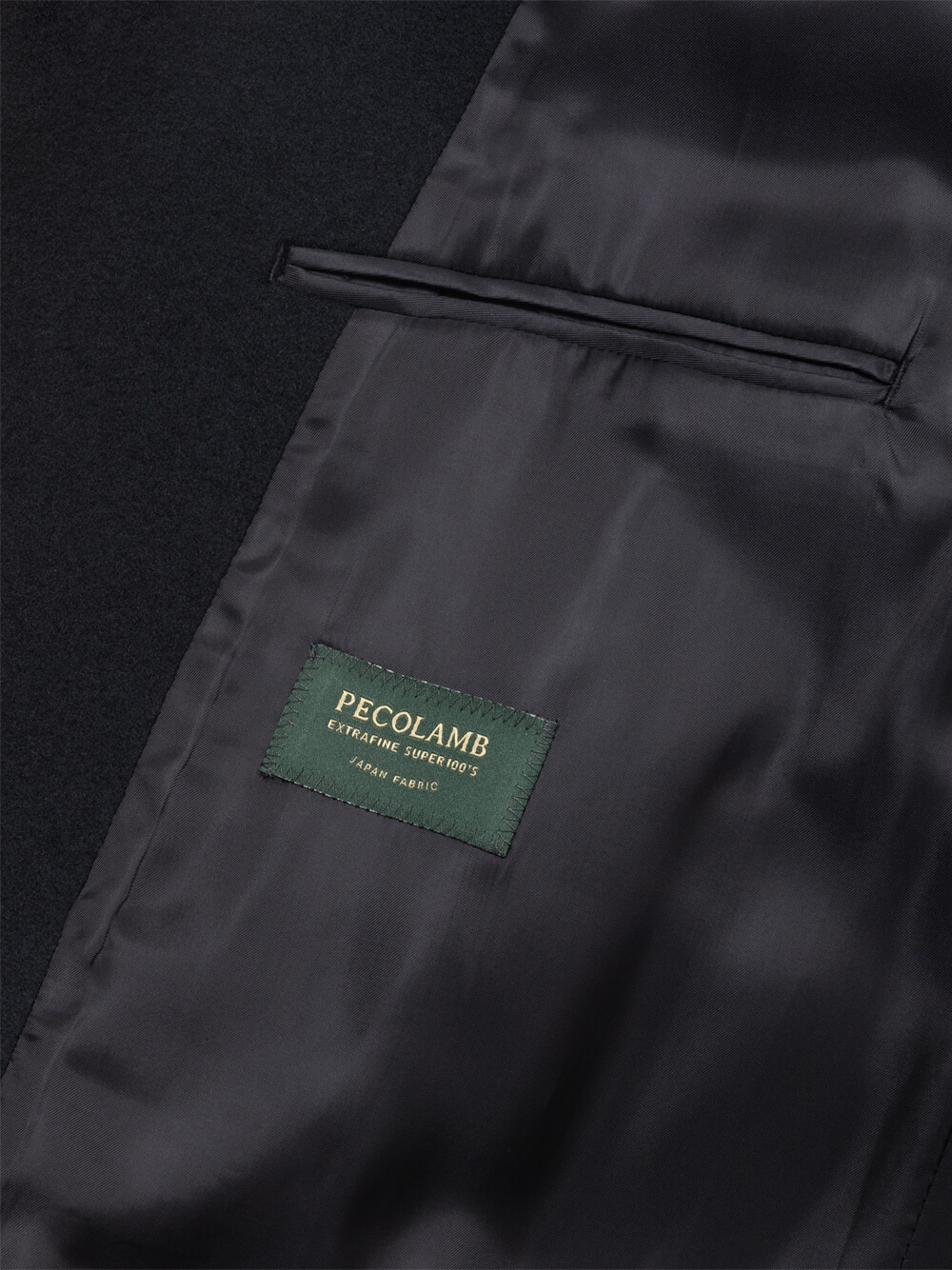 일본산 슈퍼 100수 페코램(Pecolamb) 울 원단을 사용하였습니다. 프리미엄 울 100% 원단의 부드러운 촉감을 느끼실 수 있으며, 고중량의 멜톤 울 소재로 한겨울까지 따뜻하게 착용 가능합니다.