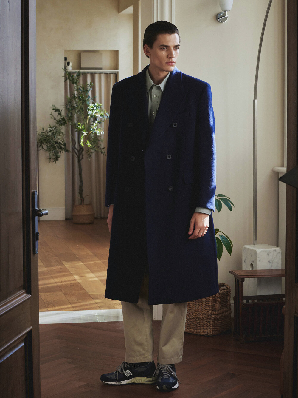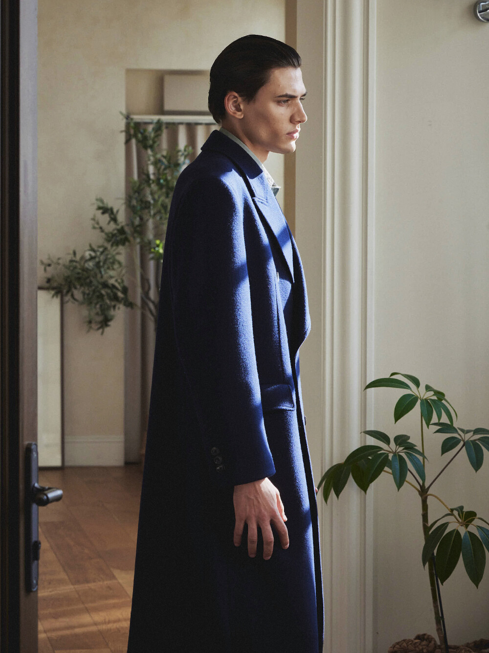 고중량의 멜톤 울 소재로 만든 더블 브레스티드 코트입니다. 무릎 아래로 기장이 내려오는 A라인의 세미오버핏 코트로 더블 브레스티드 코트의 실루엣을 더욱 우아하게 재해석하였습니다. 치노팬츠나 청바지와 매치하여 캐주얼 룩을 연출하거나 슬랙스, 셔츠와 함께 비즈니스 캐주얼로 활용할 수 있습니다. 블랙, 다크 네이비, 올리브 3가지 컬러로 출시되었습니다.