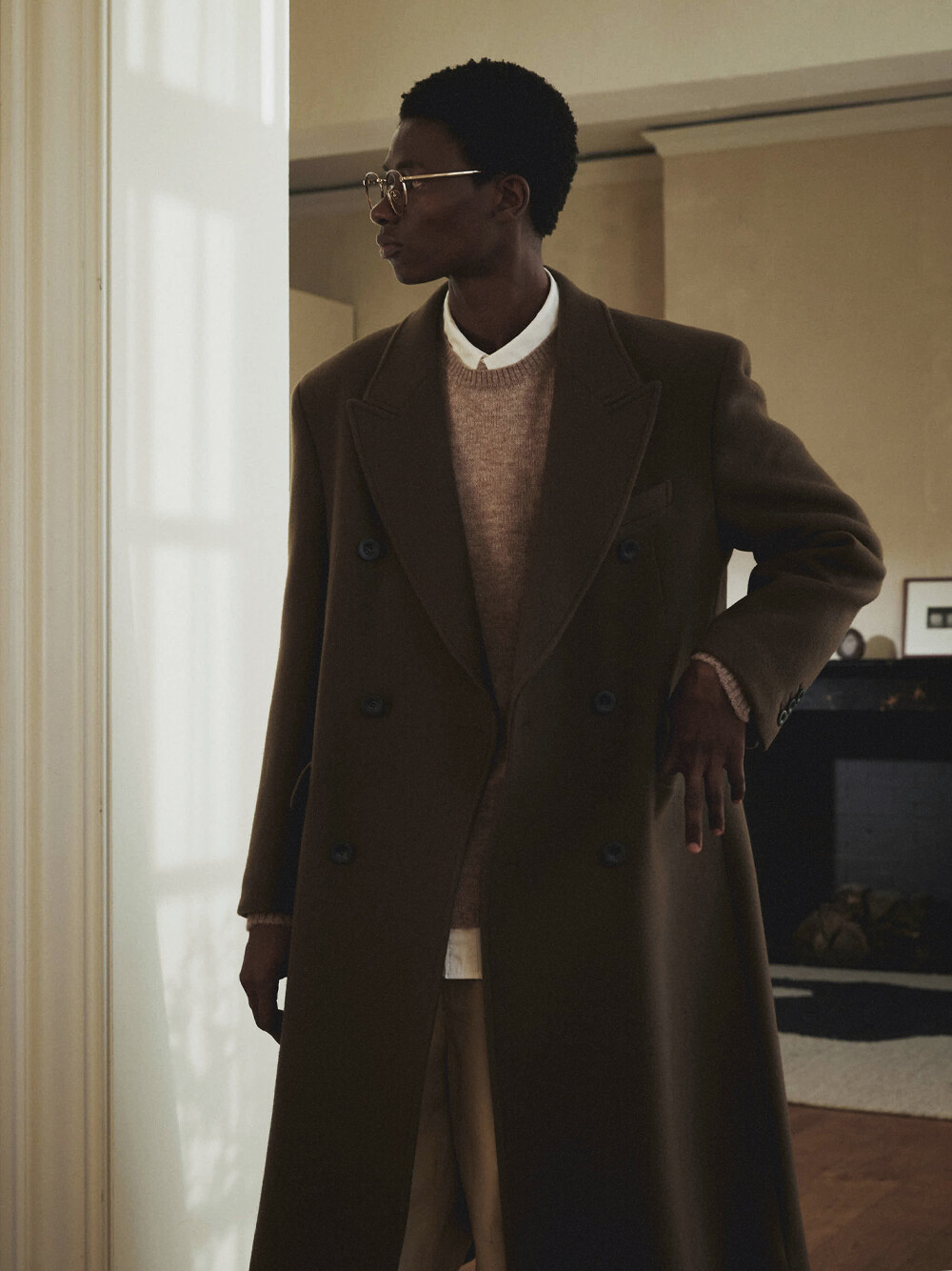 고중량의 멜톤 울 소재로 만든 더블 브레스티드 코트입니다. 무릎 아래로 기장이 내려오는 A라인의 세미오버핏 코트로 더블 브레스티드 코트의 실루엣을 더욱 우아하게 재해석하였습니다. 치노팬츠나 청바지와 매치하여 캐주얼 룩을 연출하거나 슬랙스, 셔츠와 함께 비즈니스 캐주얼로 활용할 수 있습니다. 블랙, 다크 네이비, 올리브 3가지 컬러로 출시되었습니다.