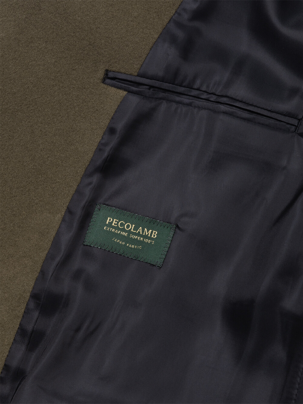 일본산 슈퍼 100수 페코램(Pecolamb) 울 원단을 사용하였습니다. 프리미엄 울 100% 원단의 부드러운 촉감을 느끼실 수 있으며, 고중량의 멜톤 울 소재로 한겨울까지 따뜻하게 착용 가능합니다.