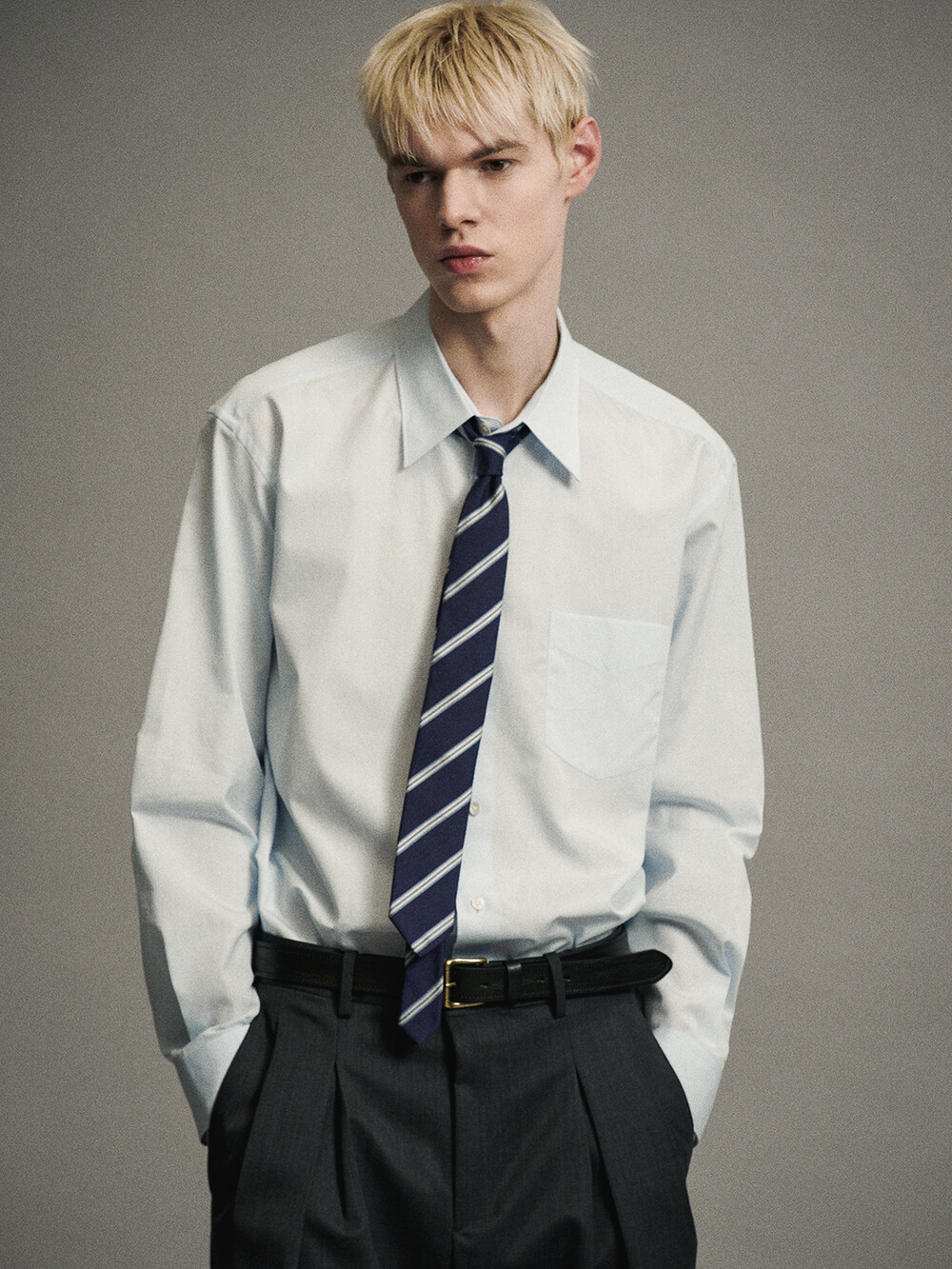 에센셜 라인으로 출시된 아틀리에 델디오의 스테디셀러 포플린 테이퍼드 셔츠입니다. 여유로운 실루엣을 살리면서도 허리라인을 조정하여 자연스럽게 넣어입을 수 있도록 디자인하였습니다. 미니멀하고 프로패셔널한 룩을 위하여 앞판 플라켓과 뒷판 주름을 생략하였으며, 넥타이가 잘 어울리도록 카라 디자인을 조정하였습니다. 슬랙스부터 셋업 수트까지 다양한 비즈니스웨어와 코디할 수 있습니다.