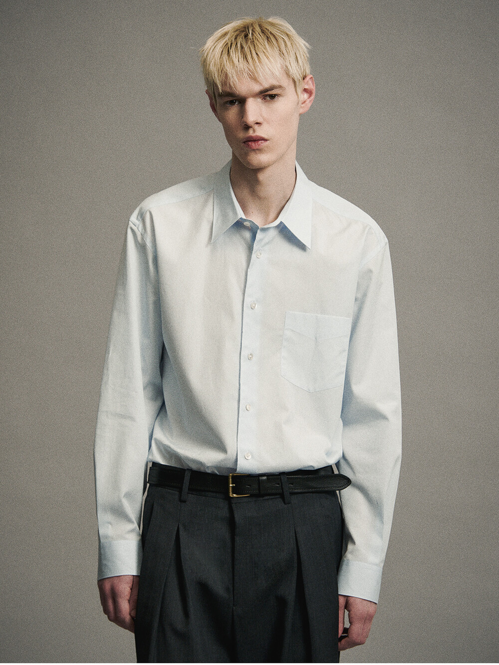 에센셜 코튼 포플린 테이퍼드 셔츠 (BLUE)