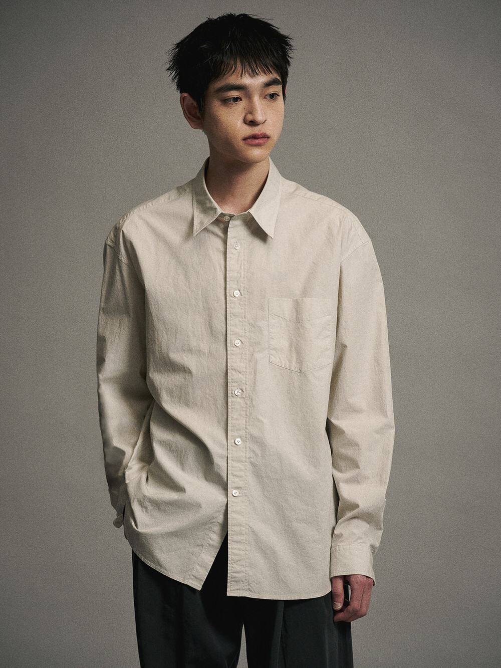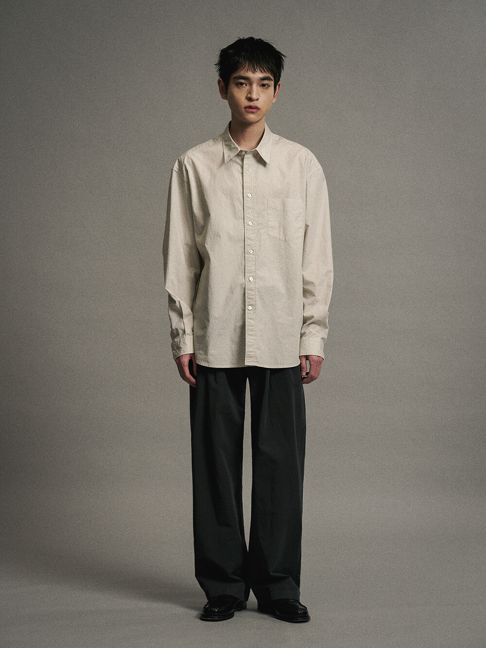 에센셜 코튼 타입라이터 컴포트 셔츠 (GREIGE)