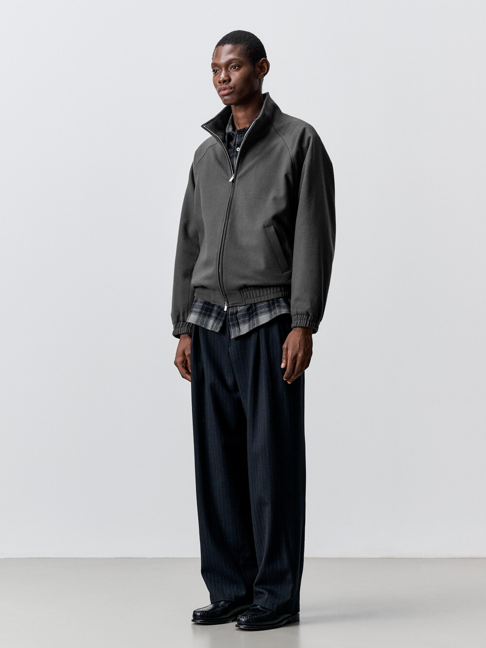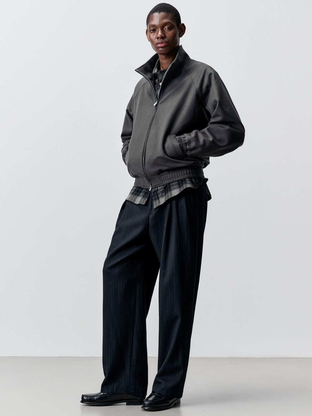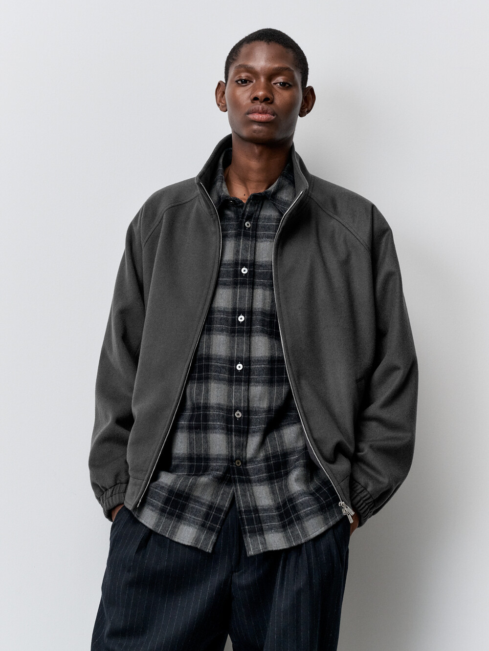 새롭게 출시되는 하이넥 울 집업 블루종입니다. 코트와 같은 따뜻한 두께감의 140수 울 원단을 사용하였습니다. 목 끝까지 2-way 지퍼로 여닫을 수 있는 오버핏 블루종으로 고번수의 프리미엄 울 원단과 미니멀한 디자인이 만나 고급스러운 무드를 자아냅니다. 캐주얼부터 비즈니스 룩까지 다양한 연출이 가능한 활용도 높은 아이템입니다.