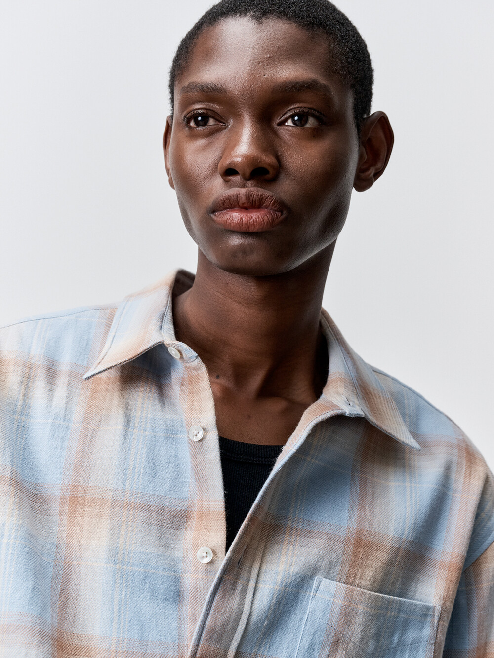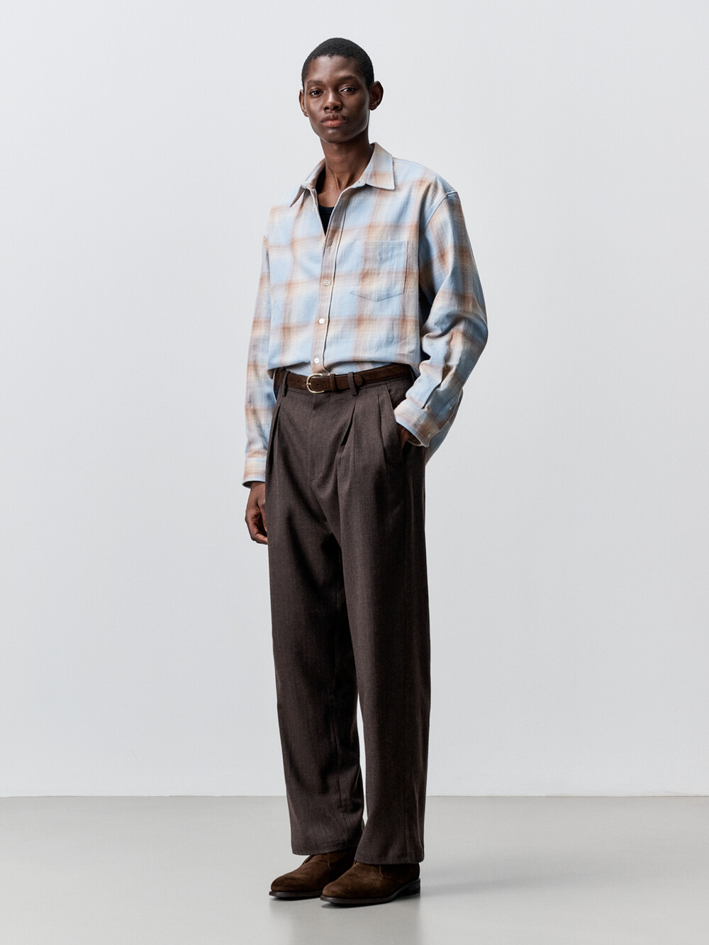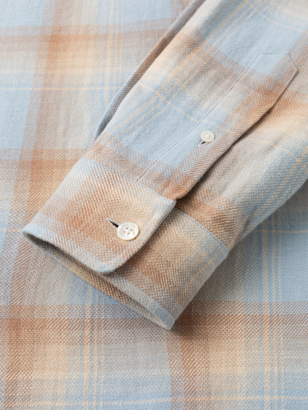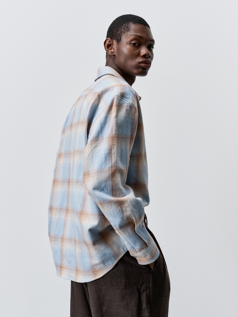 빈티지한 텍스쳐감의 슬럽 체크 원단으로 만든 컴포트 셔츠입니다. 픽셀아트 형태의 그라데이션 체크 패턴이 매력적인 셔츠입니다. 앞판에 플라켓과 가슴포켓이 달려있으며, 뒷판 요크를 사선으로 재단하였습니다. 과하지 않은 섬세한 체크패턴의 셔츠로 캐주얼하면서도 세련된 룩을 연출하실 수 있습니다.