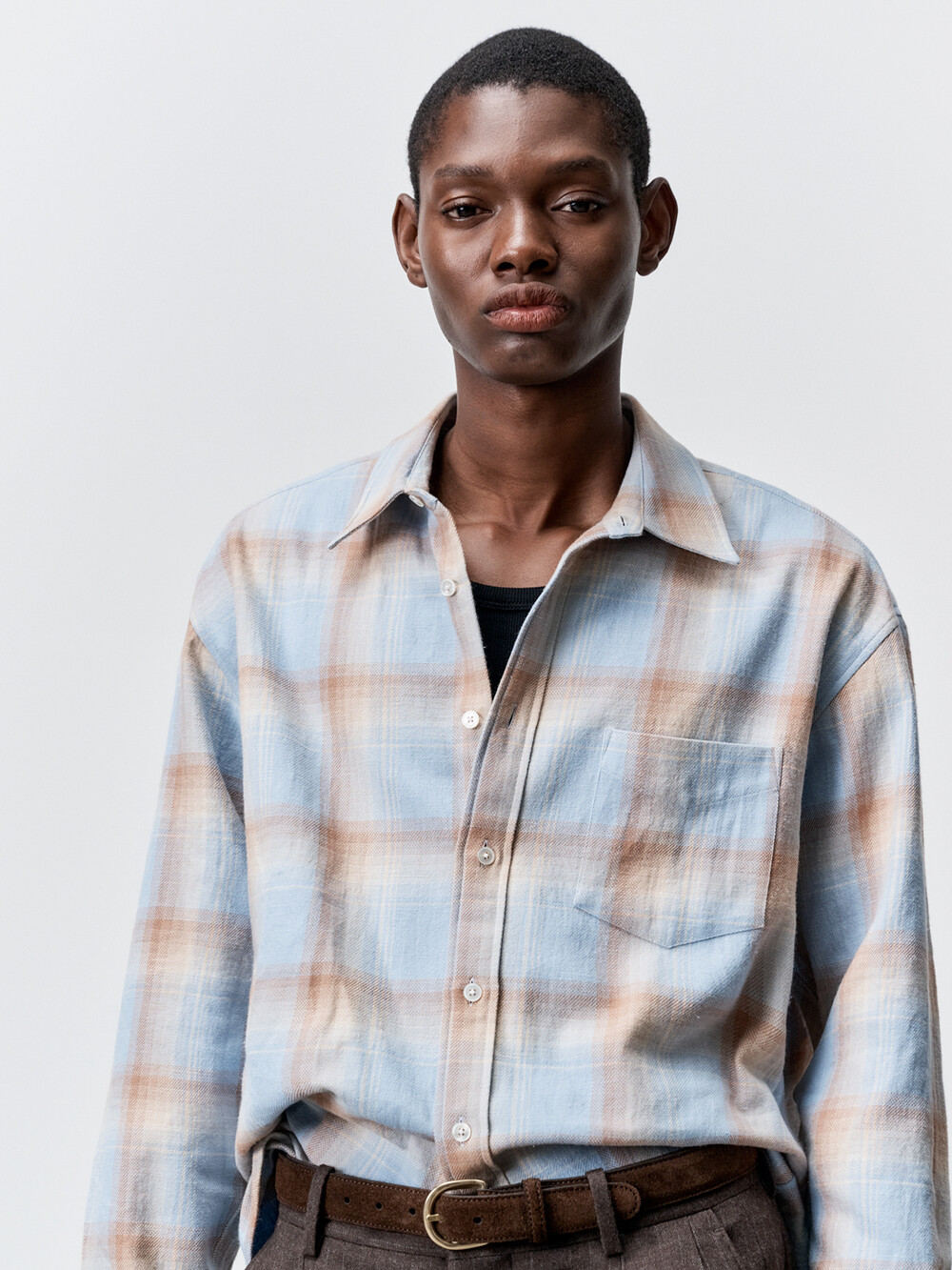 코튼 슬럽 체크 컴포트 셔츠 (BLUE)