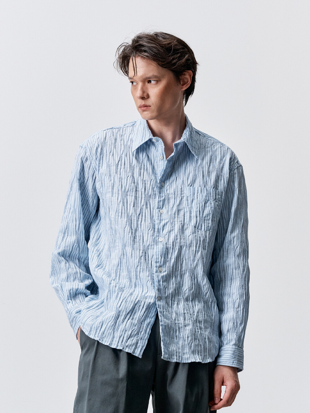 도비 스트라이프 크리즈 컴포트 셔츠 (BLUE)