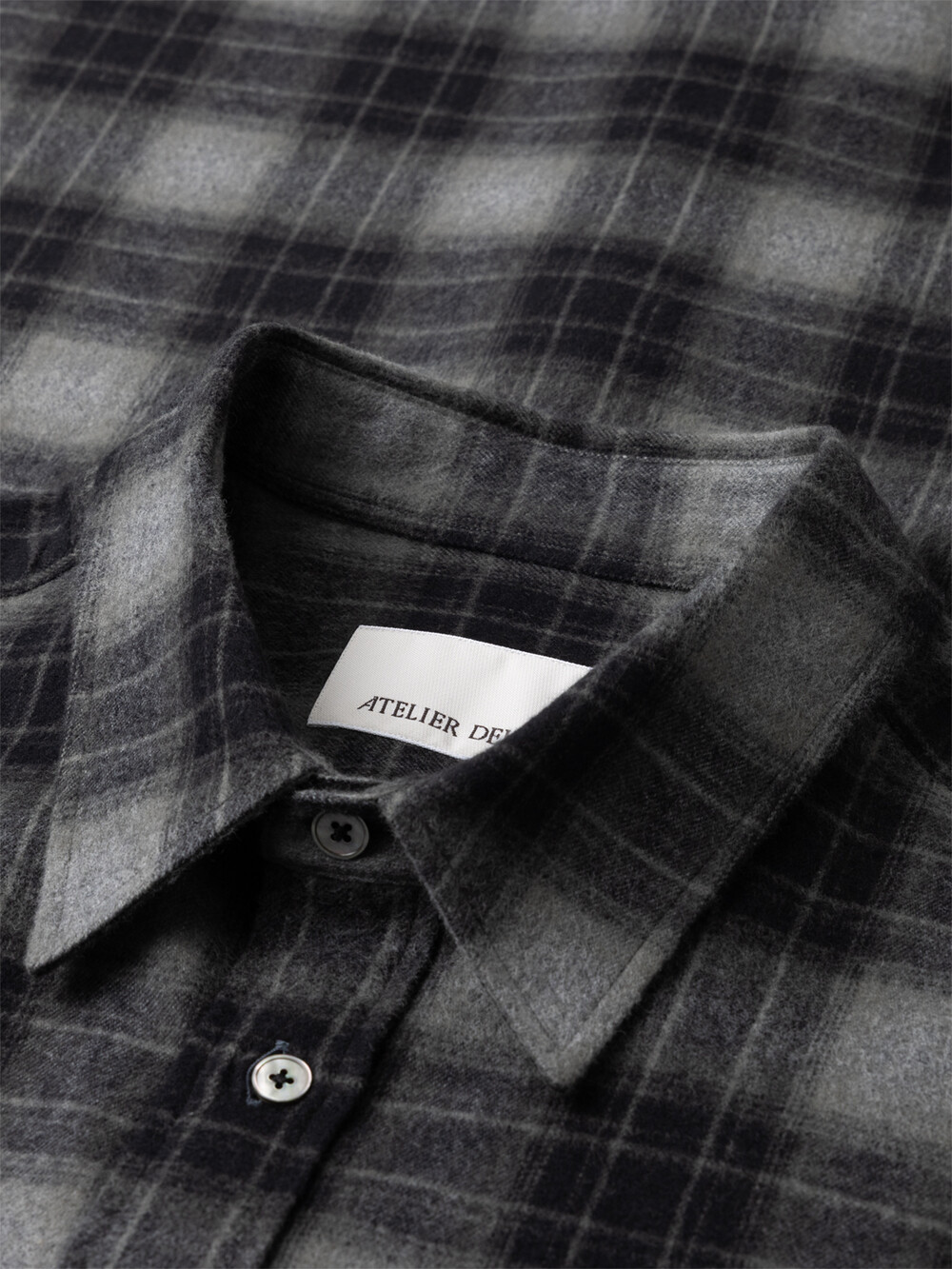 30수 2합 코튼의 바깥면을 쉐기(Shaggy) 가공하여 부드럽게 털이 올라오도록 만든 일본산 옴브레 플란넬 코튼을 사용하였습니다. 지난 시즌에 이어 새롭게 선보이는 옴브레 체크 패턴으로 과하지 않은 배색과 은은하고 고급스러운 그라데이션이 특징입니다. 아틀리에 델디오는 특유의 촉감과 색감을 위해 프리미엄 수입소재만을 고집합니다.