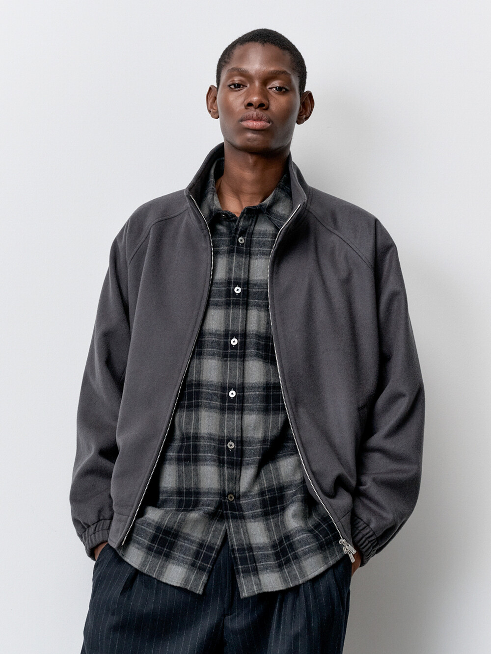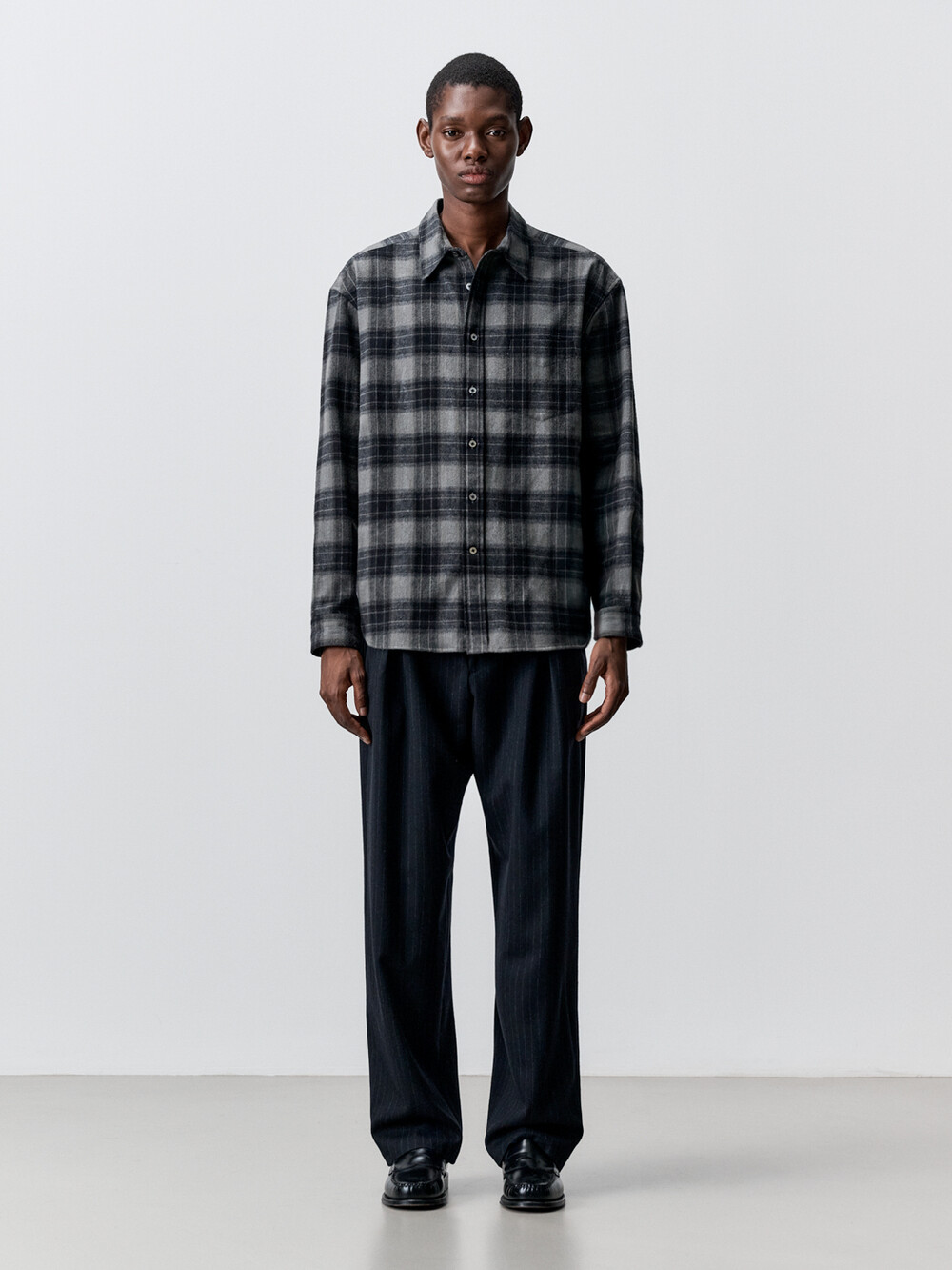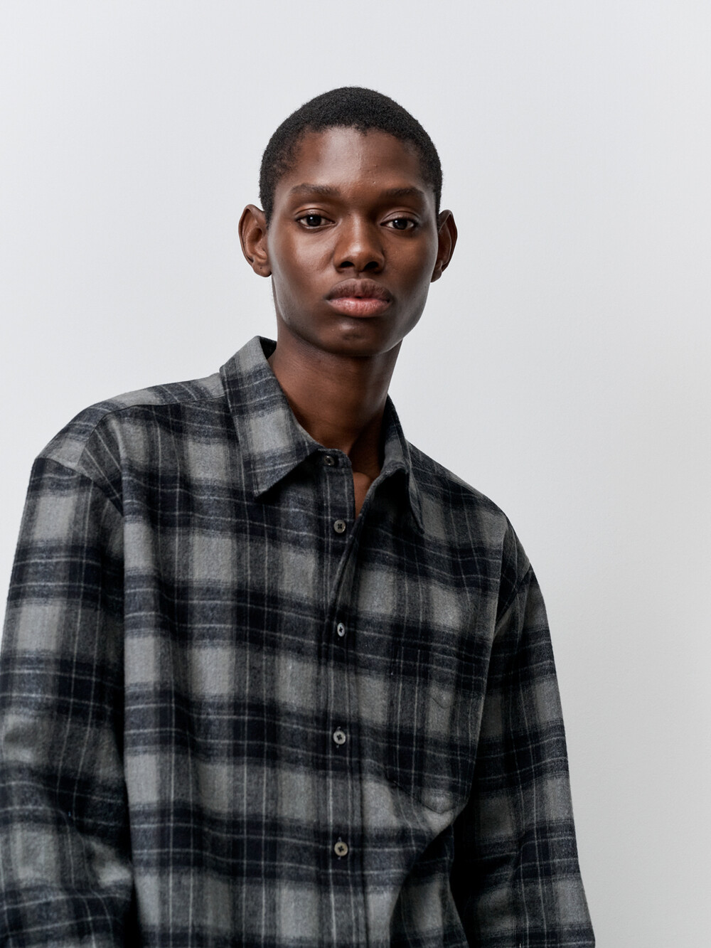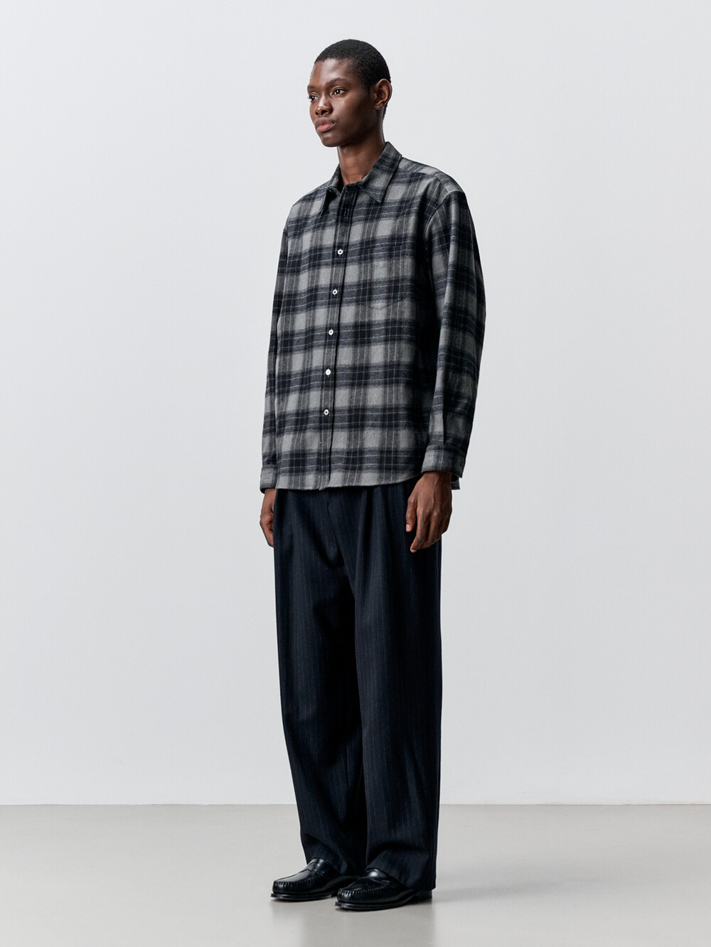 코튼 플란넬 체크 컴포트 셔츠 (CHARCOAL GREY)