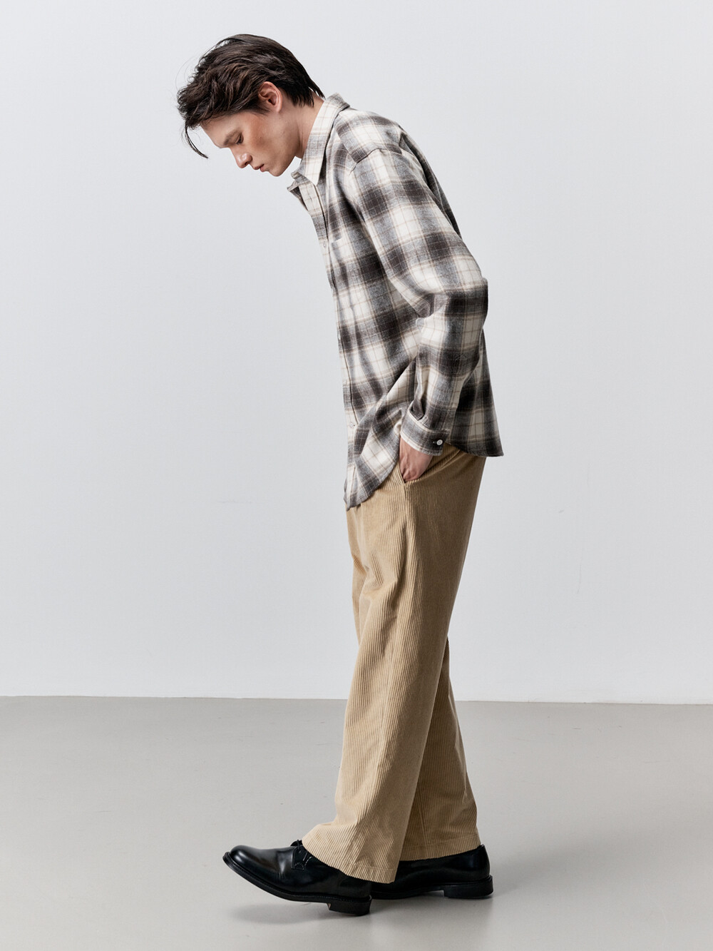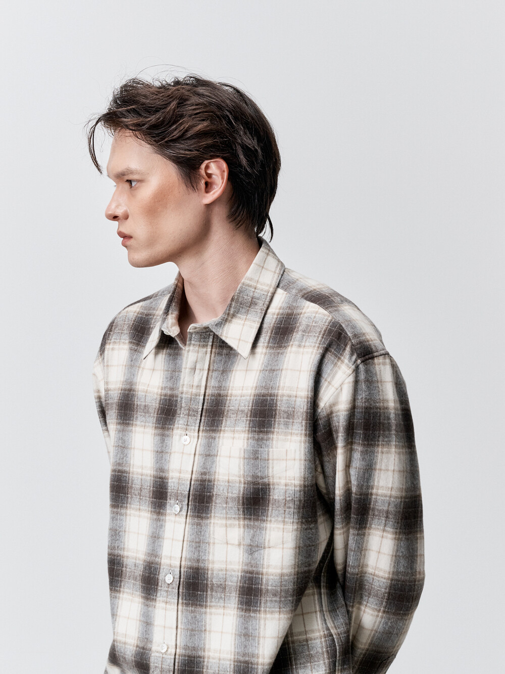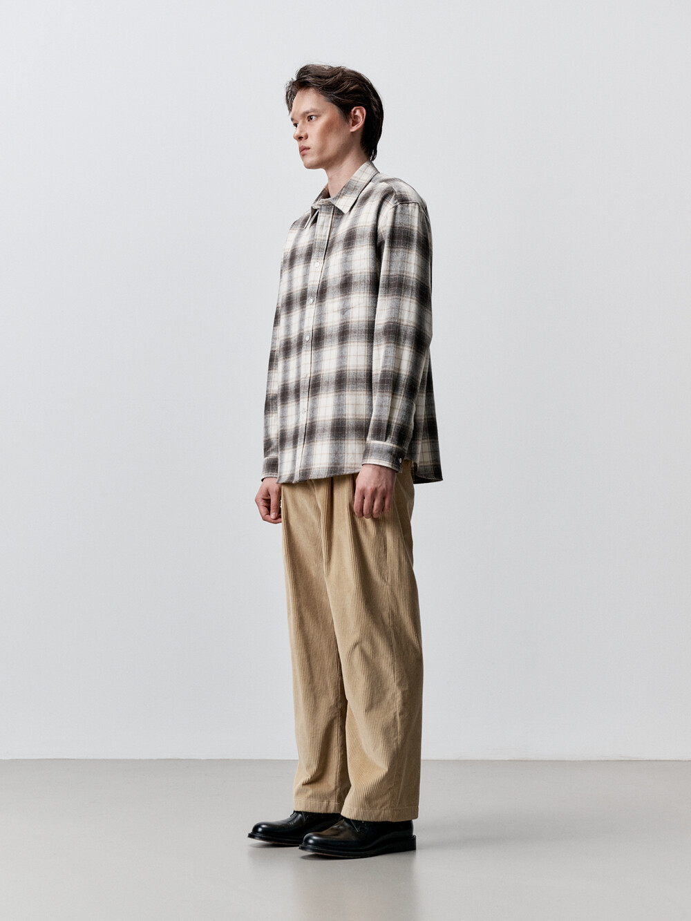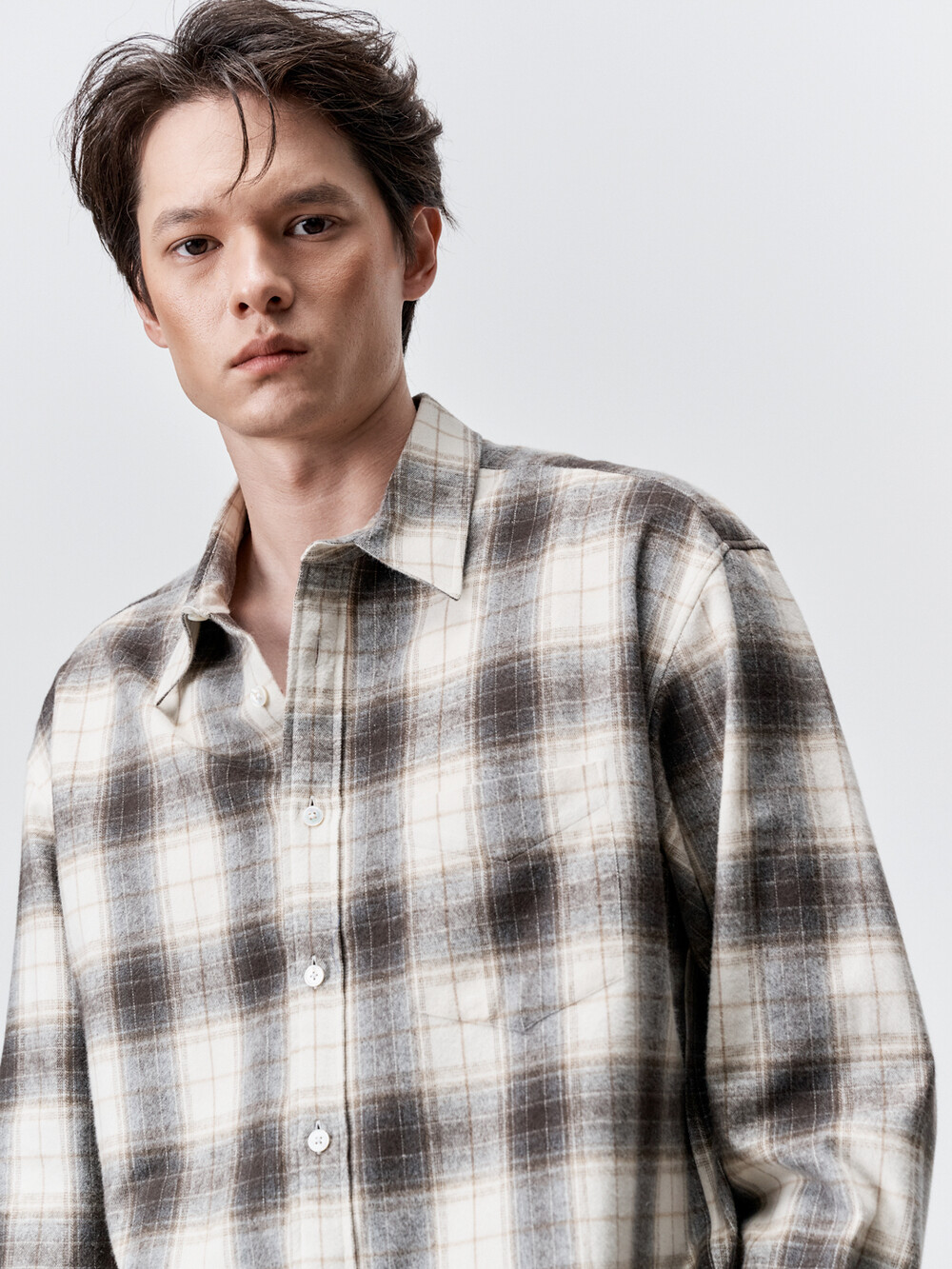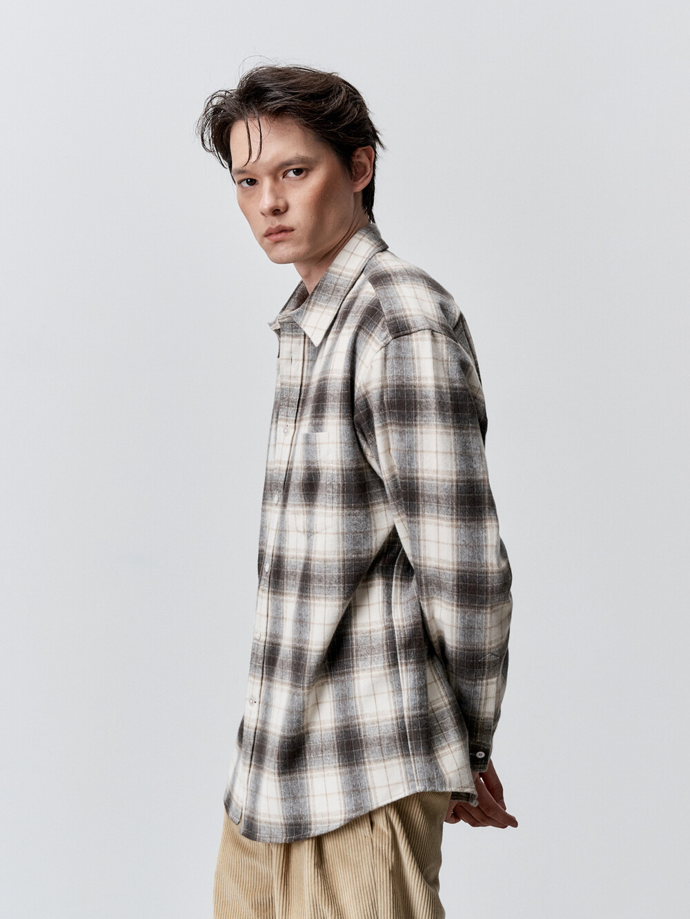 코튼 플란넬 체크 컴포트 셔츠 (IVORY BROWN)