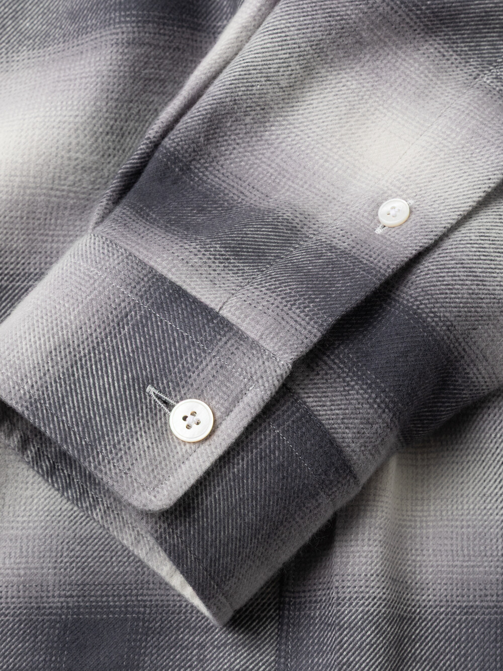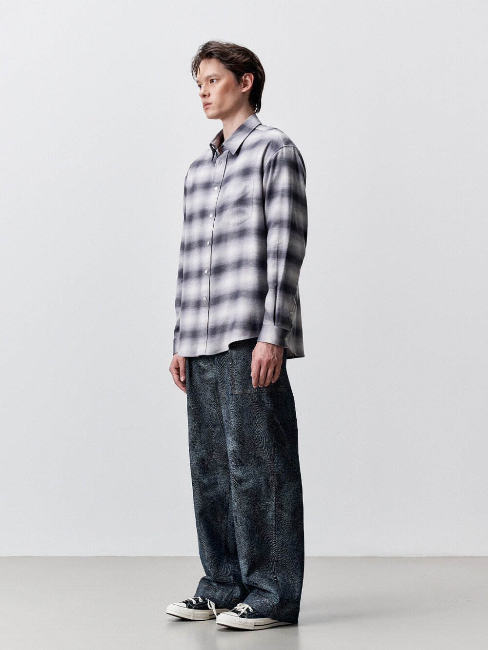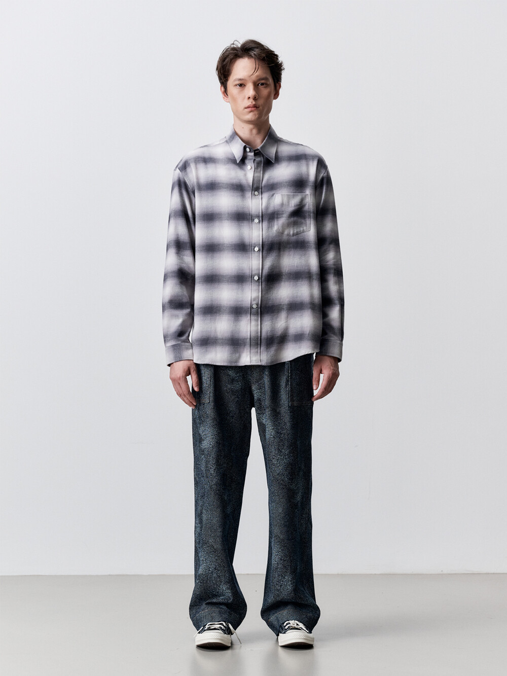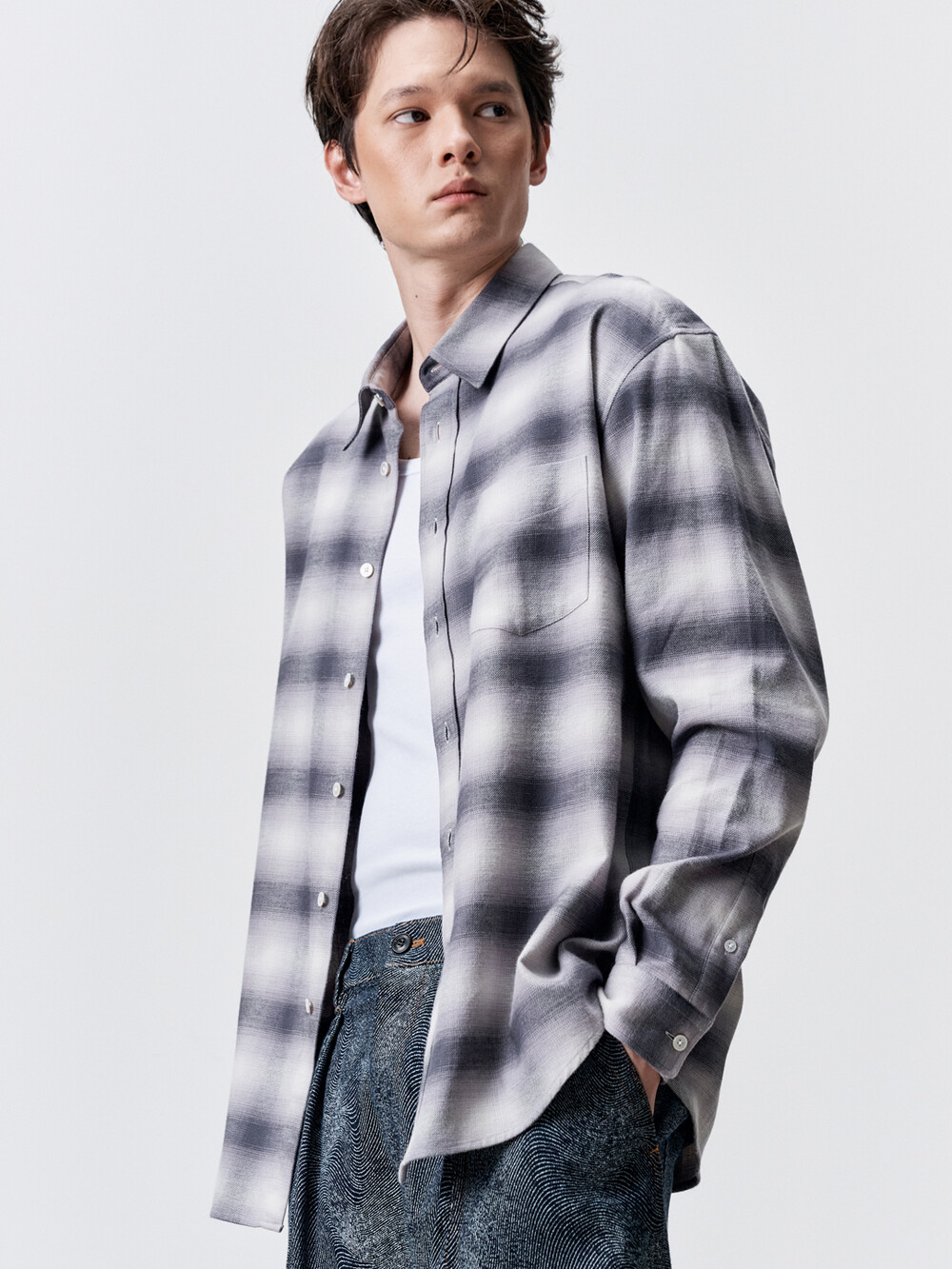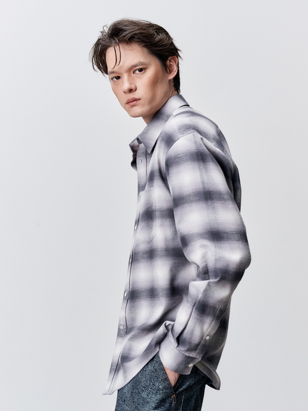 그레이 색상에 컬러감이 은은하게 배색된 옴브레 패턴의 체크셔츠로 가을겨울 시즌에 입기좋은 기모 셔츠입니다. 기존의 컴포트 셔츠 패턴을 일부 수정하여 더욱 깔끔하고 여유로운 핏을 선사합니다. 앞판에 플라켓과 가슴포켓이 달려있으며, 뒷판 요크를 사선으로 재단하였습니다. 적당히 여유로운 실루엣의 컴포트핏 셔츠로 캐주얼 팬츠부터 셋업까지 다양한 아이템과 매치할 수 있습니다.