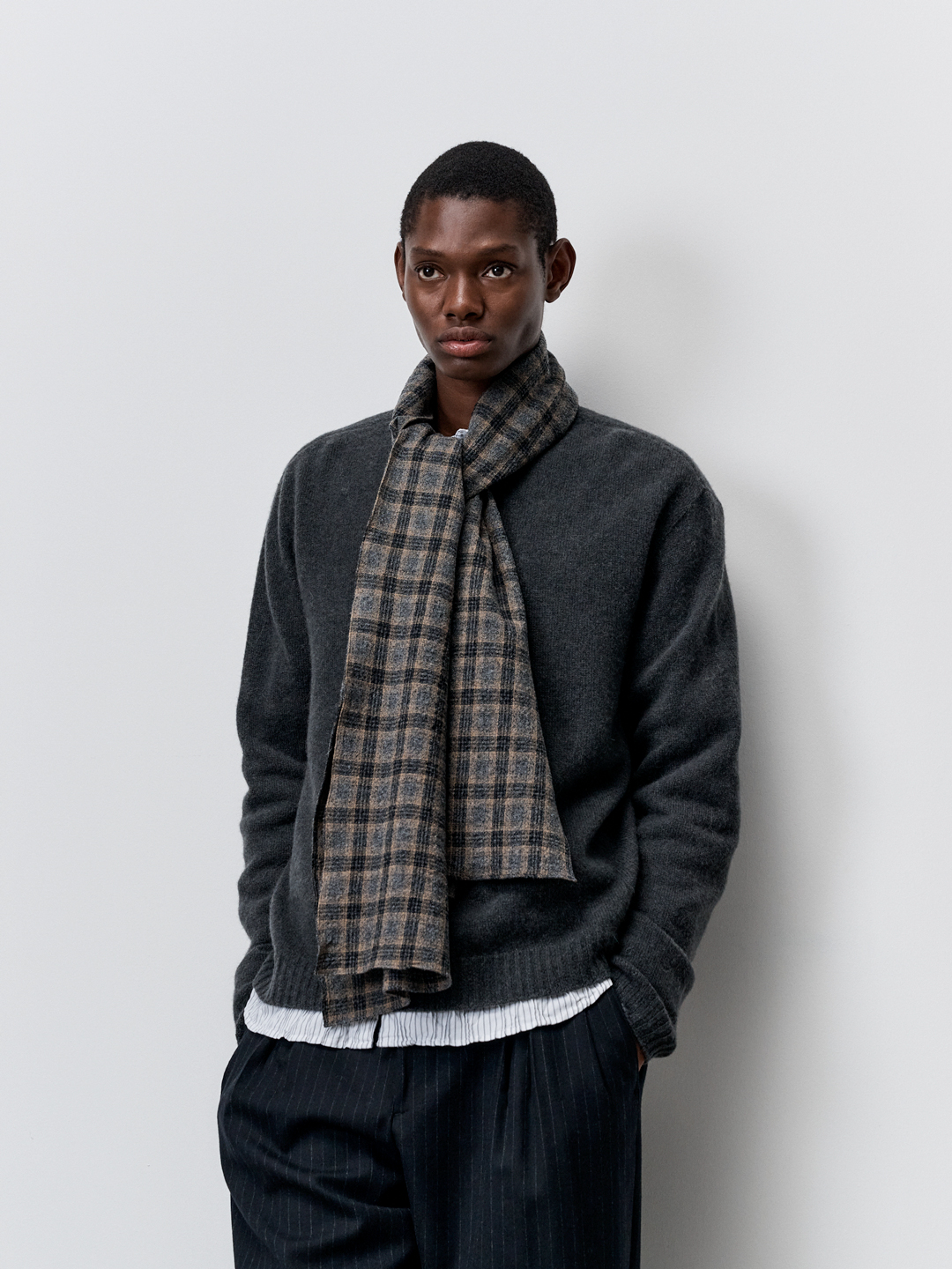 울 코튼 소재의 셔링 체크 스카프입니다. 적당한 간격의 체크패턴에 포인트 컬러가 은은하게 그라데이션으로 직조되어있습니다. 빈티지한 텍스쳐감이 매력적인 셔링 스카프로 주름 걱정없이 다양하게 착용 및 보관 하실 수 있습니다.