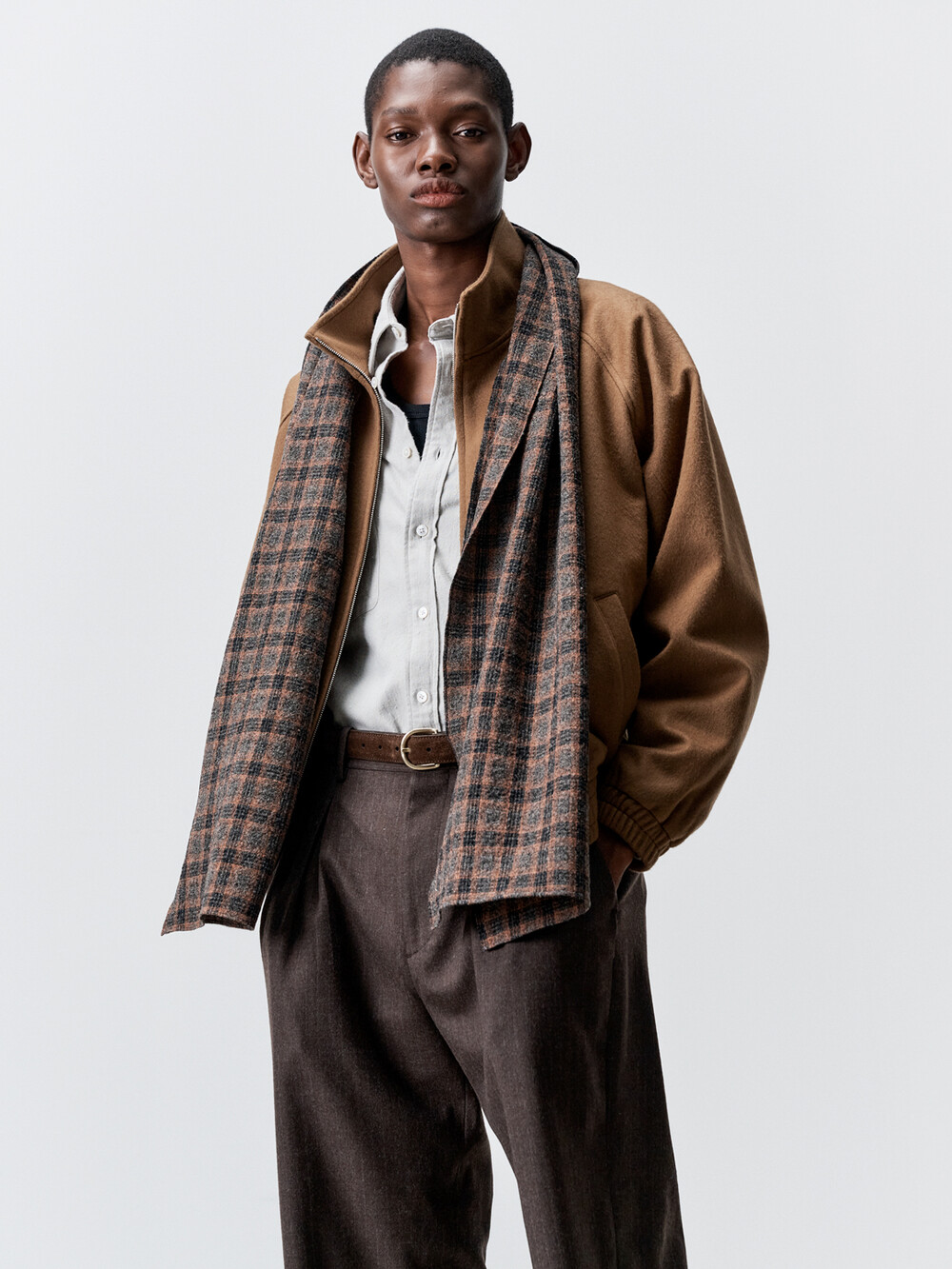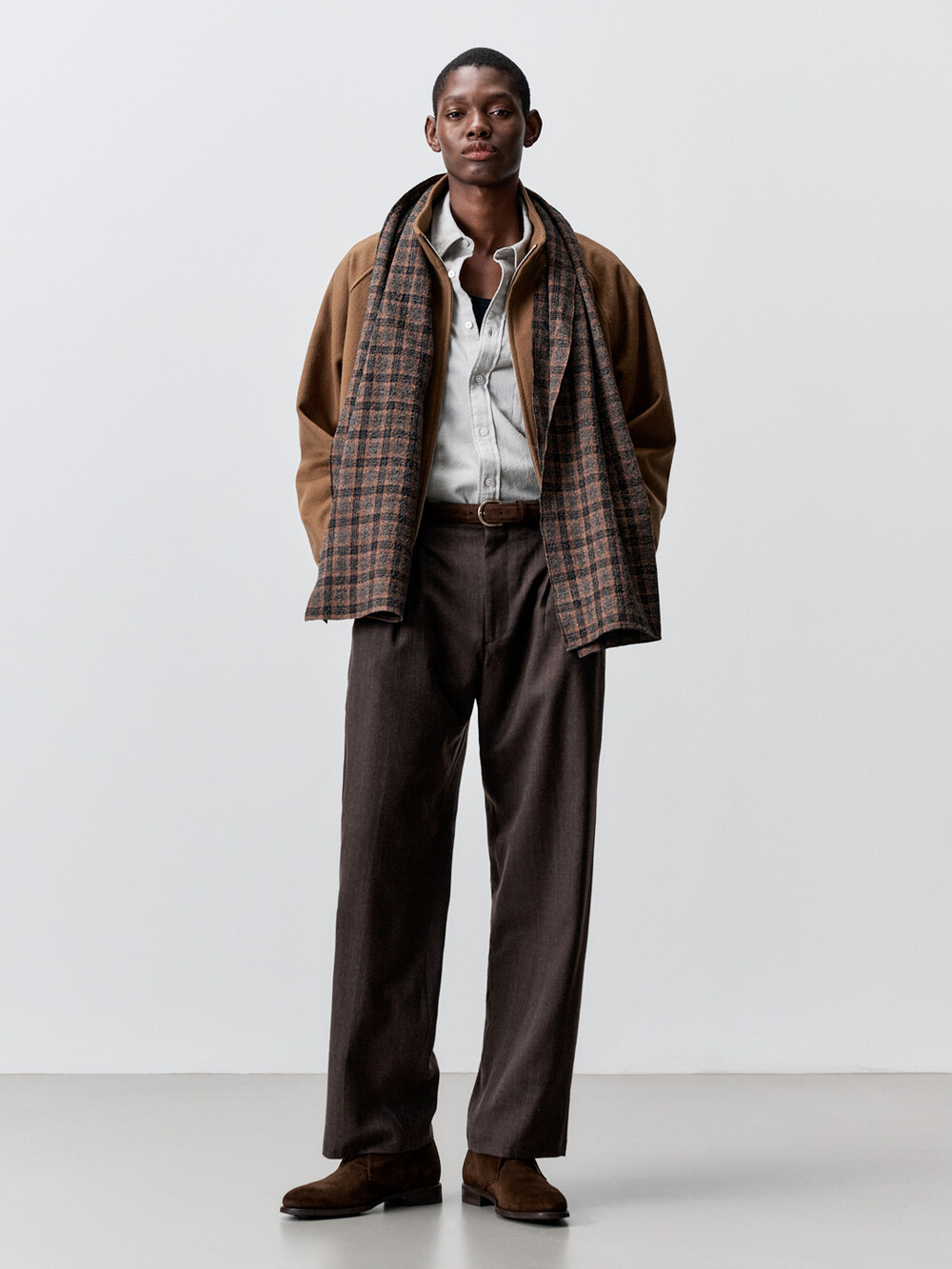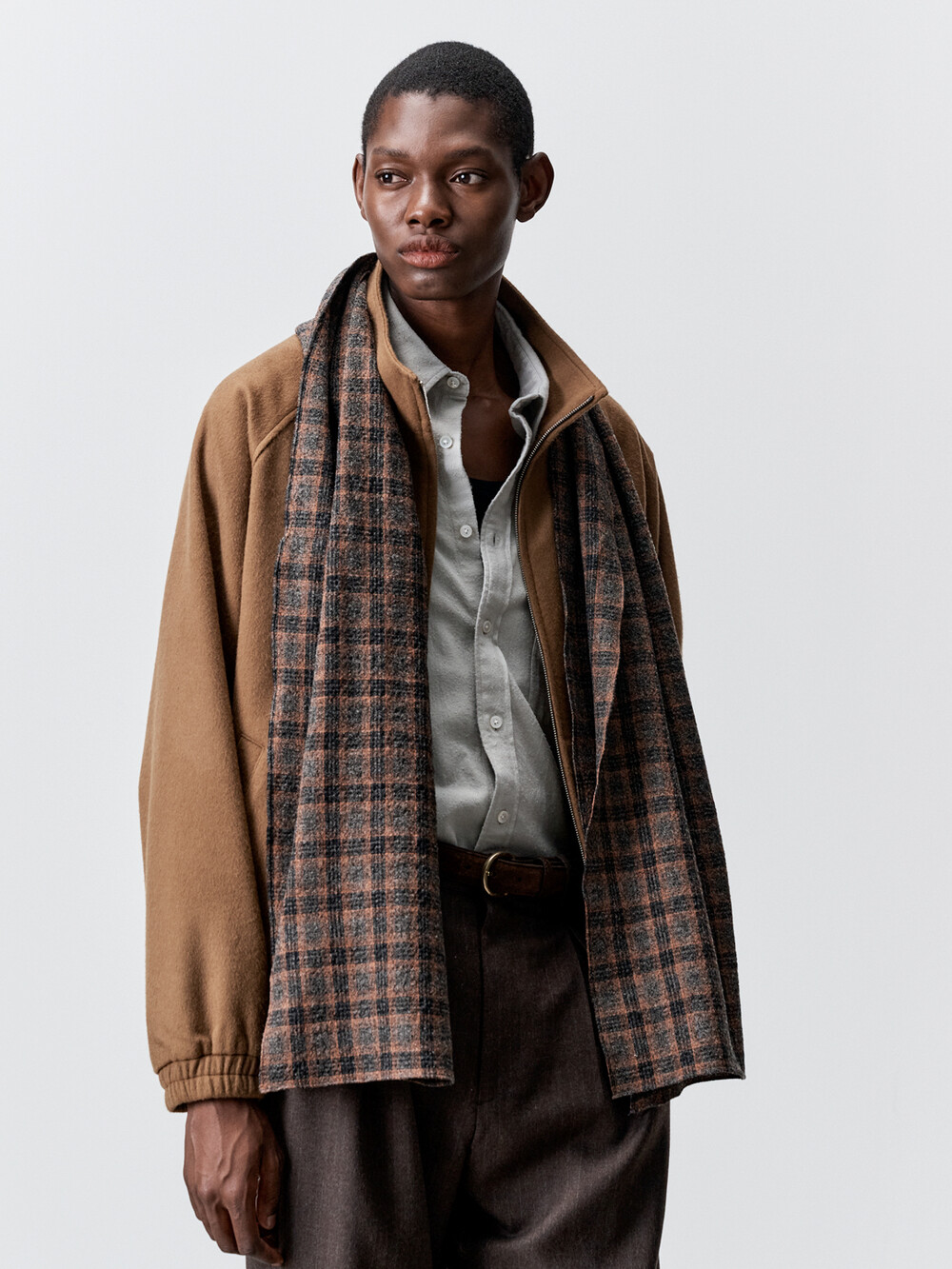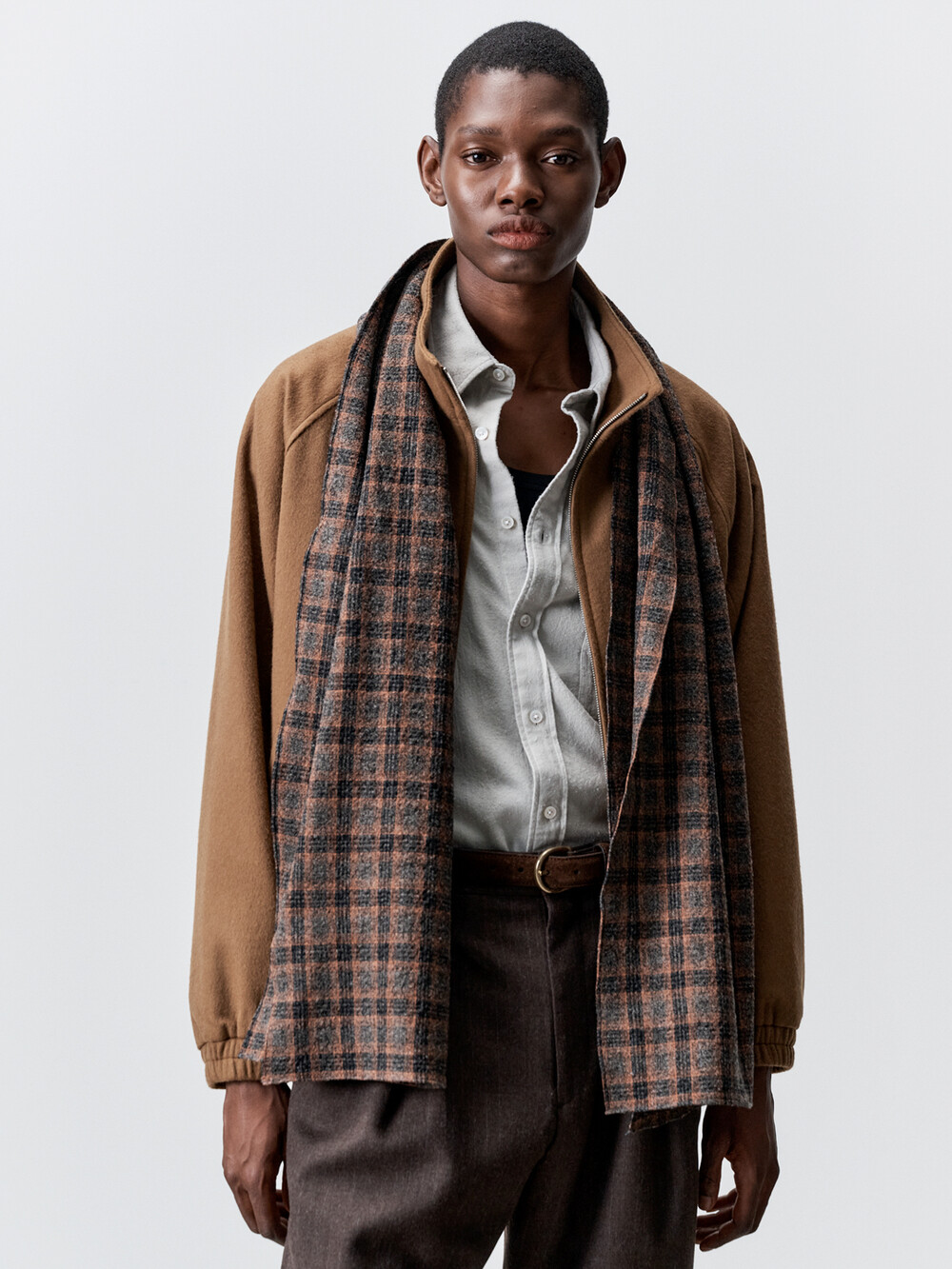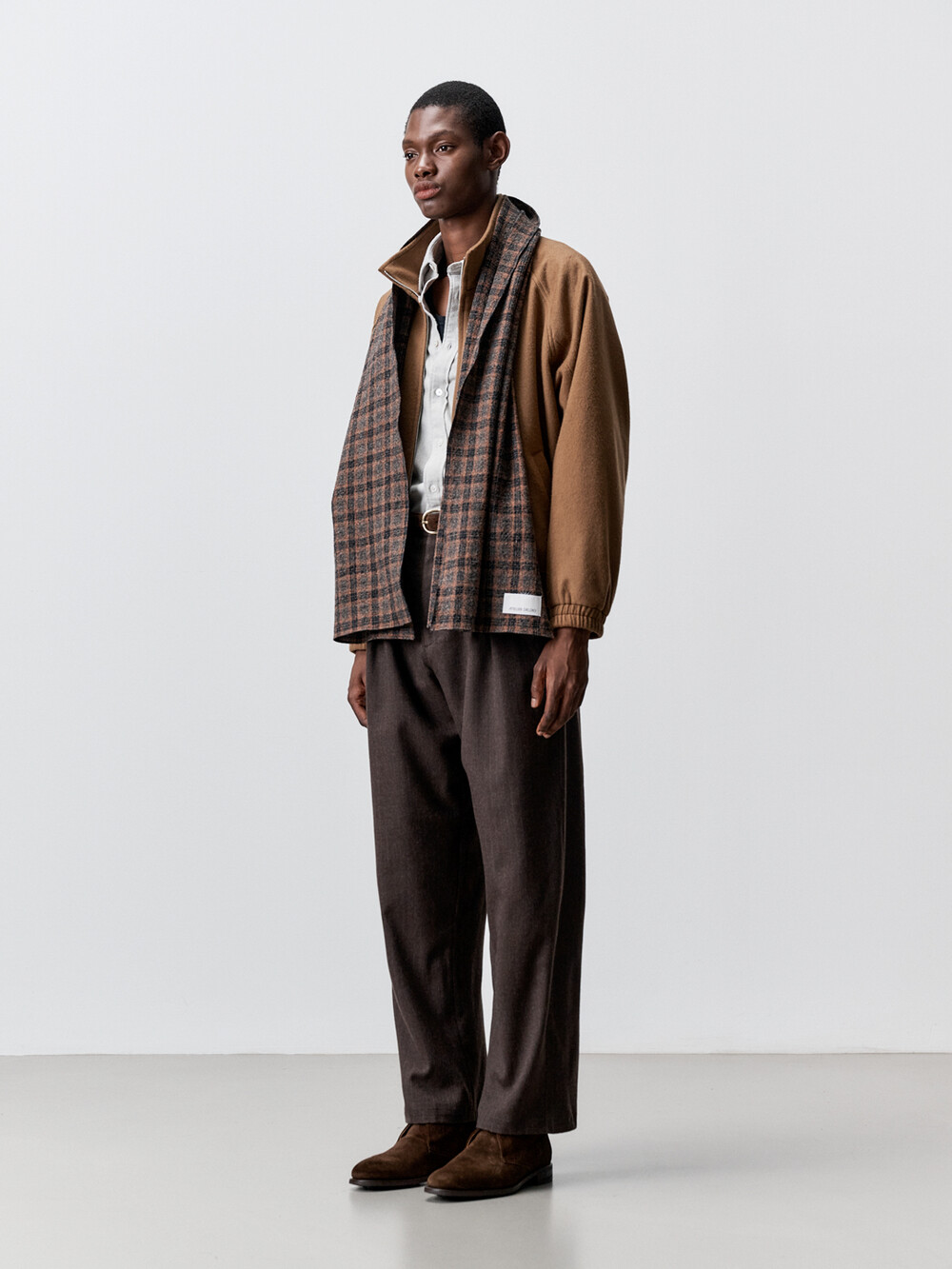 성수동에 위치한 아틀리에 델디오의 자체 공방에서 생산하였습니다. 고급 셔츠메이킹 기법을 사용하여 스카프 테두리를 깔끔하게 말아 봉제하였습니다. 케어라벨을 메인라벨 안쪽에 봉제하여 착용시 불편함이 없도록 하였습니다.