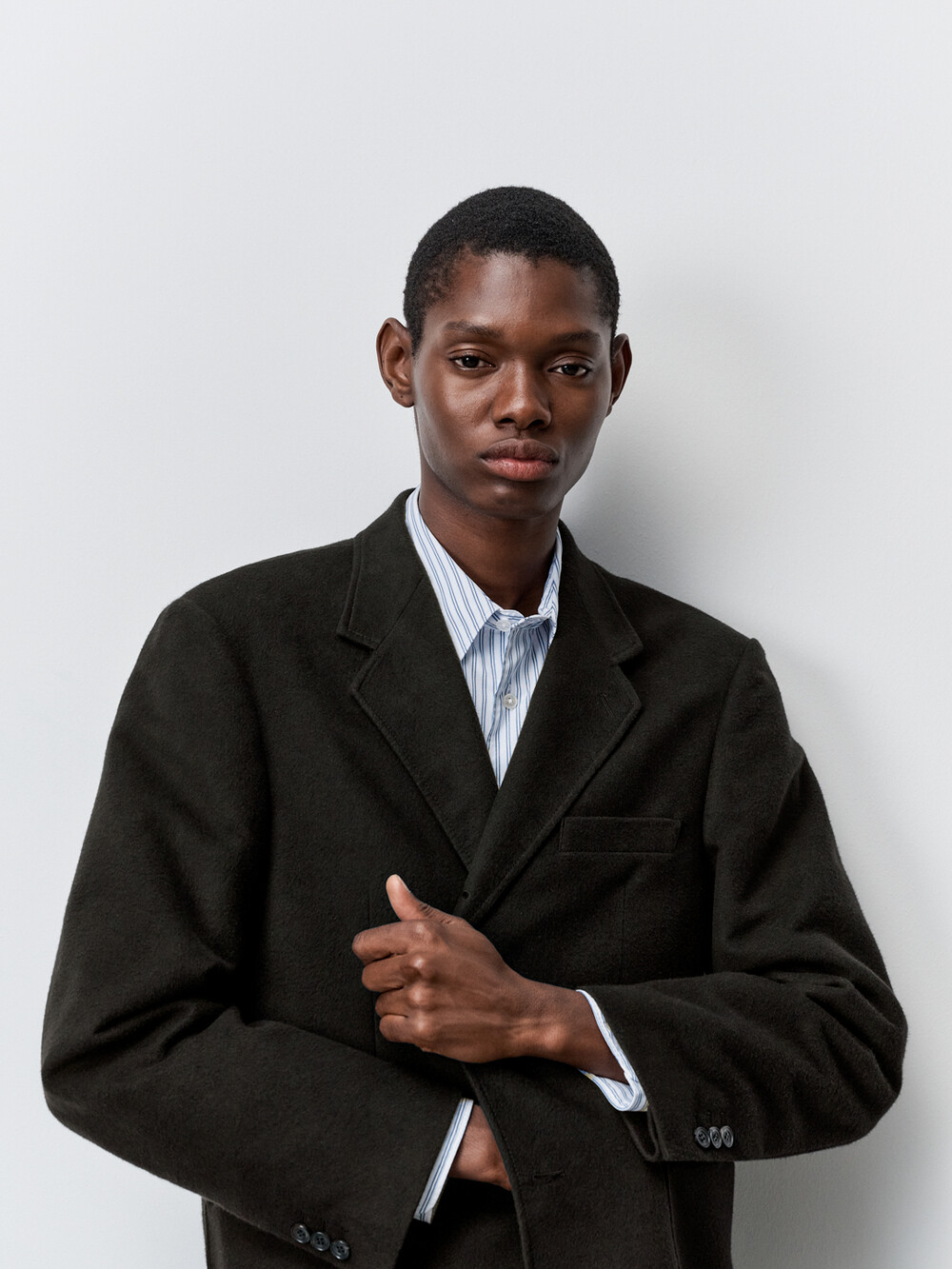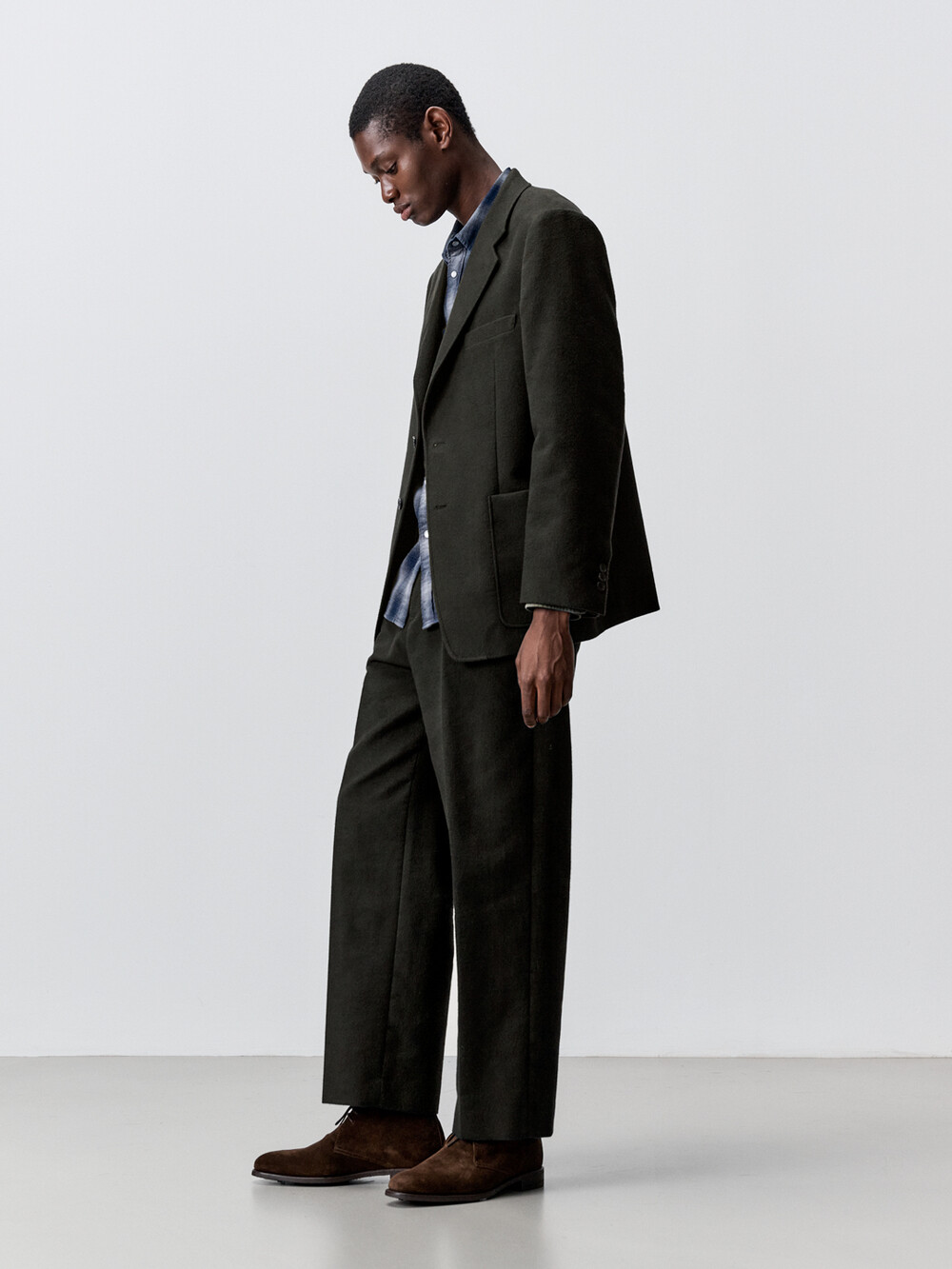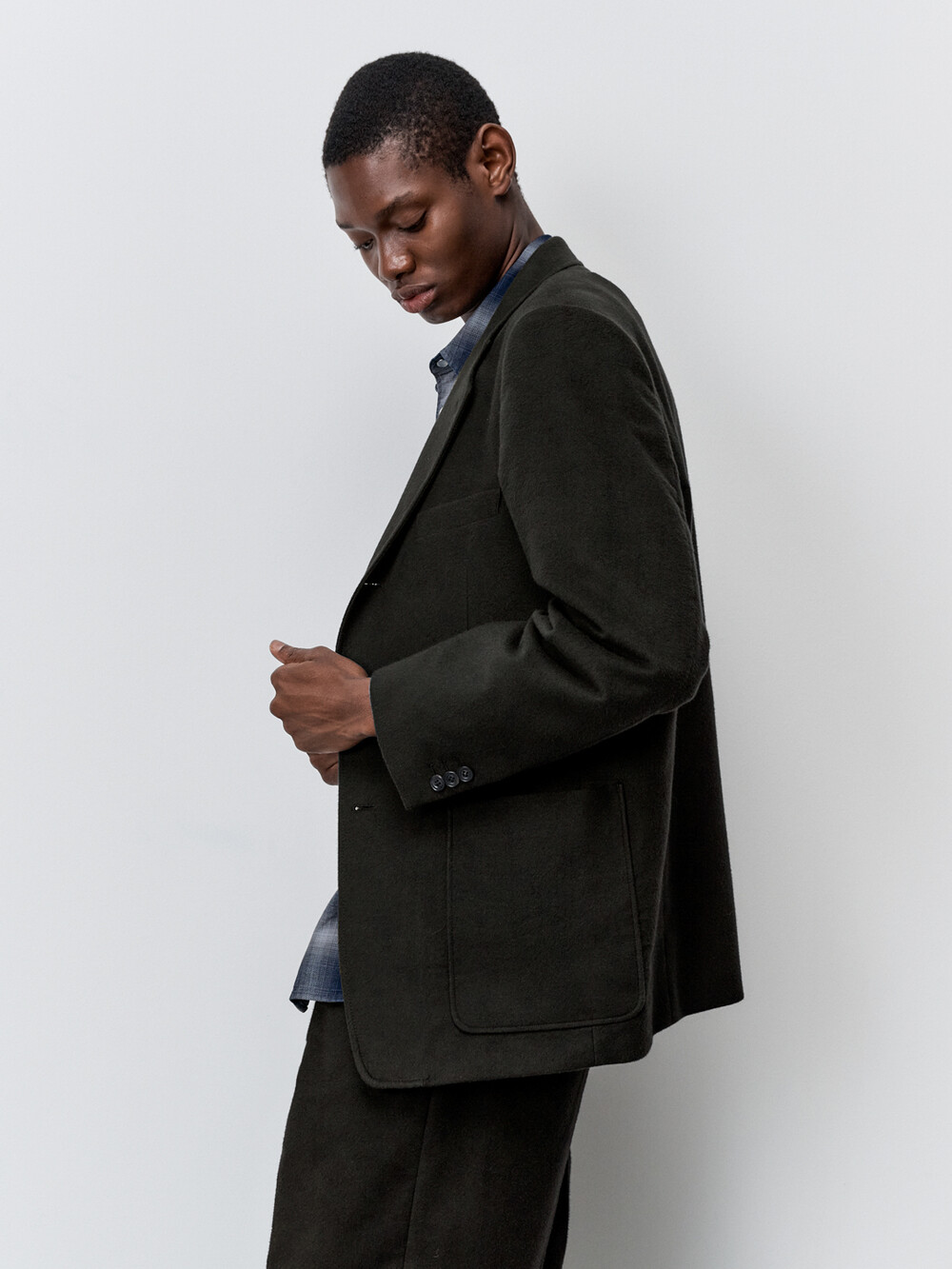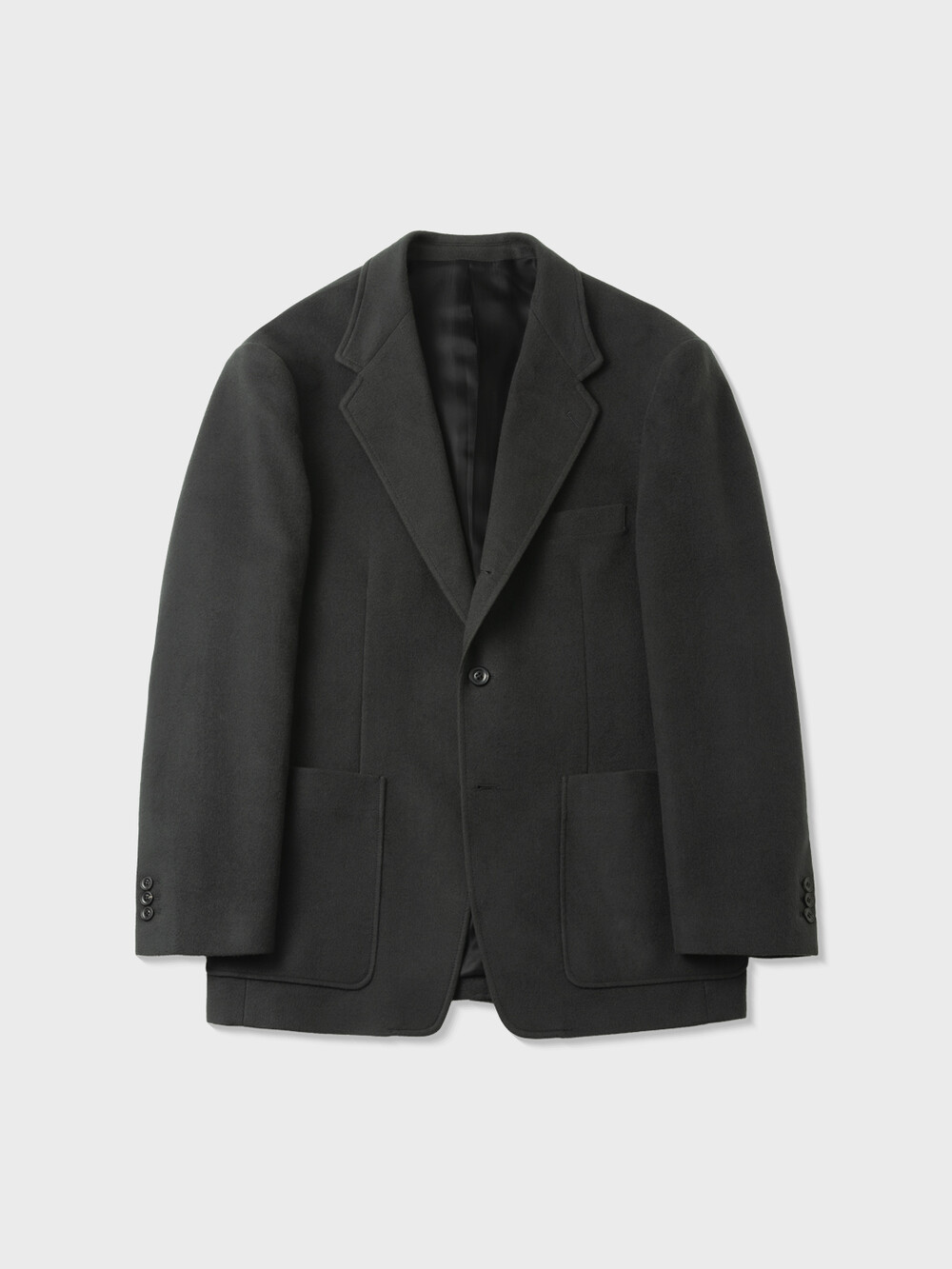 브러시드 실크 원단으로 만든 테일러드 재킷입니다. 두께감이 있는 겨울용 재킷으로 캐시미어 코트와 같은 부드러운 기모감과 따뜻함을 느끼실 수 있습니다. 3버튼 스타일의 재킷이지만 2버튼 처럼 가운데 단추만 활용할 수도 있는 디자인이며, 앞판 양 옆에 패치 포켓이 달려 캐주얼한 룩을 연출하실 수 있습니다. 겨울철 단품 재킷으로 착용하시거나 동일한 원단의 팬츠와 코디하여 셋업 수트로 활용하실 수 있습니다.
