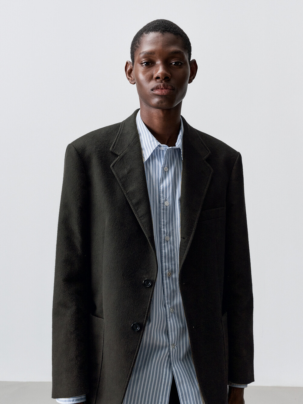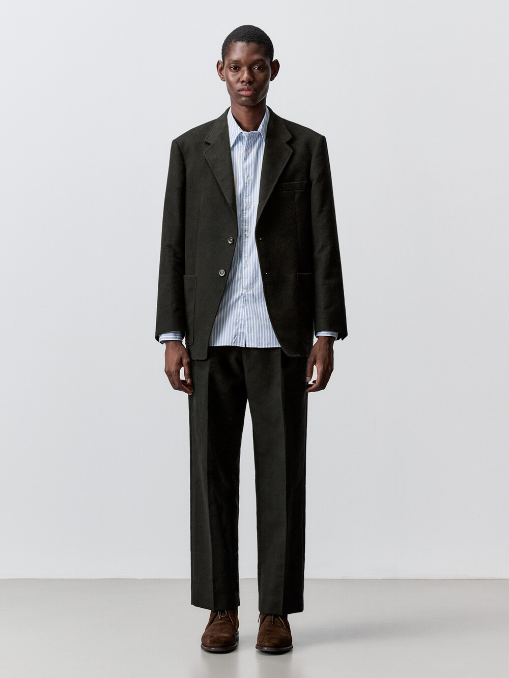 수트 전문 공장에서 프리미엄 공정으로 제작하였습니다. 소매를 여닫을 수 있는 리얼버튼으로 제작되었습니다. 심지부터 천연 소뿔단추까지 고품질의 부자재를 사용했습니다.