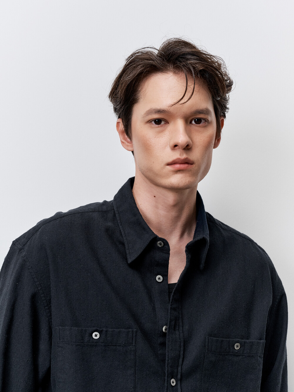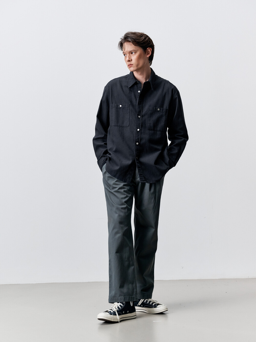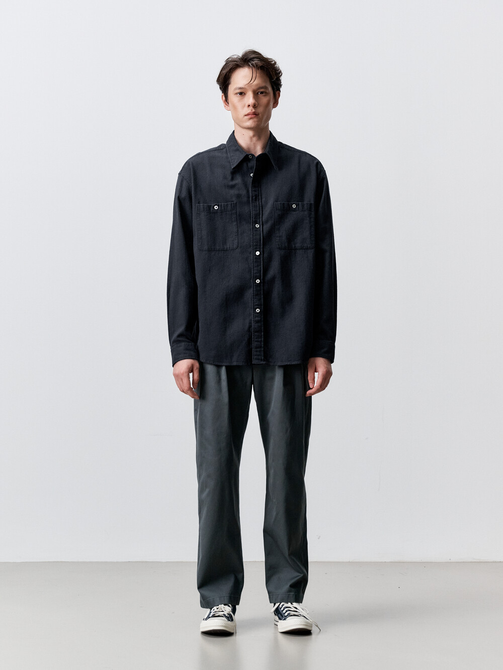 실크 혼방 원단으로 만든 컴포트 핏의 더블 포켓 셔츠입니다. 일본 디자이너 브랜드에서 애용하는 실크노일 소재를 사용하였으며, 원단 표면에 자연스럽게 뭉친 네프가 빈티지한 룩을 연출합니다. 기존의 컴포트 셔츠 패턴을 일부 수정하여 더욱 깔끔하고 여유로운 핏을 선사합니다. 가슴 양쪽에 포켓을 달아 캐주얼함과 실용성을 더했습니다. 적당히 여유로운 실루엣의 컴포트핏 셔츠로 캐주얼 팬츠부터 셋업까지 다양한 아이템과 매치할 수 있습니다.