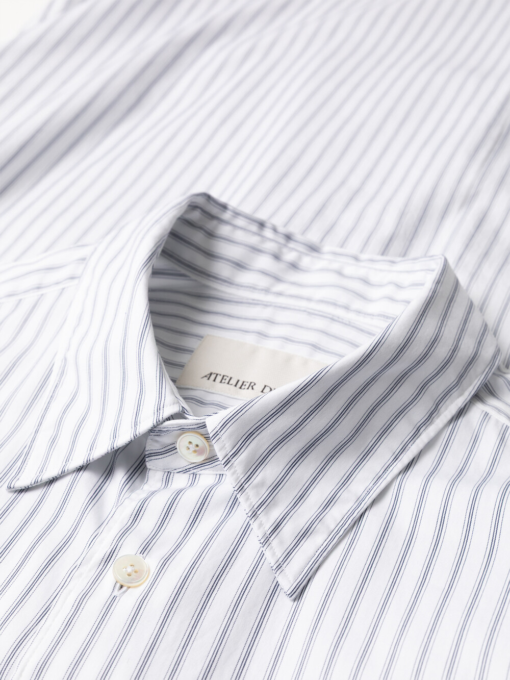 80수 2합 일본산 고밀도 코튼 포플린 원단을 사용하였습니다. 해외 명품 브랜드에서 많이 사용되는 원단으로 부드러우면서도 밀도감있는 터치감을 느끼실 수 있습니다. 아틀리에 델디오는 특유의 촉감과 색감을 위해 프리미엄 수입원단만을 고집합니다.