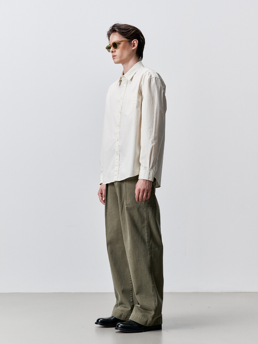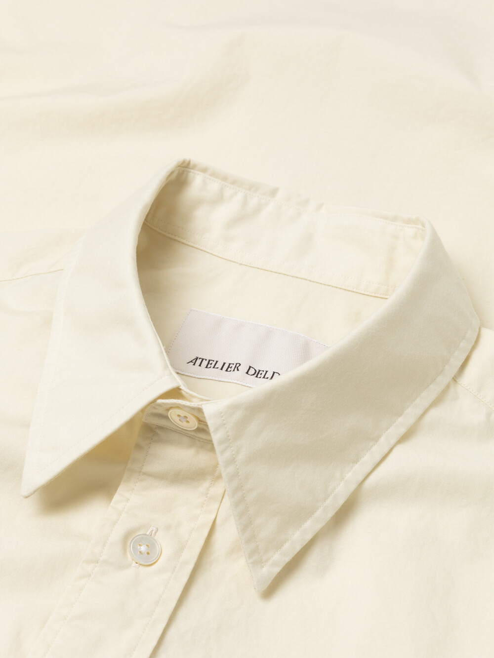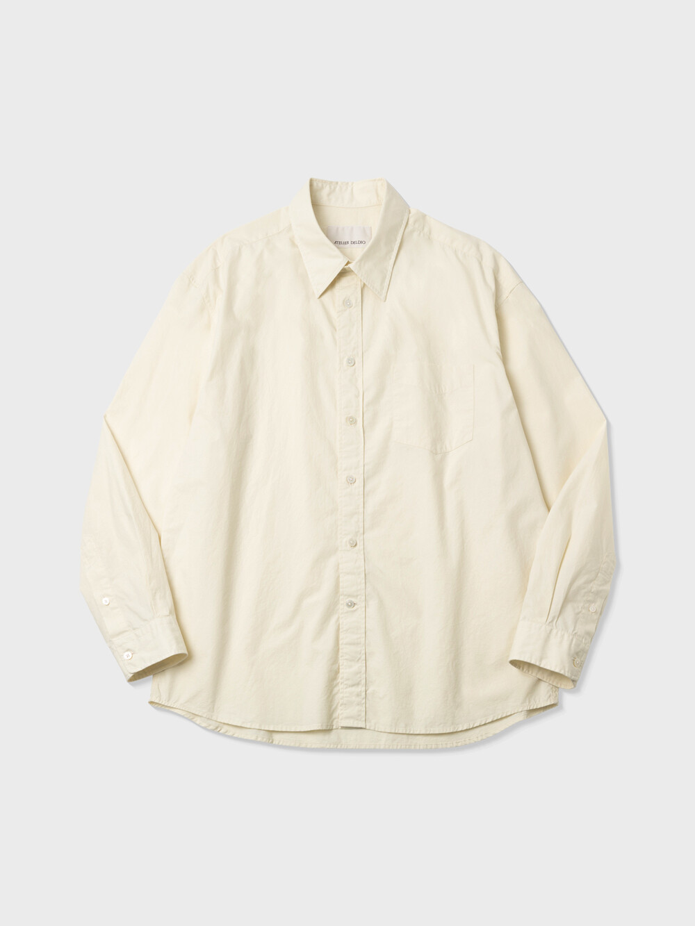 성수동에 위치한 아틀리에 델디오의 자체 공방에서 생산하였습니다. 인치당 18땀 이상의 촘촘한 땀수로 봉제하였습니다. 내츄럴함을 살리기 위하여 카라와 소매에 비접착 심지를 사용하였습니다. 델디오의 모든 셔츠는 독일산 귀터만(Güterman) 실과 천연 자개단추를 사용합니다. 셔츠 완성 후 가먼트 워싱을 통해 수축률을 최소화하고 캐주얼함을 더했습니다.