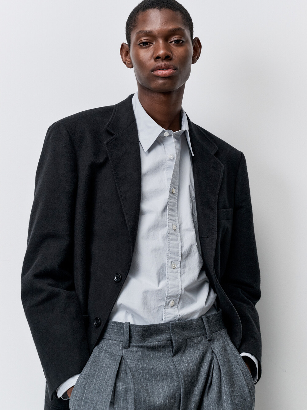 가을/겨울 시즌에 어울리는 두께감의 40수 코튼으로 만든 일본산 오리지널 타이프라이터 원단을 사용하였습니다. 타이프라이터코튼은 일본에서 개발한 고밀도 면원단으로 바스락거리는 셔츠원단의 대명사입니다. 아틀리에 델디오는 특유의 촉감과 색감을 위해 프리미엄 수입소재만을 고집합니다.
