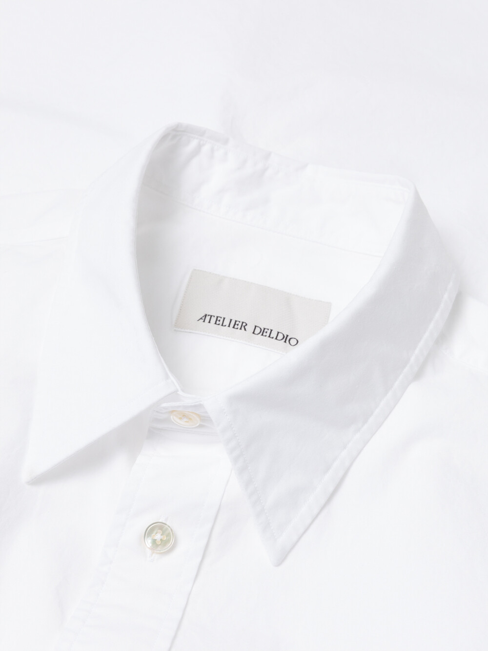 성수동에 위치한 아틀리에 델디오의 자체 공방에서 생산하였습니다. 인치당 18땀 이상의 촘촘한 땀수로 봉제하였습니다. 내츄럴함을 살리기 위하여 카라와 소매에 비접착 심지를 사용하였습니다. 델디오의 모든 셔츠는 독일산 귀터만(Güterman) 실과 천연 자개단추를 사용합니다. 셔츠 완성 후 가먼트 워싱을 통해 수축률을 최소화하고 캐주얼함을 더했습니다.