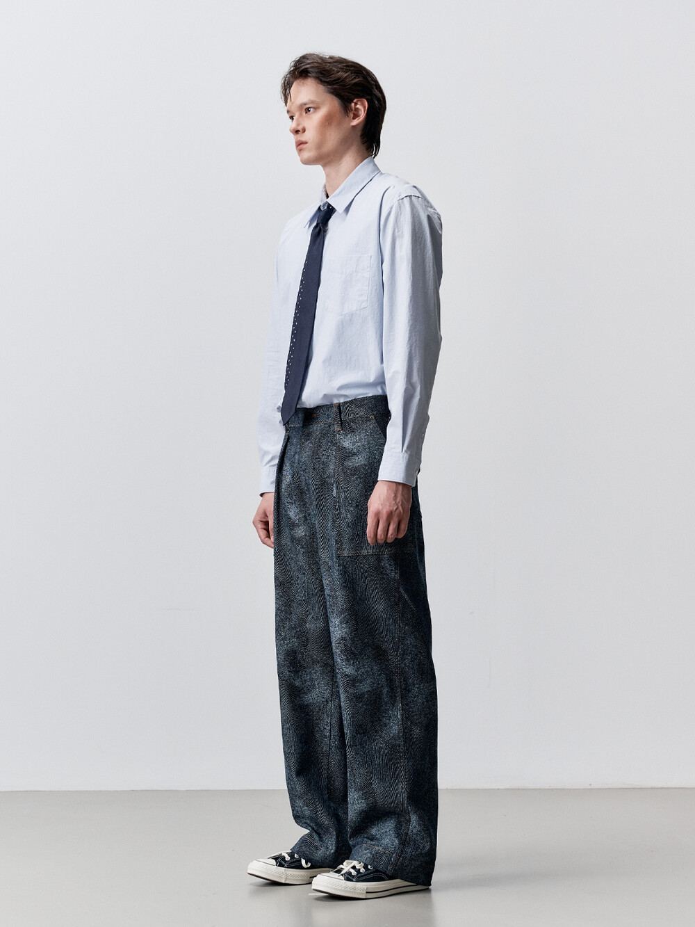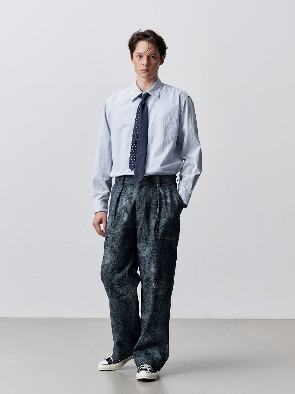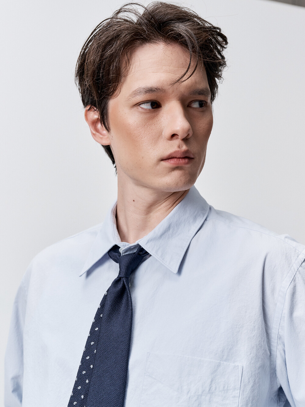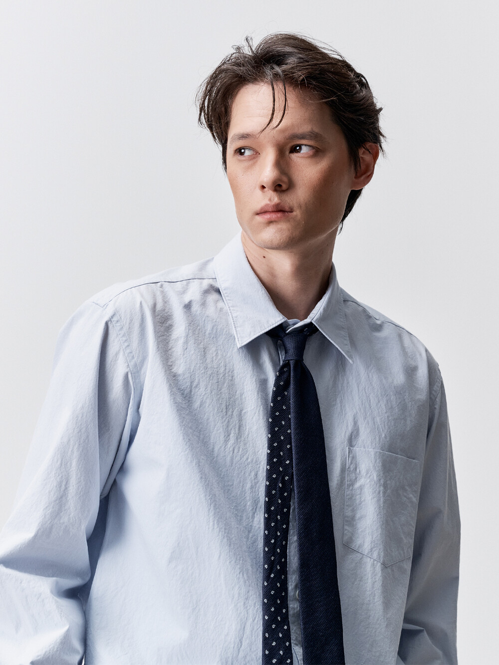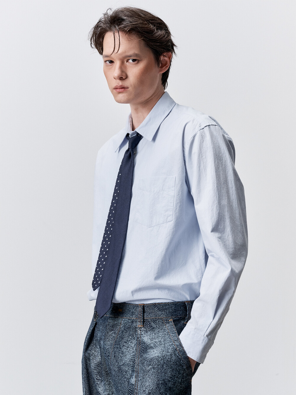 코튼 타입라이터 테이퍼드 셔츠 (PALE BLUE)