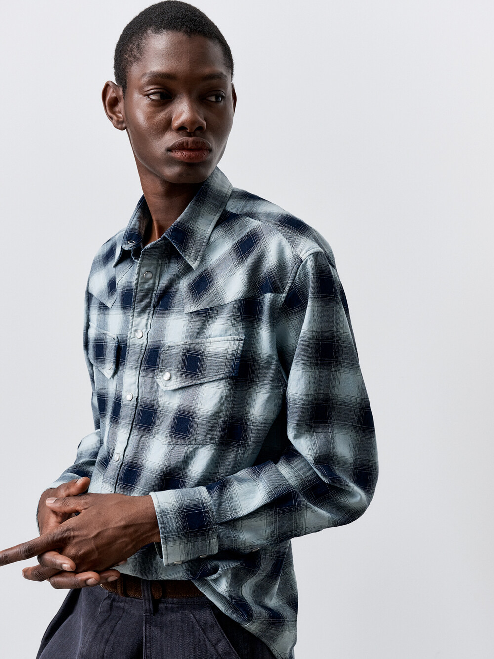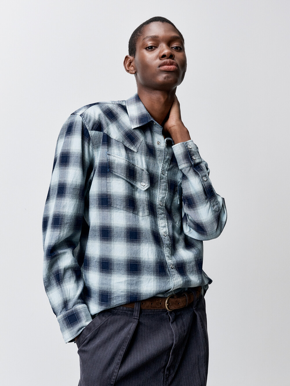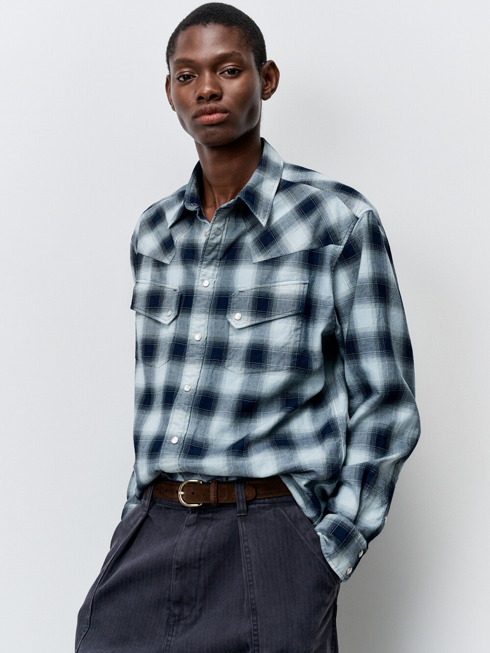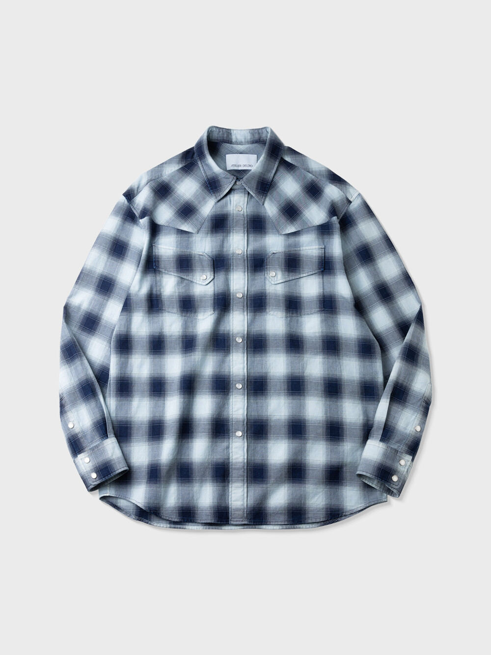 인디고 다이드 코튼 체크 웨스턴 셔츠 (INDIGO BLUE)
