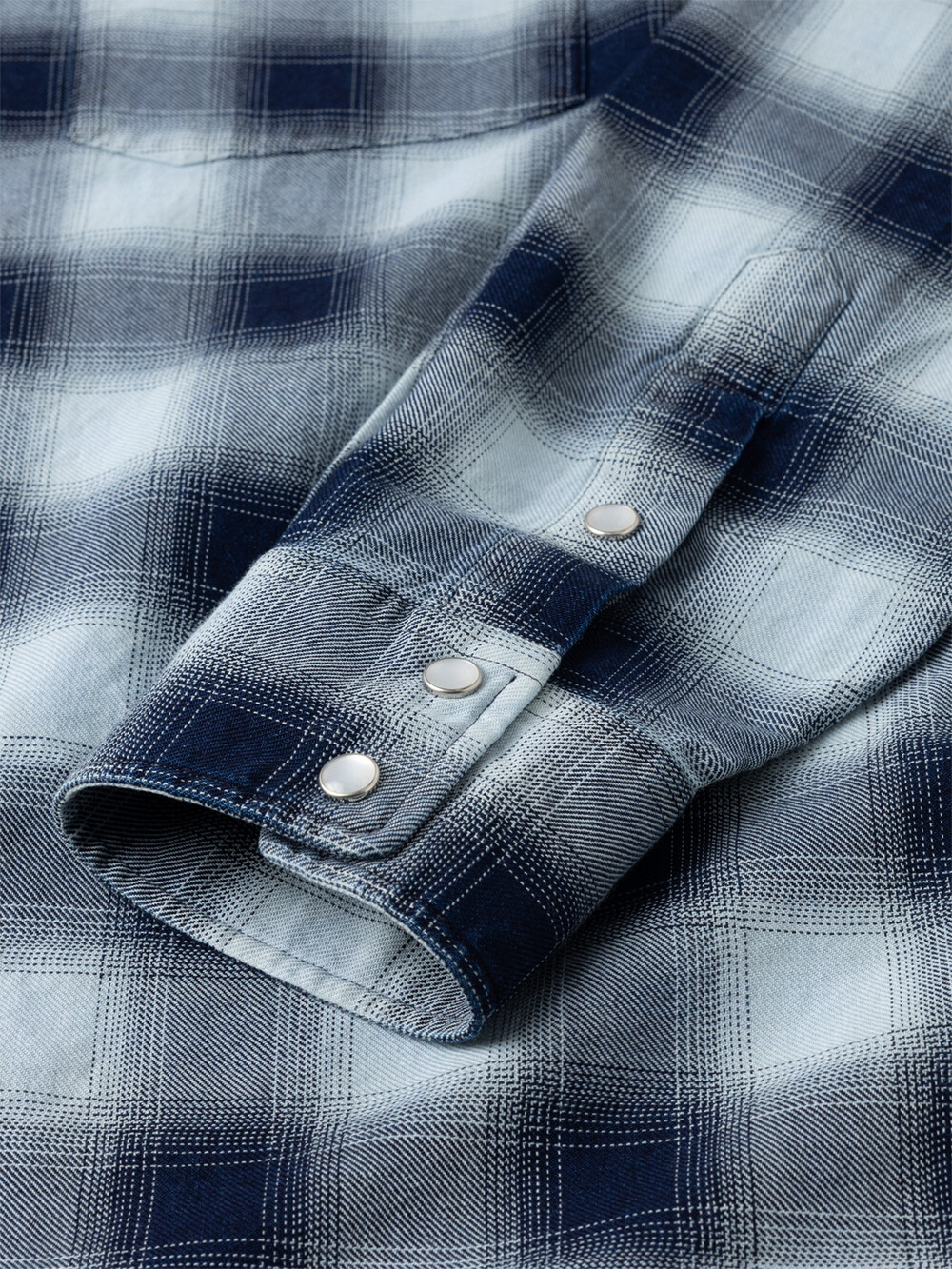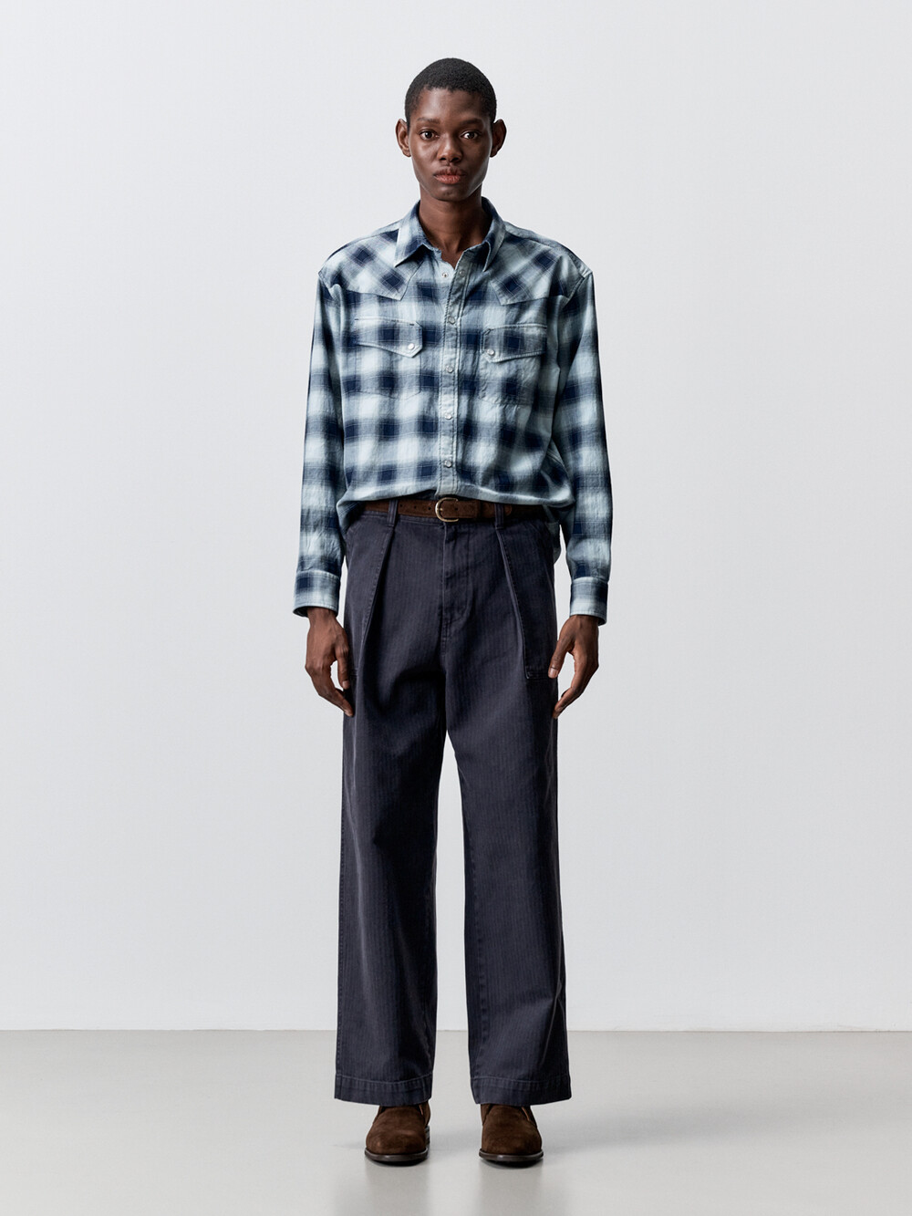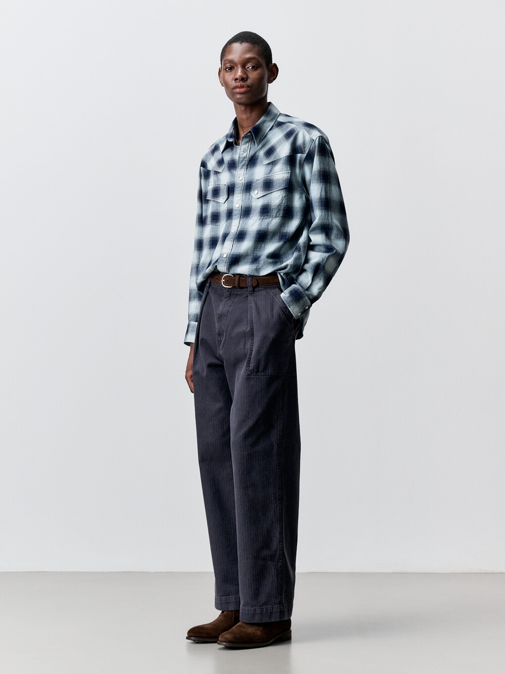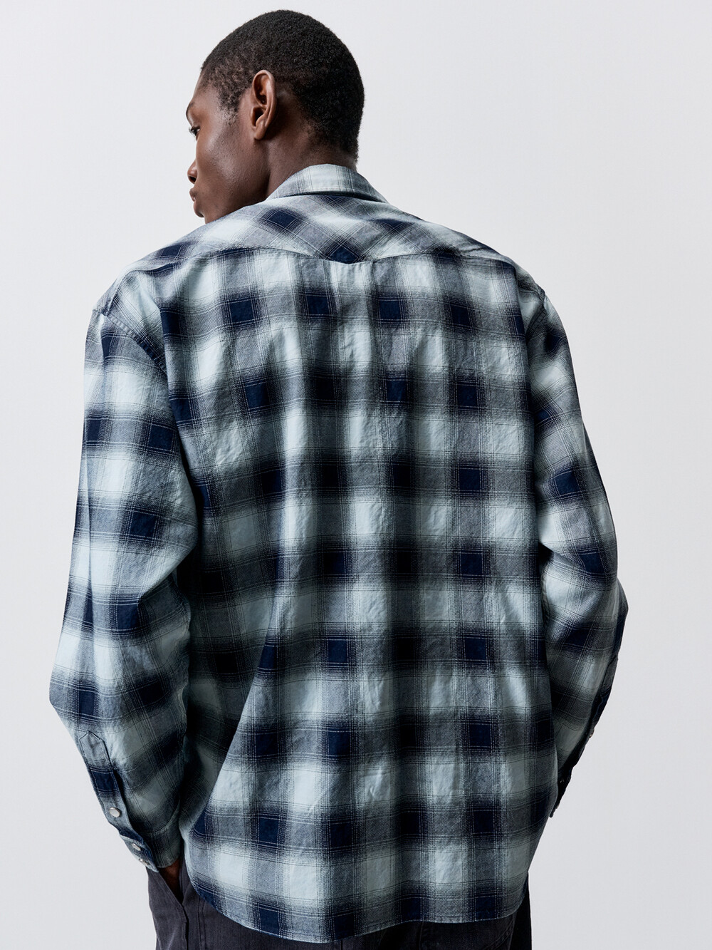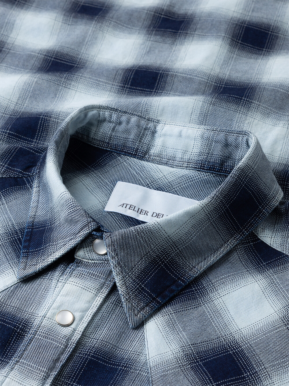 인디고 다이드 코튼 체크 웨스턴 셔츠 (INDIGO BLUE)