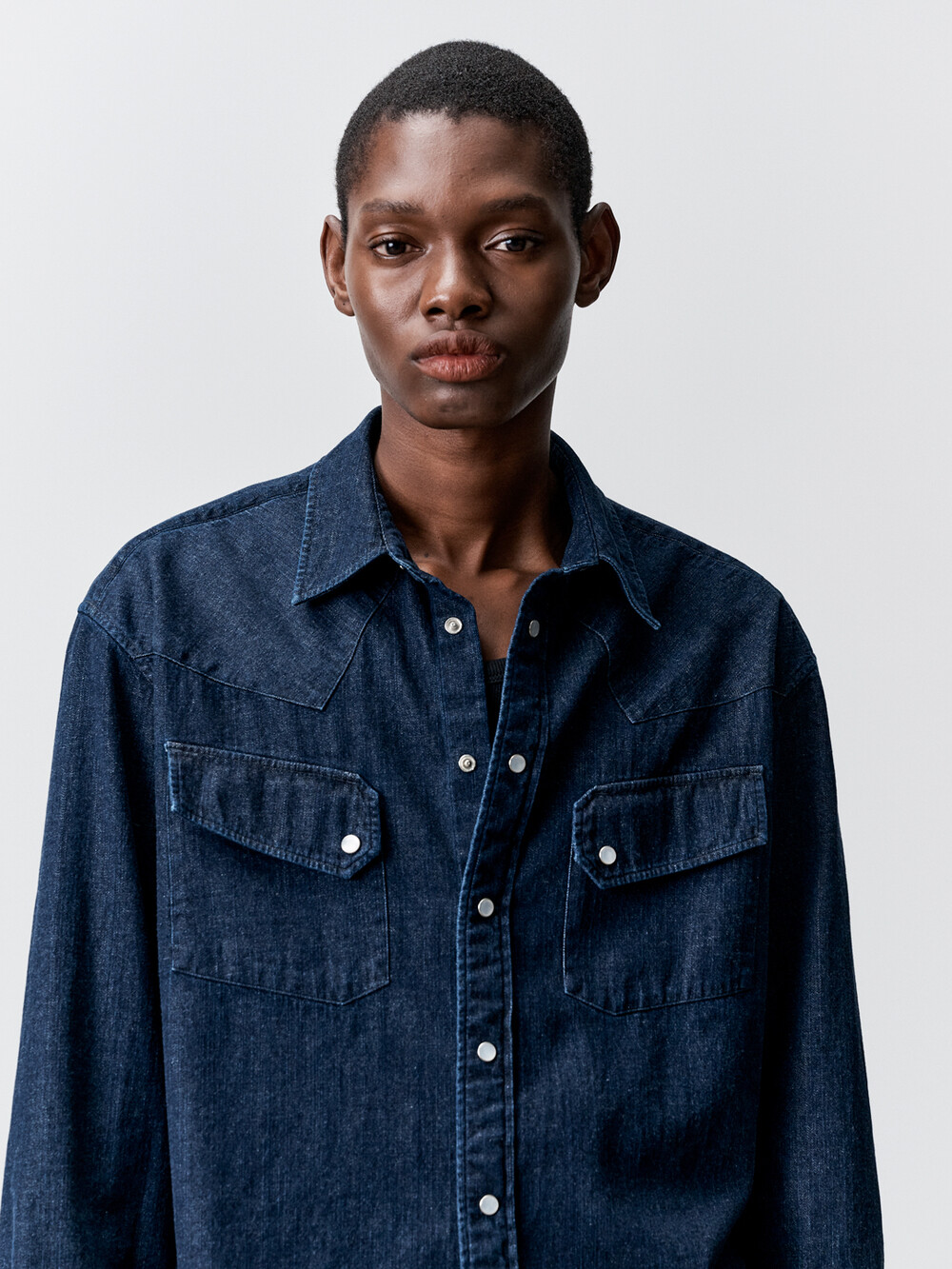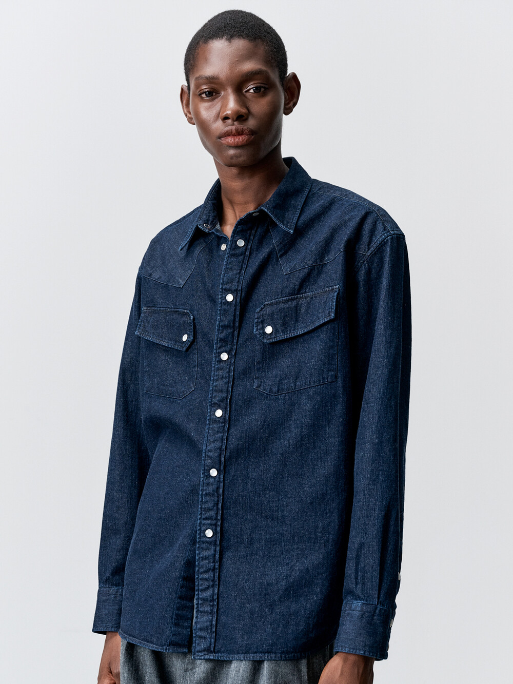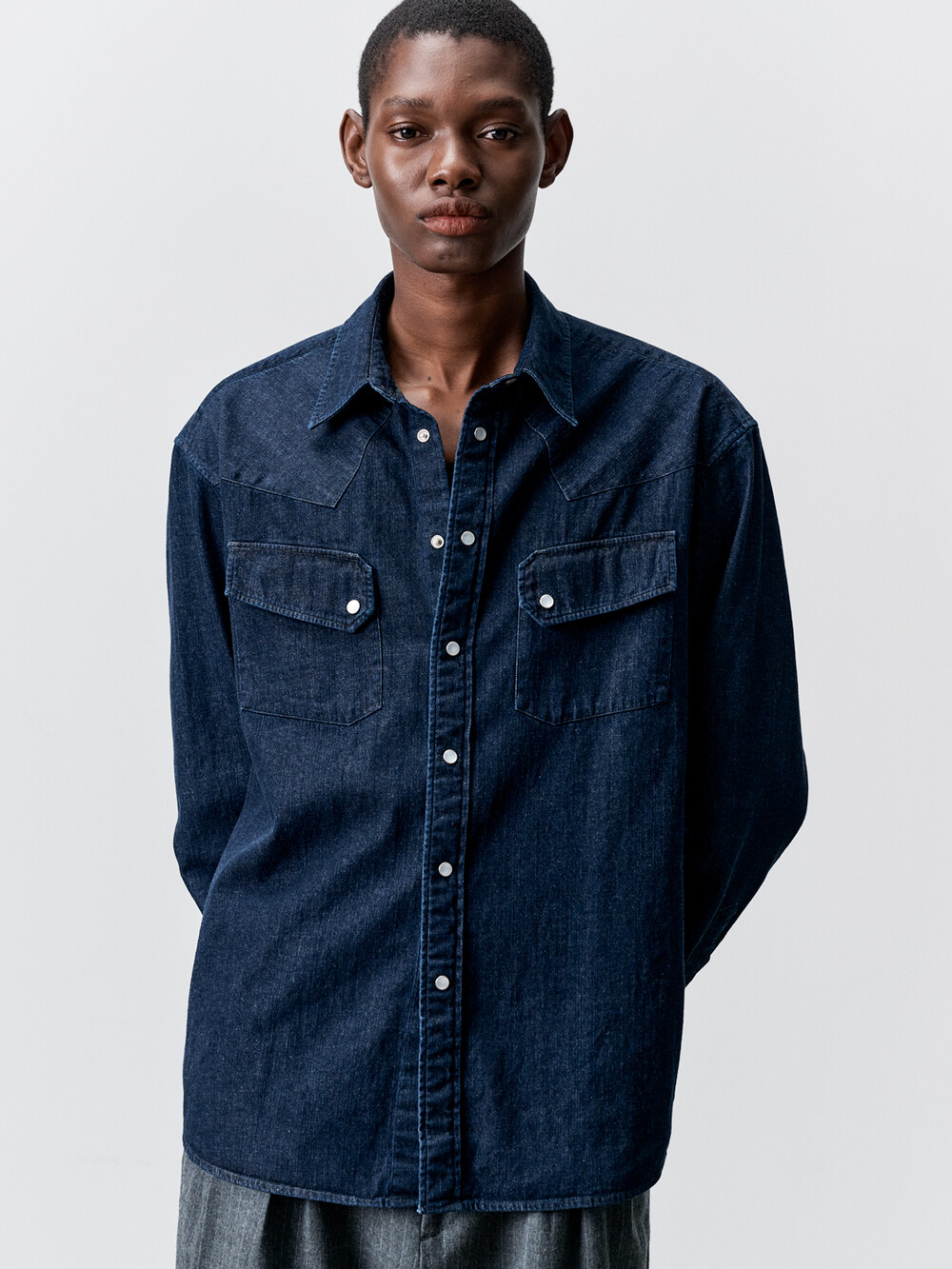 코튼 데님 웨스턴 셔츠 (INDIGO)