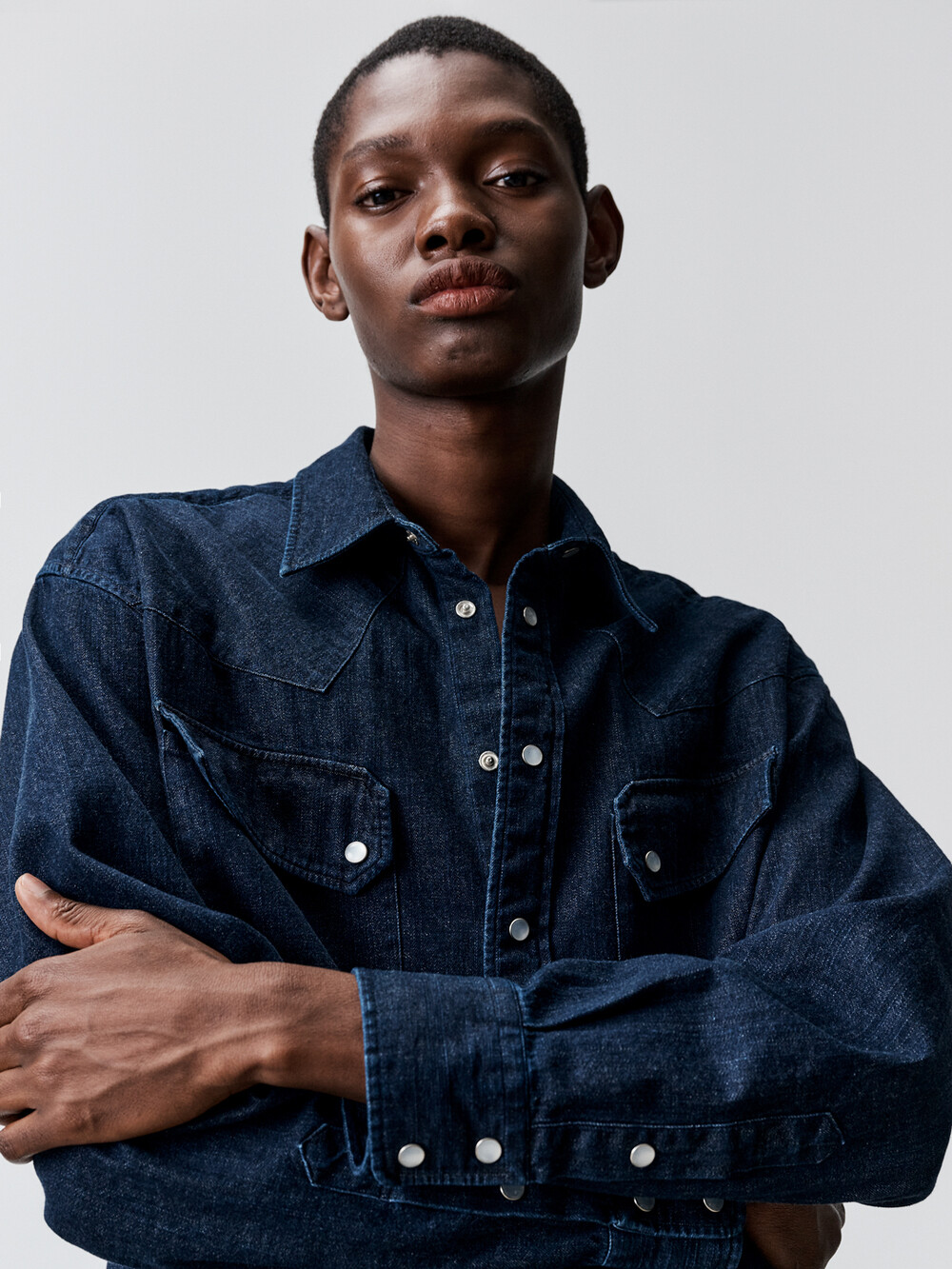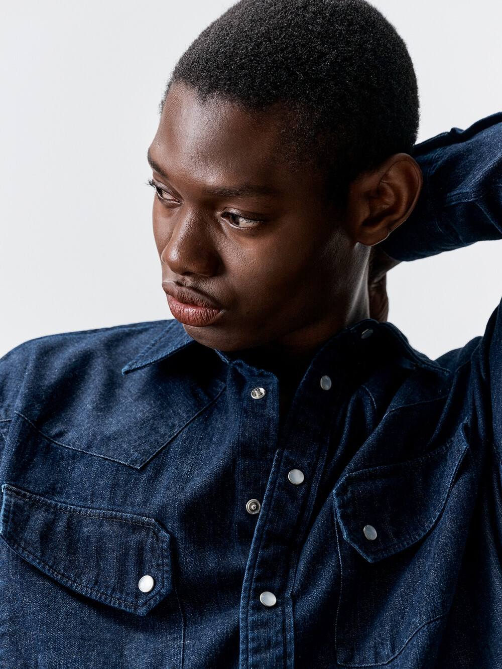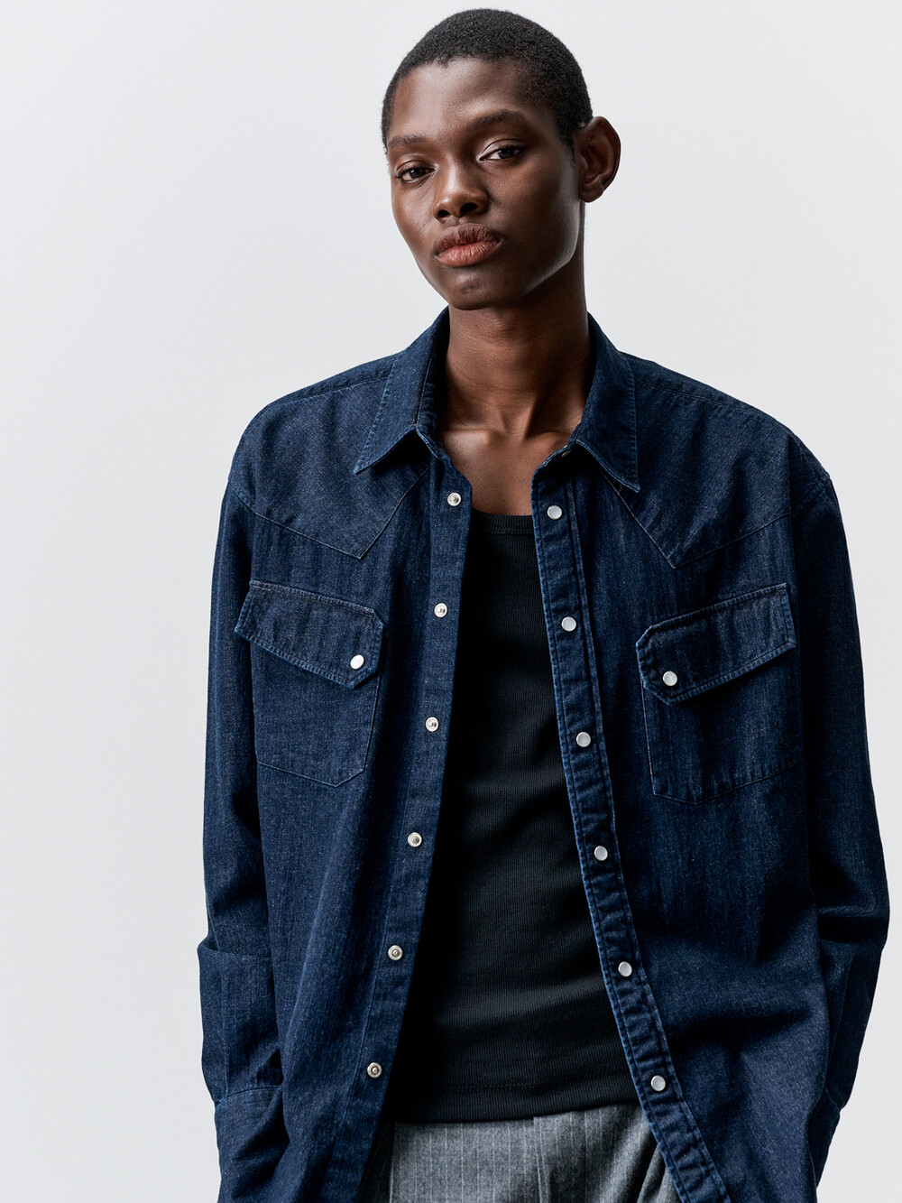코튼 데님 웨스턴 셔츠 (INDIGO)