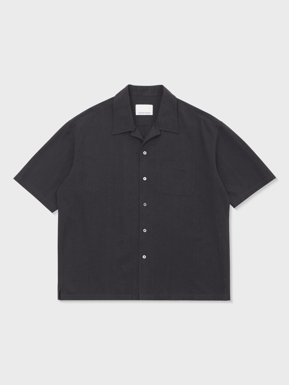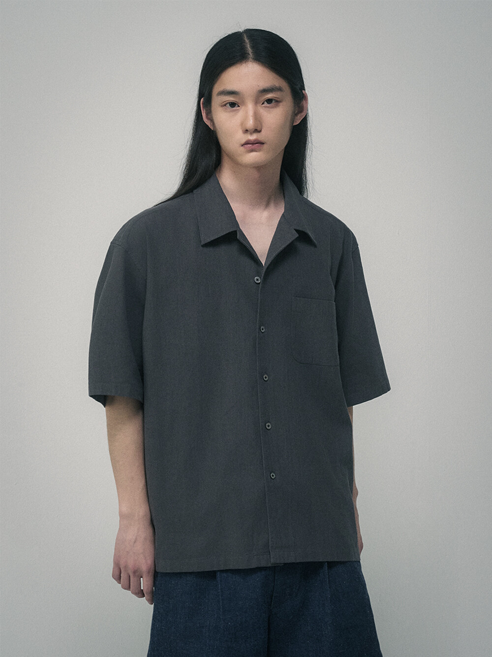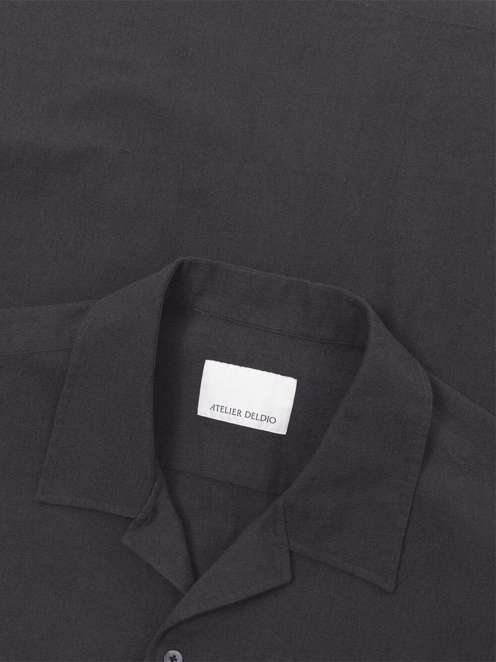 LINEN COTTON POPLIN CUBAN SHIRT (CHARCOAL GREY)