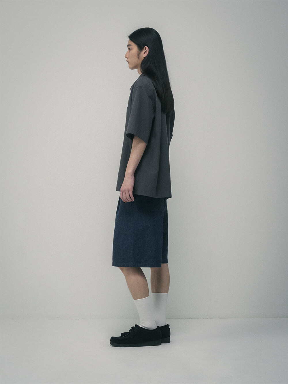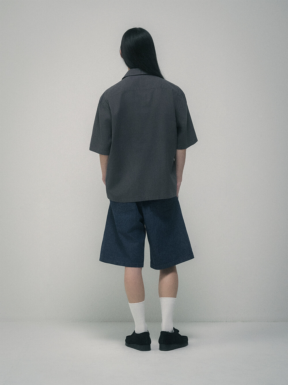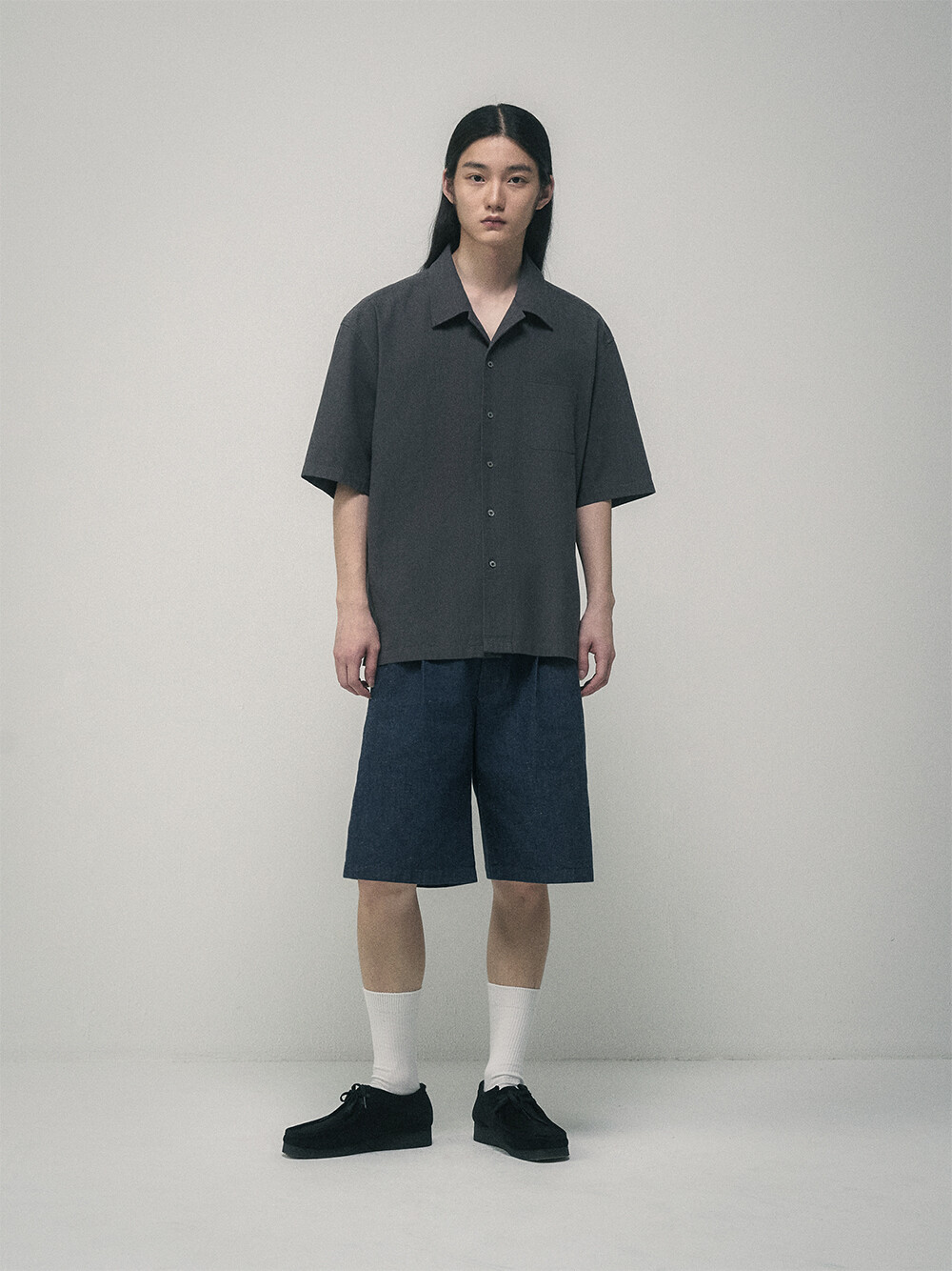 LINEN COTTON POPLIN CUBAN SHIRT (CHARCOAL GREY)