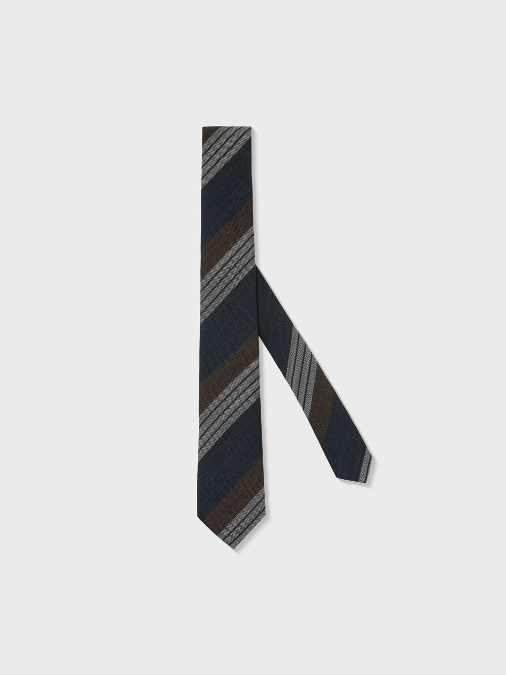 ITALIAN WOOL SILK REGIMENTAL TIE (BROWN)