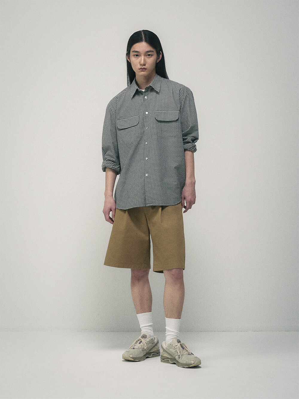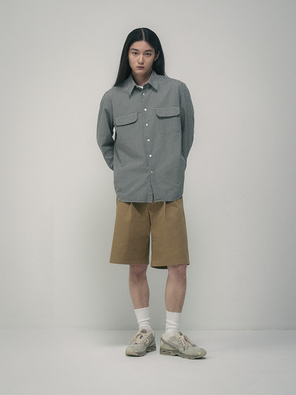 에어체크 원단이라 불리는 깅엄 패턴의 시어서커 원단으로 만든 오피서 셔츠입니다. 1950년대 스포츠 셔츠와 오피서 셔츠의 디테일을 복각한 양쪽 가슴의 플랩 포켓과 소매 커프스로 빈티지 캐주얼 셔츠의 매력을 극대화했습니다. 적당히 여유로운 실루엣의 컴포트 핏 셔츠로 단품으로 착용하거나 티셔츠 위에 가볍게 레이어드 하기에 좋습니다.