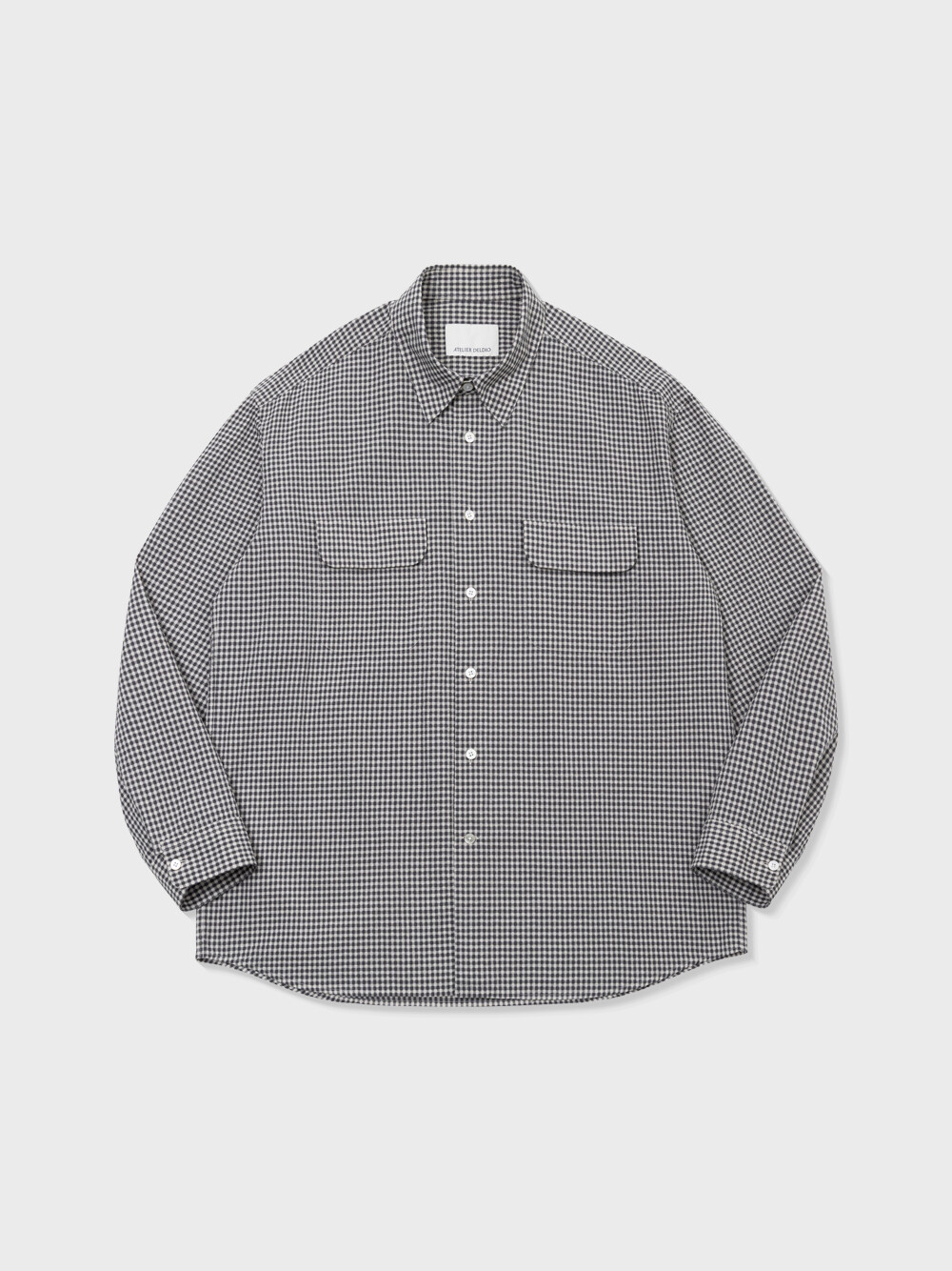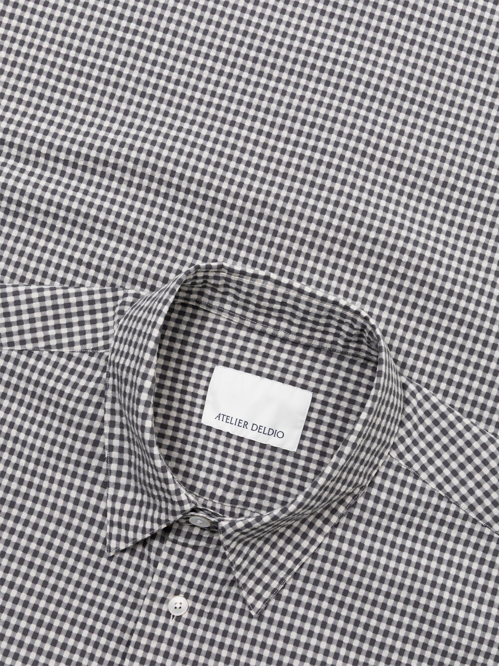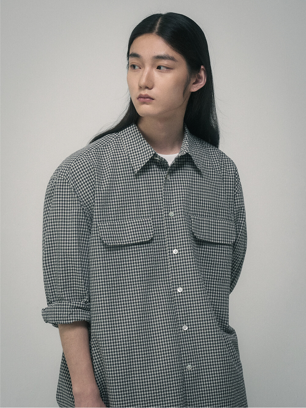 SEERSUCKER GINGHAM CHECK OFFICER SHIRT (GREY)