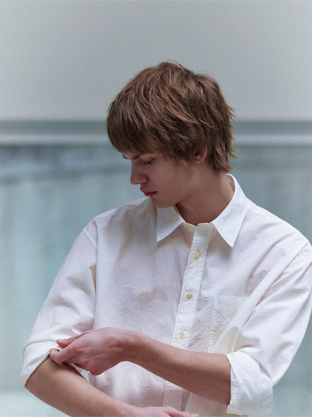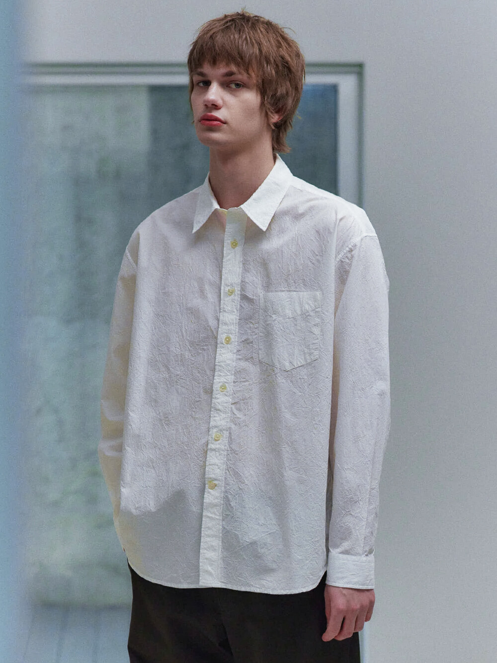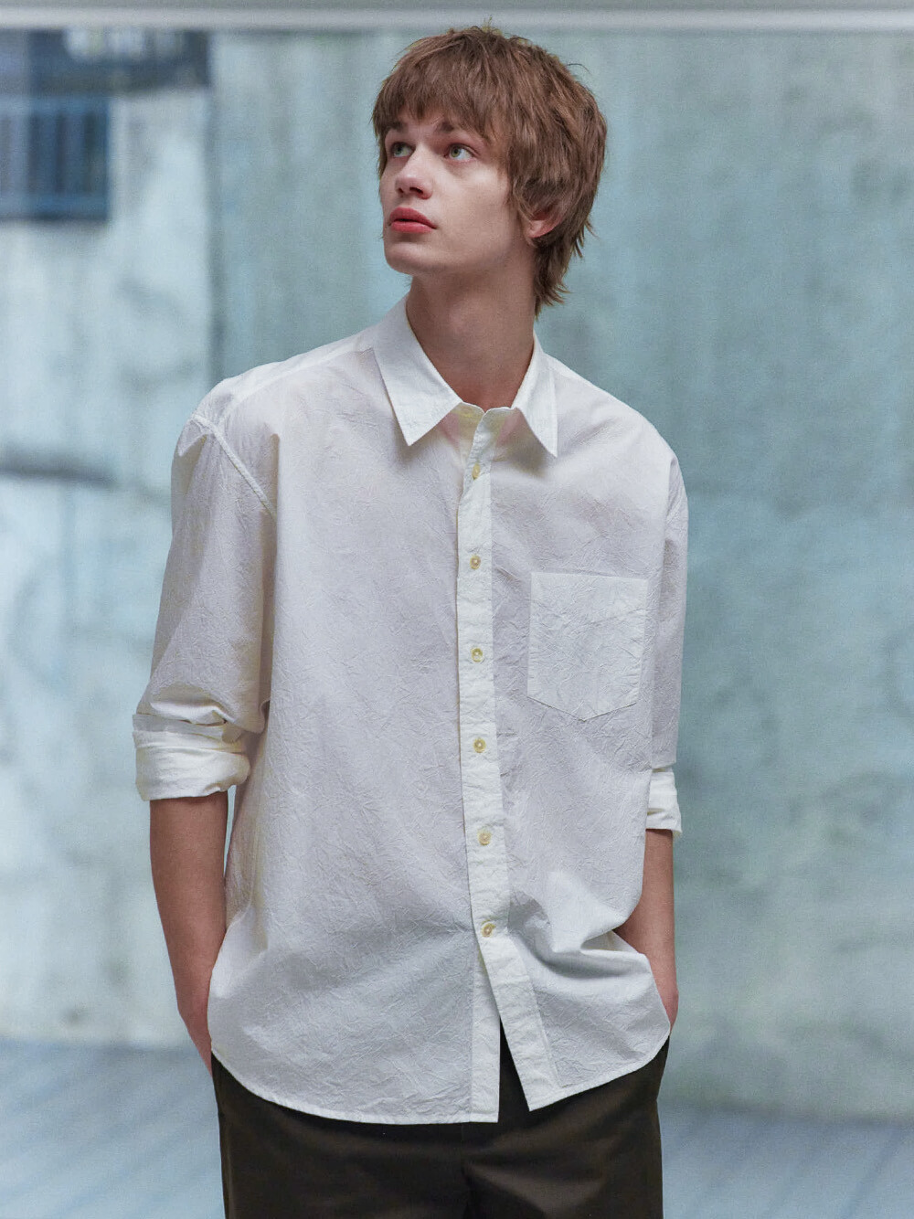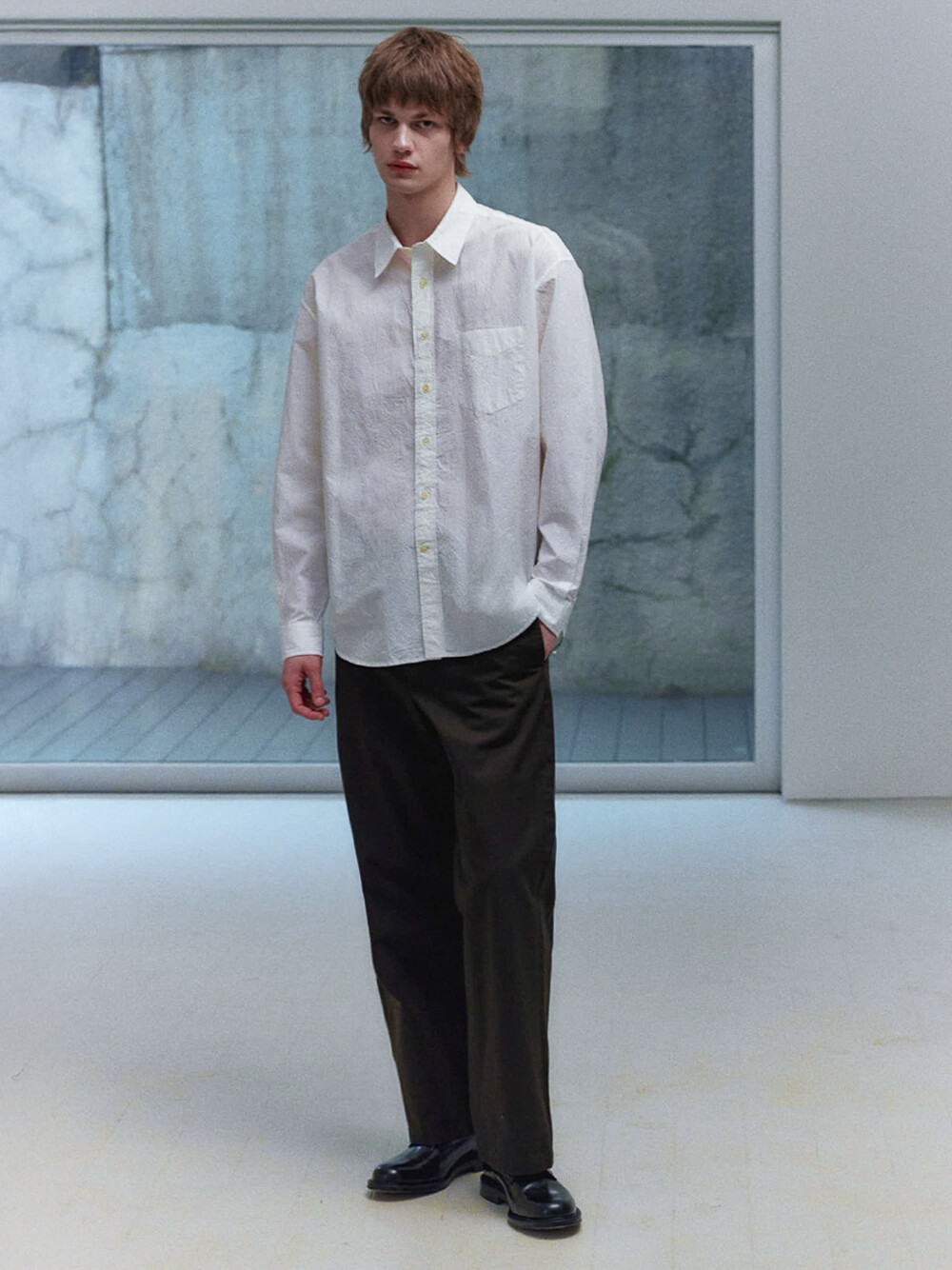 자연스러운 주름이 매력적인 캐치워셔 셔츠입니다. 기존의 패턴을 더욱 정교하게 수정하였습니다. 앞판에 플라켓과 가슴포켓이 달려있으며, 뒷판 요크를 사선으로 재단하였습니다. 적당히 여유로운 실루엣의 컴포트 핏 셔츠로 캐주얼 팬츠부터 셋업까지 다양한 아이템과 매치할 수 있습니다.