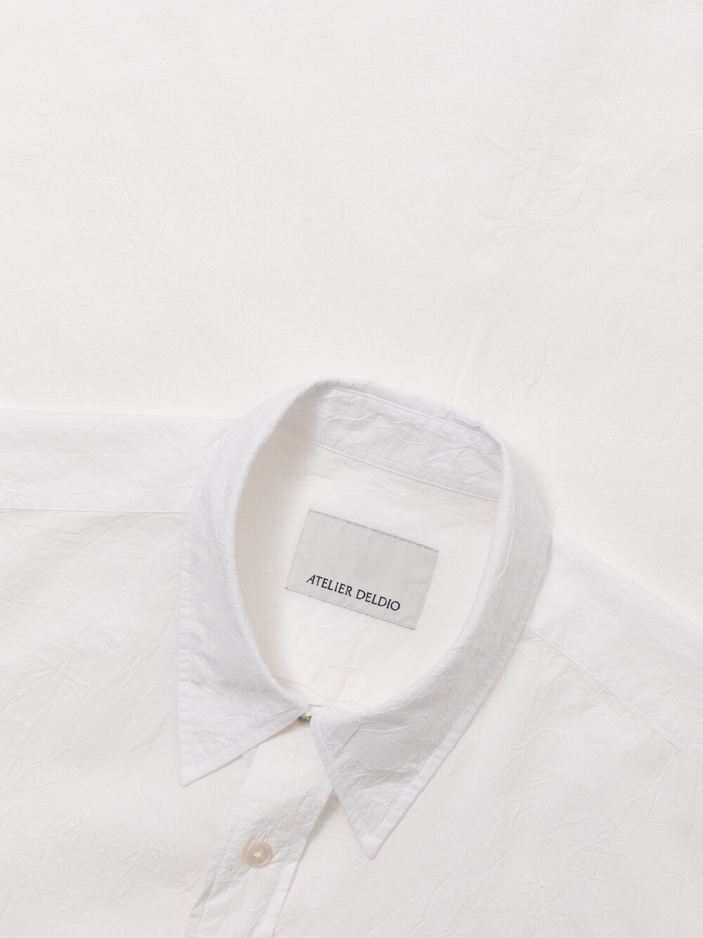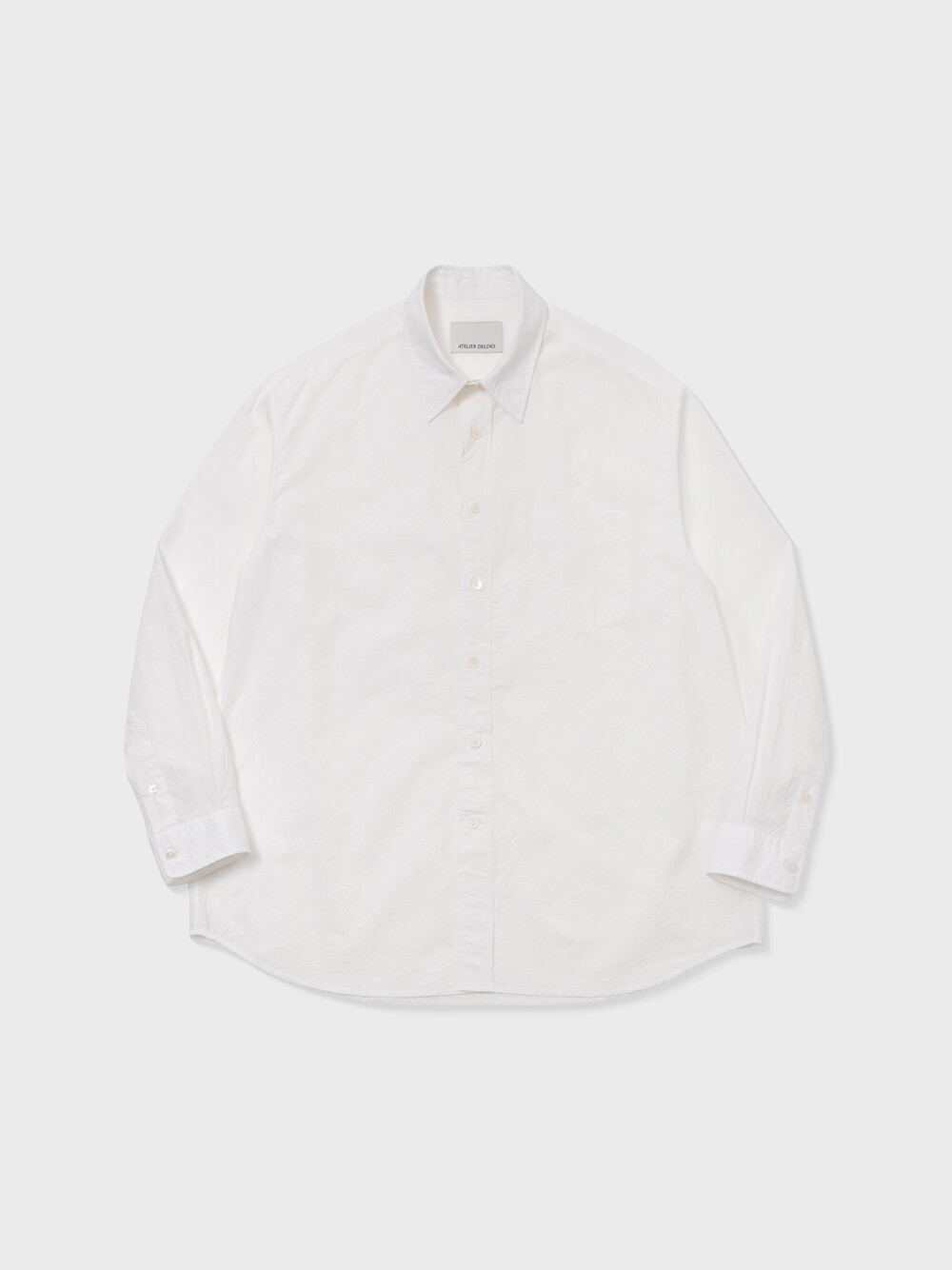 일본산 80수 캐치워셔 타이프라이터 원단을 사용하였습니다. 캐치워셔는 원단 완성과정에서 워싱을 통해 자연스러운 주름을 넣은 원단으로 일본 디자이너 브랜드에서 애용하고 있습니다. 아틀리에 델디오는 특유의 촉감과 색감을 위해 프리미엄 수입원단만을 고집합니다.