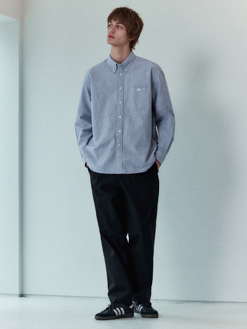 새롭게 출시된 실크 넵 옥스포드 버튼다운 셔츠입니다. 컴포트 셔츠를 기반으로 버튼다운 카라와 버튼이 달린 가슴포켓을 적용하였습니다. 뒷판 요크를 사선으로 재단하였고 중앙에 박스주름과 락커 루프(locker loop)가 있습니다. 적당히 여유로운 실루엣의 컴포트 핏 셔츠로 캐주얼 팬츠부터 셋업까지 다양한 아이템과 매치할 수 있습니다.