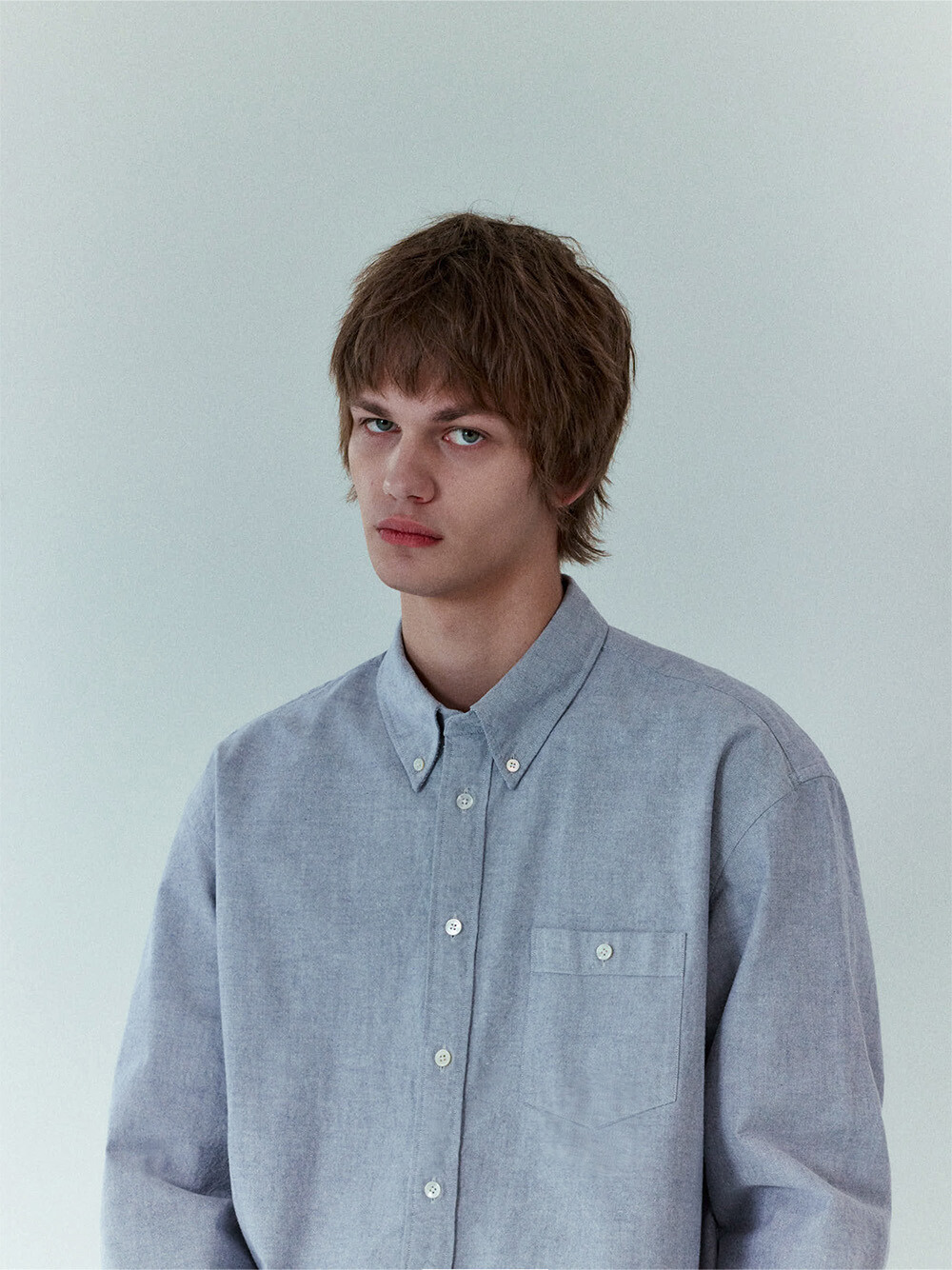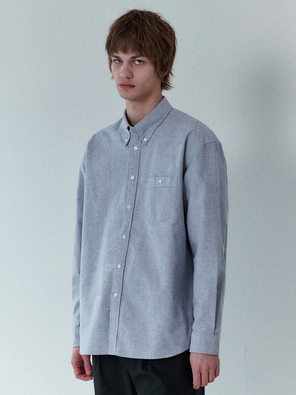 COTTON SILK NEP OXFORD SHIRT (SILVER)