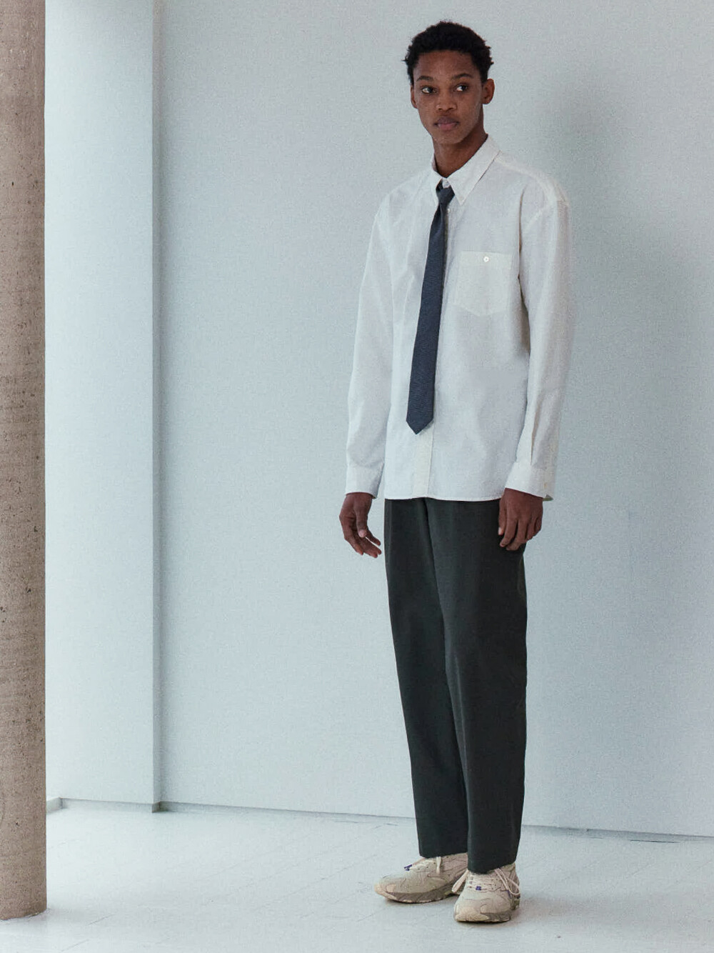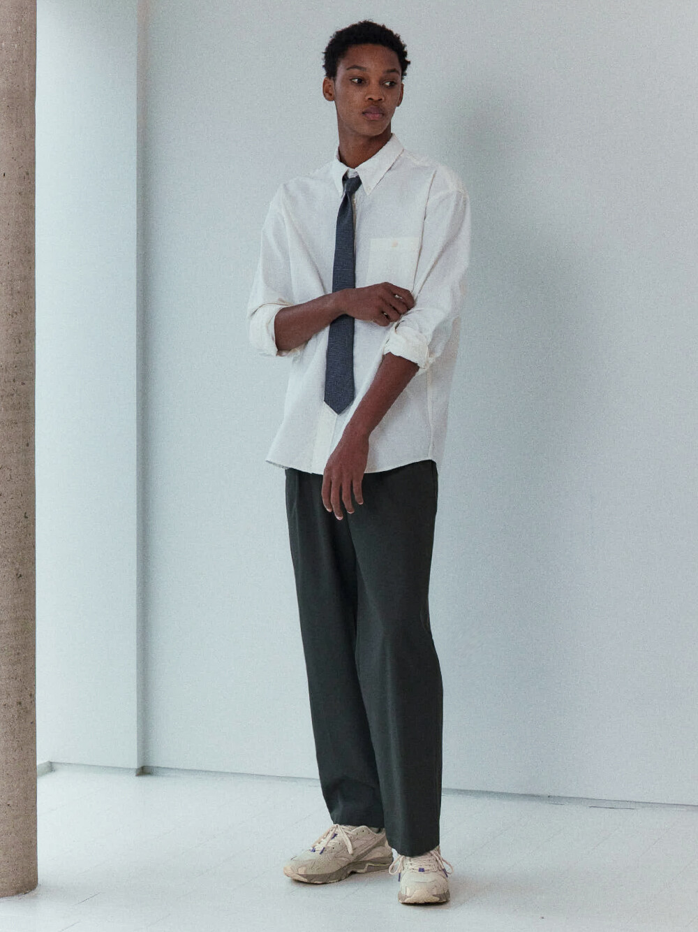 새롭게 출시된 실크 넵 옥스포드 버튼다운 셔츠입니다. 컴포트 셔츠를 기반으로 버튼다운 카라와 버튼이 달린 가슴포켓을 적용하였습니다. 뒷판 요크를 사선으로 재단하였고 중앙에 박스주름과 락커 루프(locker loop)가 있습니다. 적당히 여유로운 실루엣의 컴포트 핏 셔츠로 캐주얼 팬츠부터 셋업까지 다양한 아이템과 매치할 수 있습니다.