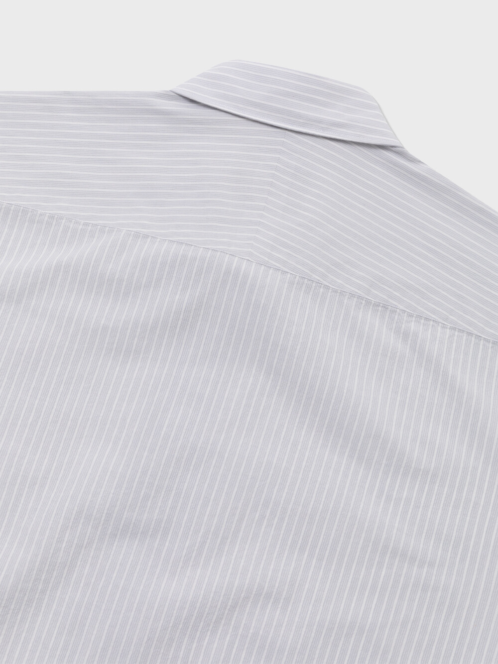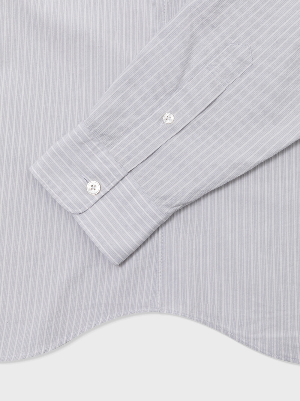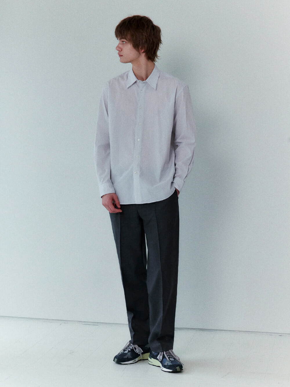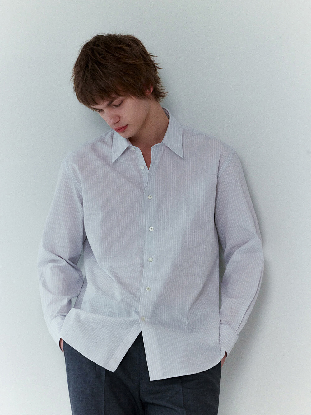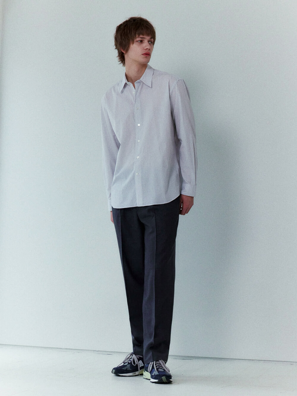 스트라이프 패턴의 핀코드 원단으로 만든 테이퍼드 셔츠입니다. 은은한 스트라이프 패턴과 핀코드의 시원한 요철감이 포인트인 셔츠입니다. 여유로운 실루엣을 살리면서도 허리라인을 조정하여 자연스럽게 넣어입을 수 있도록 만들었습니다. 미니멀하고 프로패셔널한 룩을 위하여 앞판 플라켓과 주머니를 생략하고 뒷판도 주름없이 깔끔하게 디자인했습니다. 편안함과 포멀함을 모두 만족시키는 뉴 포멀룩의 셔츠입니다. 단추를 풀고 캐주얼하게 착용가능하며, 타이와 매치하여 비즈니스 룩을 완성할 수도 있습니다.