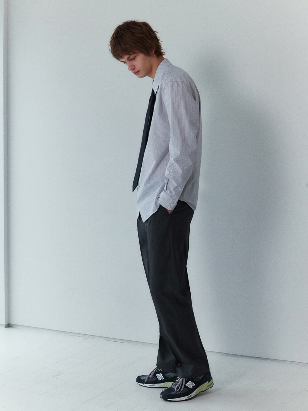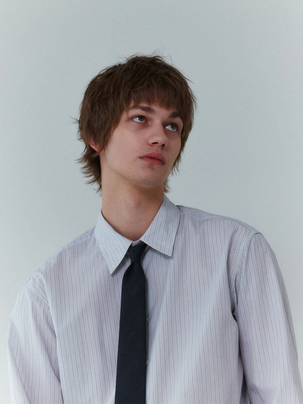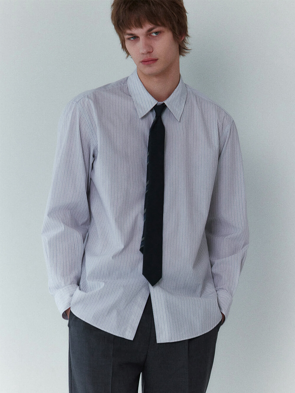 스트라이프 패턴의 포플린 원단으로 만든 테이퍼드 셔츠입니다. 여유로운 실루엣을 살리면서도 허리라인을 조정하여 자연스럽게 넣어입을 수 있도록 만들었습니다. 미니멀하고 프로패셔널한 룩을 위하여 앞판 플라켓과 주머니를 생략하고 뒷판도 주름없이 깔끔하게 디자인했습니다. 편안함과 포멀함을 모두 만족시키는 뉴 포멀룩의 셔츠입니다. 단추를 풀고 캐주얼하게 착용가능하며, 타이와 매치하여 비즈니스 룩을 완성할 수도 있습니다.