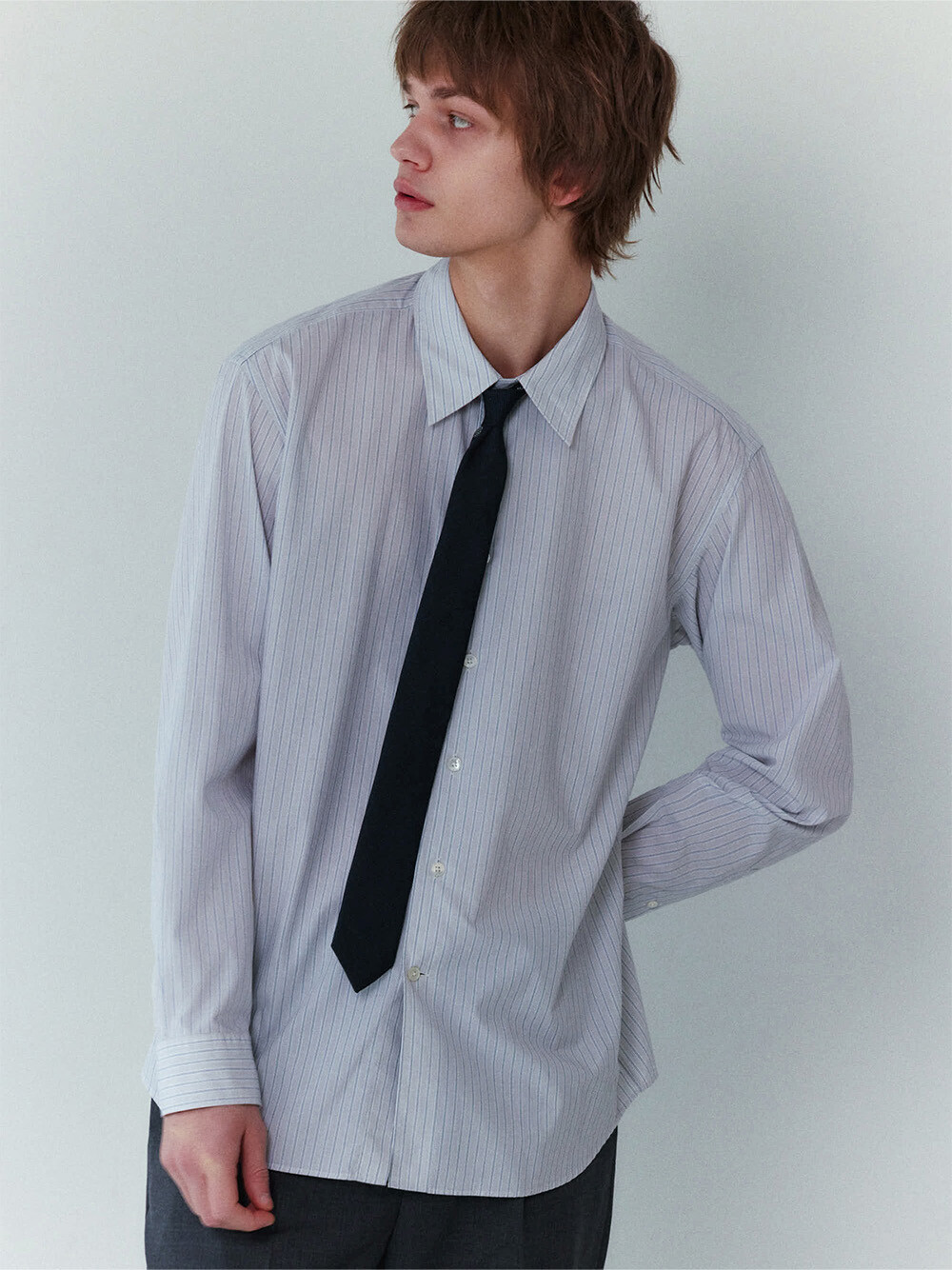 COTTON STRIPE TAPERED SHIRT (GREY)