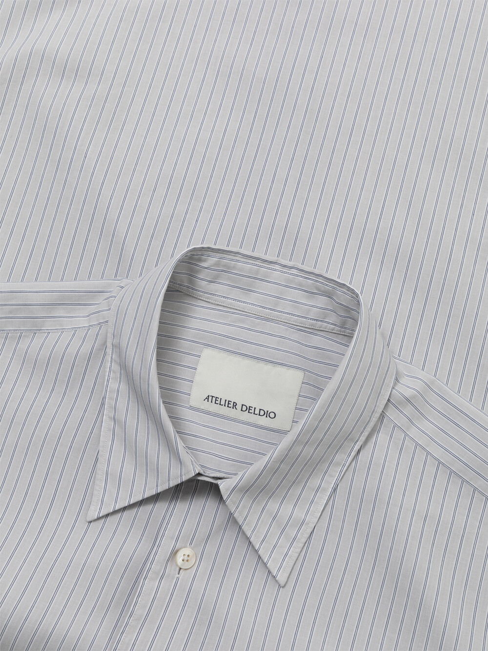 초장면(extra-long staple cotton)으로 뽑아낸 80수 가는 원사를 직조하여 만든 일본산 포플린 스트라이프 원단을 사용하였습니다. 고밀도 원단의 탄탄함과 초장면 특유의 부드러운 촉감을 동시에 경험하실 수 있습니다. 델디오는 특유의 촉감과 색감을 위해 프리미엄 수입원단만을 고집합니다.