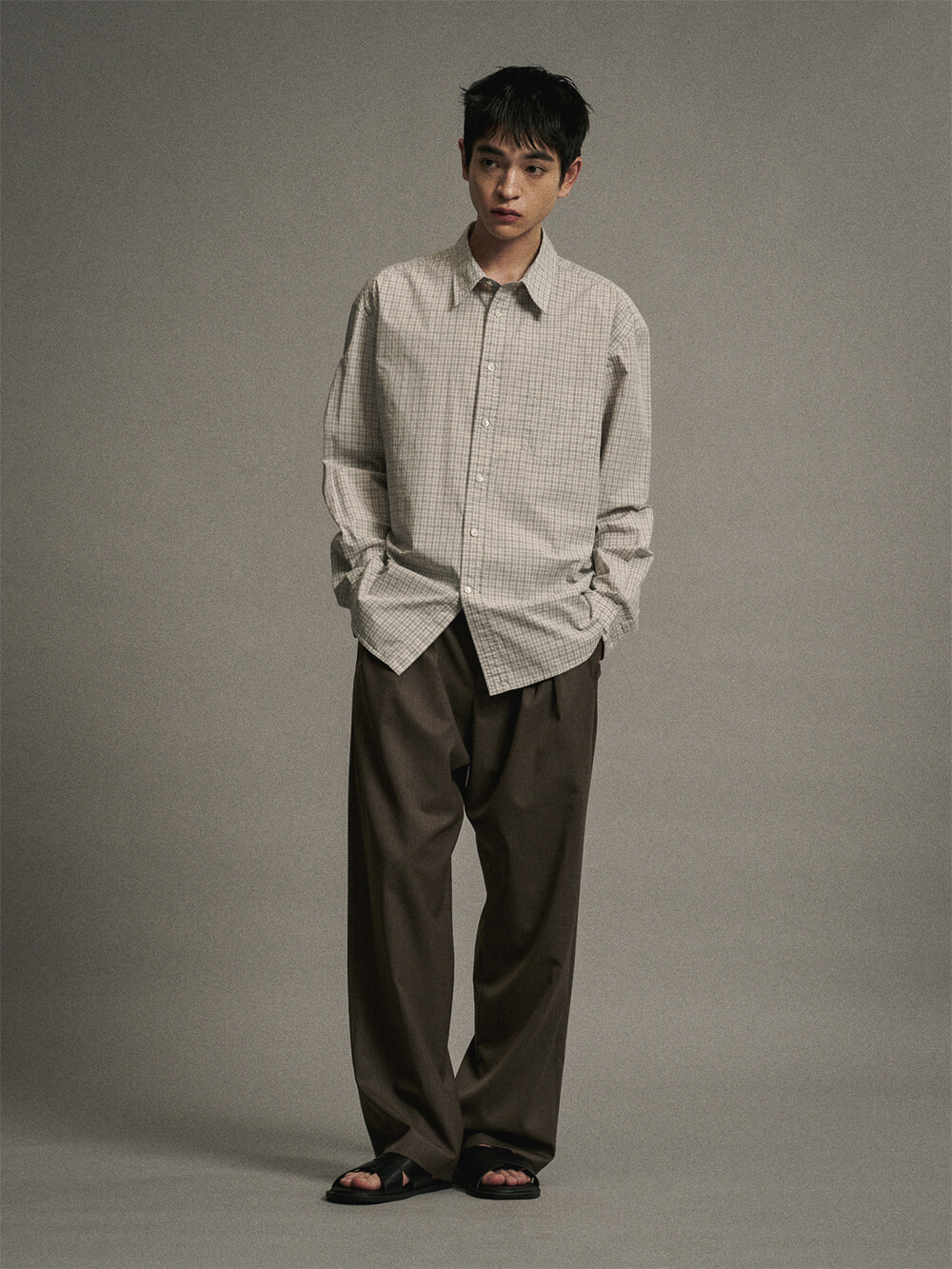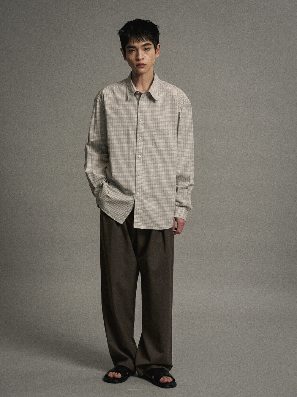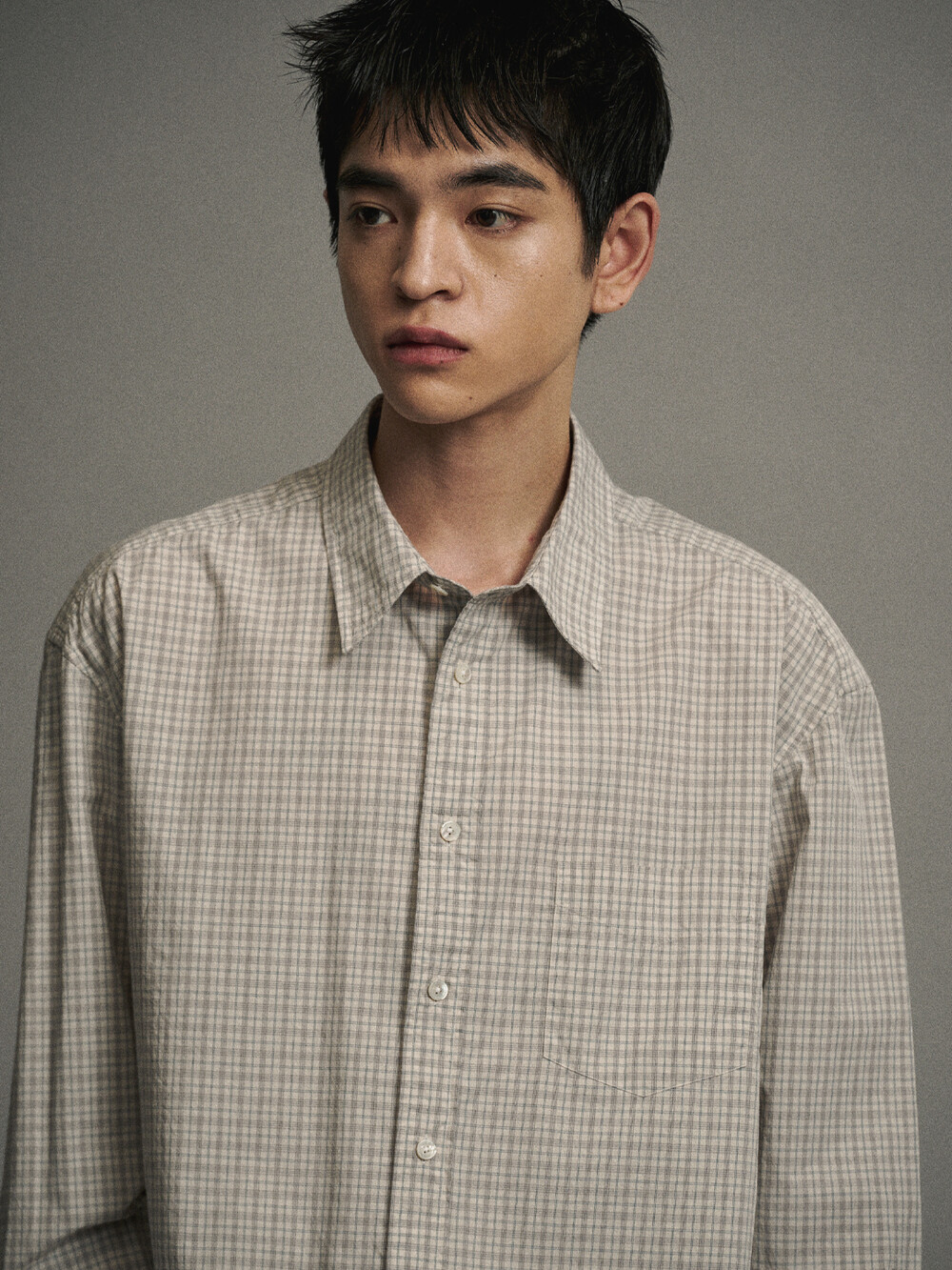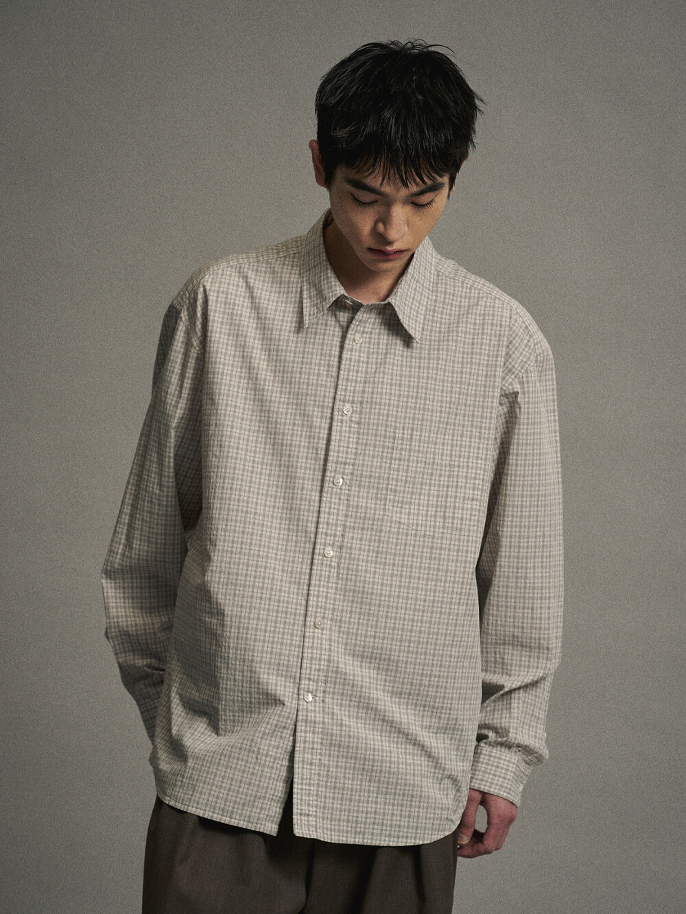 코튼 체크 컴포트 셔츠 (GREIGE)